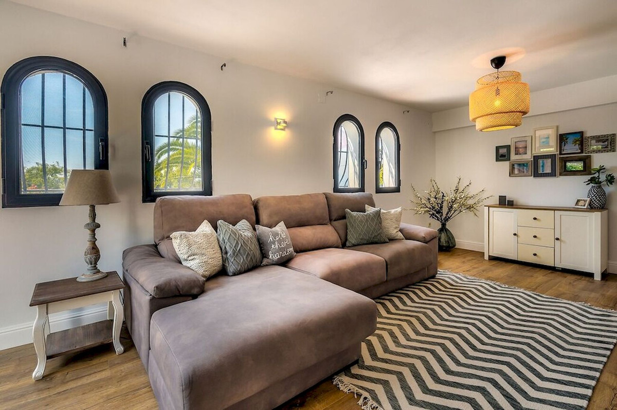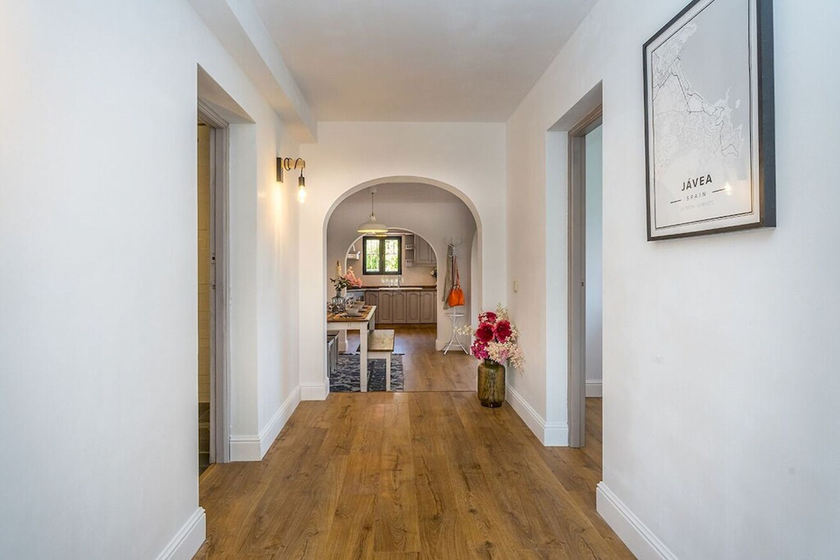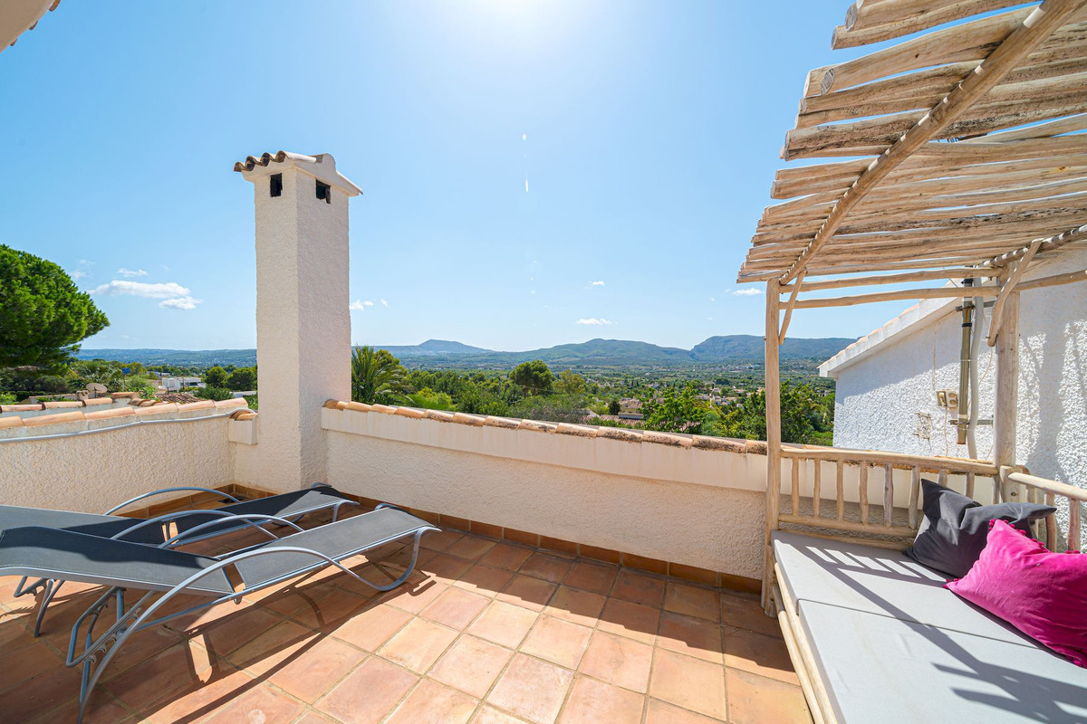 This beautiful property located on the Montgo of Javea has been renovated to a high standard and offers ample space combined with stunning views. The main floor has two large bedrooms, both with pool views. A family bathroom that has a newly fitted bathtub which can easily be removed as the walk-in shower has been preserved underneath. The large and bright kitchen has views up to the magnificent Montgo mountain and has an additional utility room which has ample storage and a fitted washer/dryer. The spacious dining room has a newly built shelving unit with extra storage and follows round into the open-plan living room with fireplace and views of the valley and garden. The stairs give access to the main bedroom and ensuite with a private terrace that also boasts spectacular views. Off of the living room there is a children's play room and large office/sun room that can be repurposed in many ways. The main living area is extremely bright with lots of natural light due to the internal patio that can be accessed via two separate doors. There is also an additional, three bedroom apartment below with independent access and a large bathroom with a stand alone bath and walk in shower. A large living/dining/kitchen area finishes the apartment and the house also has a ‘Tourist License' which allows for the house to be rented and has been successfully rented as a holiday home with great success. There are also various store rooms that can be repurposed also and have additional access from outside. The garden is a huge plot of 2,495m2 with mature borders and a large amount of grass that is maintained through an automated irrigation system with water from a well. The large pool is looked over by the stunning Montgo mountain and is an oasis of calm in the summer months. The garden also has two, large decked areas for seating and a large double car port. The property is accessed via an electric gate and the house also has solar panels which keep the electricity costs to a minimum. The property also has underfloor heating on all levels as well as newly fitted, aluminium, double-glazed windows on the main and top floors. All bedrooms and the main living areas have newly fitted air-conditioning units that can be controlled via an app. There is also fibre optic internet connection in the area and both the house and gardens are very private and peaceful.