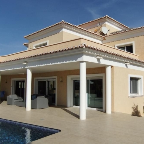 This luxurious, ultra-modern four-bedroom villa is located on a hill just outside the city, offering stunning panoramic views of the Mediterranean Sea and the Peñón de Ifach.