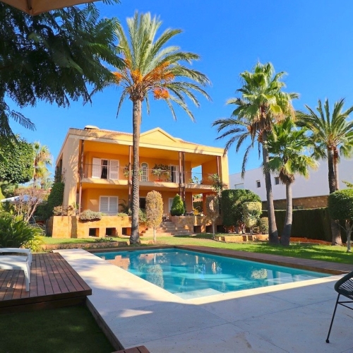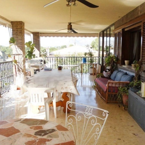 This spacious villa of 480 m² is situated on a 564 m² plot and consists of 3 floors and a solarium. The property features a garden and several terraces to enjoy the outdoors.Upon entering the house, you are welcomed into a hallway. To the left is the independent kitchen with a dining area and access to a covered terrace. In front of you are the living room, a bedroom, and a bathroom.On the second floor, accessed by stairs, there are 4 additional bedrooms, one of which has an en-suite bathroom. All bedrooms have access to a terrace.On the third level, there is a solarium with panoramic views.In the basement, there is an independent apartment with 3 bedrooms, a full bathroom, a living room, and a kitchen. There is also a large room that can be used as a games area, along with a summer kitchen and an additional bathroom.Equipment:The villa is equipped with a security door, double-glazed windows, a fully equipped kitchen, air conditioning (cold/heat), a kidney-shaped pool, covered and open terraces, a garden, a solarium, and an independent apartment. It also has a games area and a summer kitchen.Location:The villa is located in the residential area of Rincón de Loix in Benidorm, close to the main avenue with bus stops, taxis, camping, the private Lope de Vega school, supermarkets, and other amenities. Alicante-El Altet Airport and the port of Alicante are a 45-minute drive away, and the La Marina shopping center, with numerous shops and large supermarkets, is just 15 minutes away.