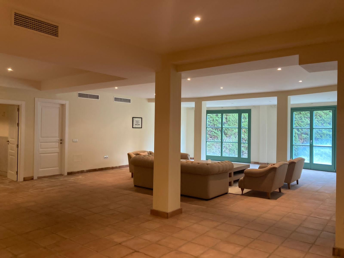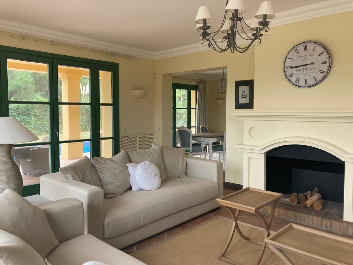 Luksuriøst hus med 5 soveværelser og 5 badeværelser, beliggende i den øvre del af Sotogrande med enestående udsigt over den berømte Valderrama golfklub og havet. Denne individuelt designede ejendom er færdiggjort med materialer af høj kvalitet og har følgende layout: indgangsportal med trapper til hoveddøren, entré til den store stue med pejs og adgang til den rummelige terrasse med udsigt. Separat spisestue, der fører til det fuldt møblerede køkken.