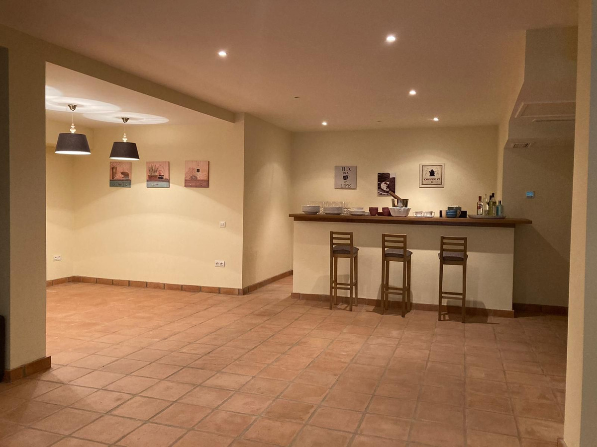 I stueetagen er der også et gæsteværelse med eget badeværelse. På første sal findes mastersoveværelset med walk-in-closet, en-suite badeværelse og en stor terrasse. Der er yderligere tre soveværelser, alle med egne badeværelser. I den 200 m² store kælder er der en stor stue med bar, en spisestue og to områder med sofaer og borde, alle med adgang til haven. Gulvene er lavet af terracottafliser, der er varm/kold aircondition, vinduer og trædøre med dobbeltglas, anlagte haver, swimmingpool og garage.