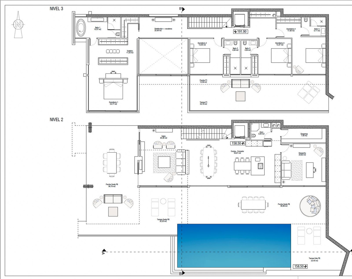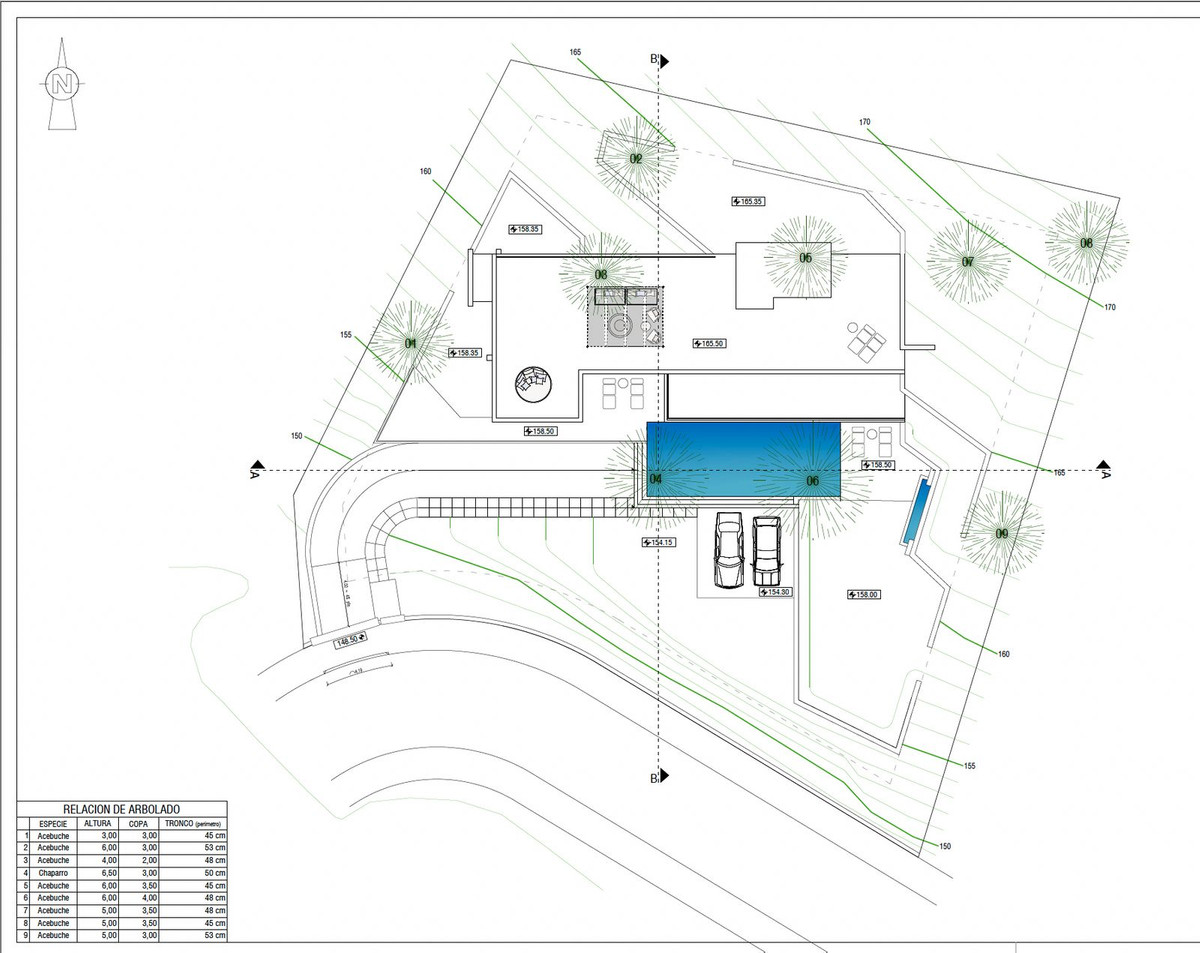 Byggeprojektet har 5 parkeringspladser, 3 i garage og 2 parkeringspladser for besøgende med havudsigt.