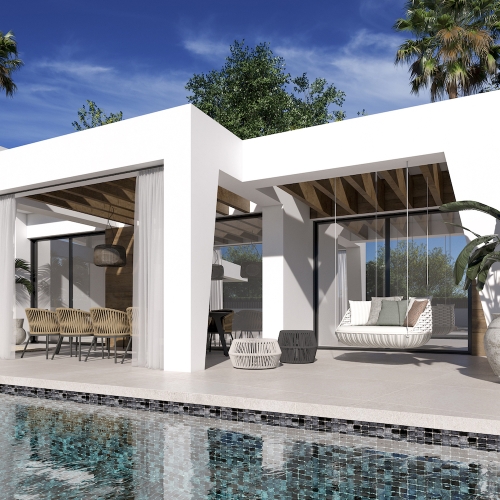 Throughout the villa, underfloor heating ensures year-round comfort, while the tasteful use of natural Mediterranean materials enhances the warm and inviting atmosphere.