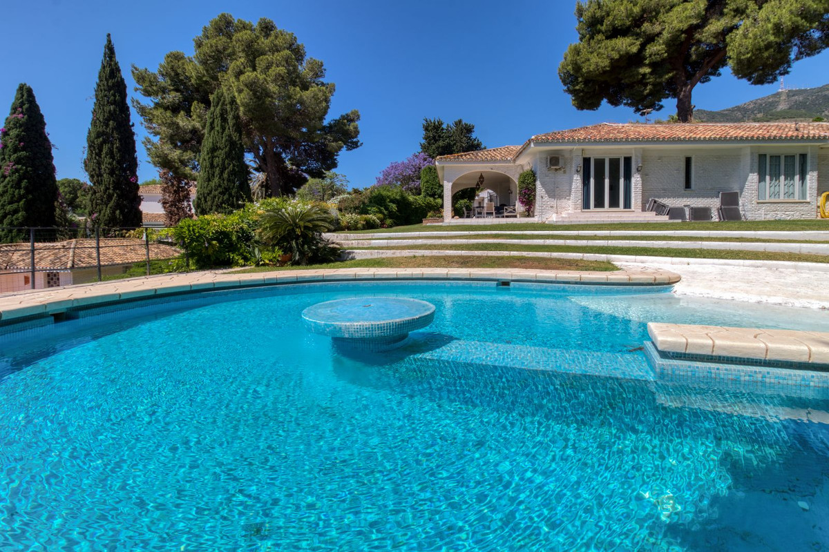 Denne rummelige villa i ét plan med 6 soveværelser er et fantastisk fund for enhver, der leder efter et komfortabelt hjem med skønne udendørsarealer og havudsigt. Beliggende i et roligt og veletableret område på Costa del Sol i gåafstand til butikker og restauranter i Benalmádena Pueblo.