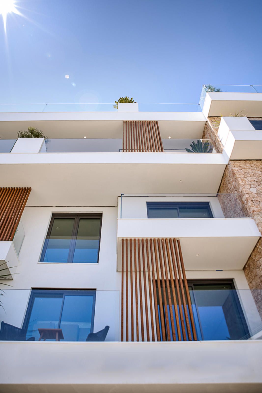 This 165 m2 2-in-1 luxury apartment in Playa d'en Bossa, Ibiza, combines tradition and luxury in a space that blends modern design with a typical Ibizan style. Simple and elegant, this spectacular apartment is a place to relax and dream. It has 2 bedrooms, 2 bathrooms, living room with kitchen and dining area, 2 terraces, storage room and garage space. The floors and part of the interior walls are made of natural stone and the equipment includes central air conditioning, double-glazed aluminium windows, shutters, camera and intercom. The building has an indoor swimming pool with outdoor terrace, steam bath, jacuzzi, barbecue area, sports court and a concierge service to take care of all your needs.This jewel of an apartment is located 140 metres away from the renowned Playa d'En Bossa beach, the longest beach on the island of Ibiza, where the most famous Beach Clubs of the island are to be found. With its proximity to Ibiza town and the charming old town of Ibiza, Playa d'en Bossa combines the famous cultural life of the island with the serenity of a beach with its crystal-clear waters. This apartment is surrounded by unrivalled Mediterranean scenery, providing relaxation and entertainment in a sophisticated atmosphere.If you are passionate about living in an oasis of luxury and services, where you have the comforts of an apartment twice the normal size and an exceptional location, this is the perfect property. You appreciate traditional Ibicencan architecture, but don't want to give up modern comforts. Connection to nature and relaxation are paramount to you, but when you want to enjoy a day at the beach or enjoy an evening at a Beach Club, having it all at your fingertips makes it easy to live life to the fullest. This apartment in Ibiza has everything you could wish for and more: it gives you comfort, services, quality of life and a very special feeling of home. May we visit it together?