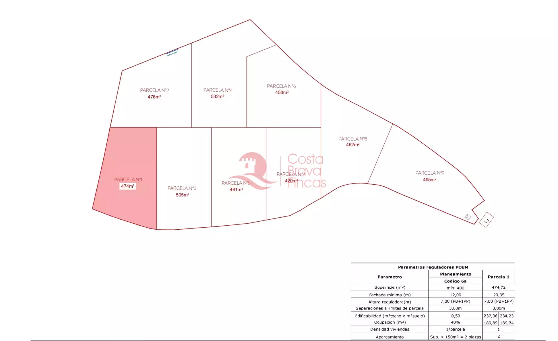 Large building plot for sale in Sant Antoni Located in a quiet residential area, just a short walk to the town and beaches at Sant Antoni de Calonge, one large plot of land has been legally segregated into 9 individual plots ready for construction. Included in the price are 9 villa projects - stylish, modern villas with pools and approx 350m2 build capacity. Each villa will have a south facing facade, garage, pool and some with sea views. Also included are the building licences - you can start building straight away. Projected land and build cost for each villa is 875,000€, and proposed sale price is 1,250.000€. An excellent development opportunity. For the best development opportunities in the Costa Brava, contact Costa Brava Fincas.