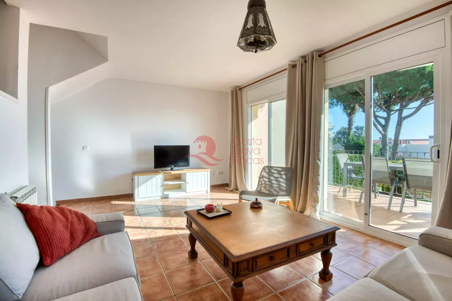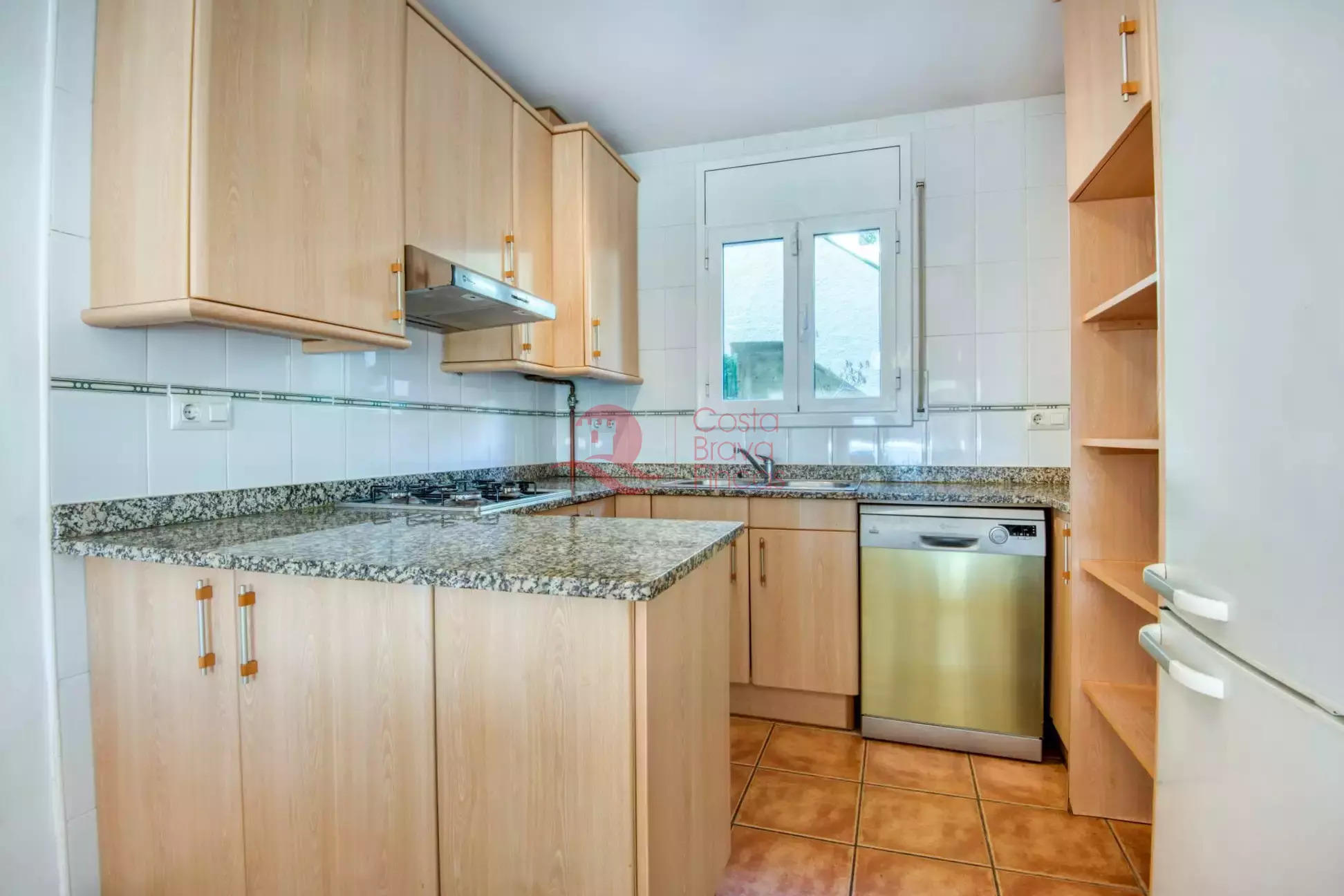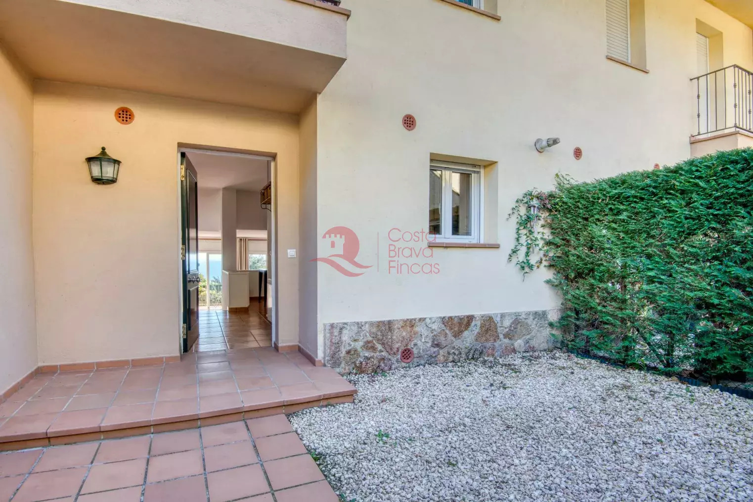Townhouse with rental licence in Sant Feliu de Guíxols EXCLUSIVE APIALIA COSTA BRAVA. In the tranquil area of Les Penyes, just 2 km from the beach and the center of Sant Feliu de Guíxols, we present this spacious townhouse with an excellent price-quality ratio: south-facing to enjoy maximum natural light, attractive sea views, and an official tourist license, ideal for both private use and profitable investment. The house is part of a small block of seven homes with access to communal garden and pool. The ground floor offers immediate comfort: a fully equipped open-plan kitchen, adjoining dining area, guest toilet, and a bright living room with sliding doors that lead to a large terrace and a compact garden. There is an additional patio at the front, totaling approximately 50 m² of outdoor space. The night area is located on the upper floor. The master bedroom, with a renovated en-suite bathroom, offers beautiful sea views and is equipped with air conditioning. There are two more double bedrooms with built-in wardrobes and a shared bathroom. The ground floor offers invaluable space: a spacious and multifunctional area with countless possibilities: guest room, study, game room, or office. On the other side of the communal garden, you will find a secure garage of approximately 25 m². The property is equipped with heating and hot water via natural gas, and aluminum windows with double glazing. The granted rental permit makes it even more attractive. In summary: a proposal with future security for a permanent residence or a solid investment as a second home. For the best homes for sale in Sant Feliu de Guíxols and the Costa Brava in general, please contact Costa Brava Fincas.