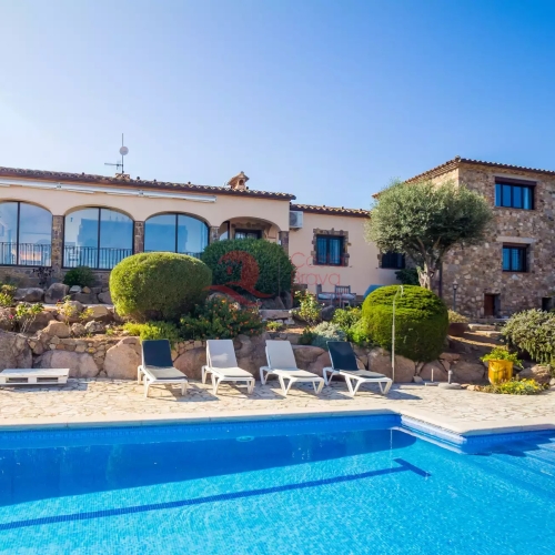 Spacious villa for sale in Cabanyes, Calonge APIALIA COSTA BRAVA PRODUCT. This property is a unique piece due to its extraordinary spaciousness and an intelligent layout that offers endless possibilities. Located on a large plot with unobstructed sea views, the house stands out for its ability to adapt to both large families and those seeking an investment with independent spaces. Main Residence: Two Homes in One The main house is ingeniously designed as two independent apartments, connected by an internal door that allows them to be unified or kept private as desired. The heart of this union is a large enclosed terrace, a common space flooded with natural light thanks to its large windows, ideal for enjoying throughout the year. Apartment A Distribution: A cozy environment that includes its own living room, equipped kitchen, 1 double bedroom, and a full bathroom. Perfect for guests seeking autonomy or as a main resting area. Apartment B Distribution: Ideal for everyday family life, it features its own living room and independent kitchen. Bedrooms: It has 2 double bedrooms and 2 single bedrooms. Versatility: The two single rooms are interconnected, allowing for transformation into a large dressing room, a suite with a play area, or an office. However, both maintain their own door leading to the main hallway for conventional use. Bathroom: An additional full bathroom serves this area. Guest Retreat and Leisure Area At the pool level, the property surprises with an independent studio. This space is a dream guest apartment: very spacious, bright, and equipped with its own kitchen and full bathroom. Adjacent to this studio, we find: A large covered terrace, perfect for summer dinners in the shade. An outdoor terrace area with barbecue, designed for entertainment by the pool. Functionality: On the same floor is a closed garage and a large workshop or storage room with natural light, ideal for DIY enthusiasts or extra storage. Exterior and Environment The garden is undoubtedly one of the major attractions. Spread over a large plot and divided into different levels, the land invites you to get lost in its corners. The topography allows for the creation of different environments (reading areas, vegetable garden, or chill-out zones) while enjoying panoramic views of the sea. Additional details: Comfort: Diesel heating system throughout the house. Condition: A large, solid house with a structure that guarantees light and space in every room. Note: This property is ideal for those seeking flexibility: living in one area while renting the other, accommodating multiple generations of a family while maintaining independence, or simply enjoying a house with ample space for every hobby. For the best houses for sale in Calonge and the Costa Brava in general, please contact Costa Brava Fincas.