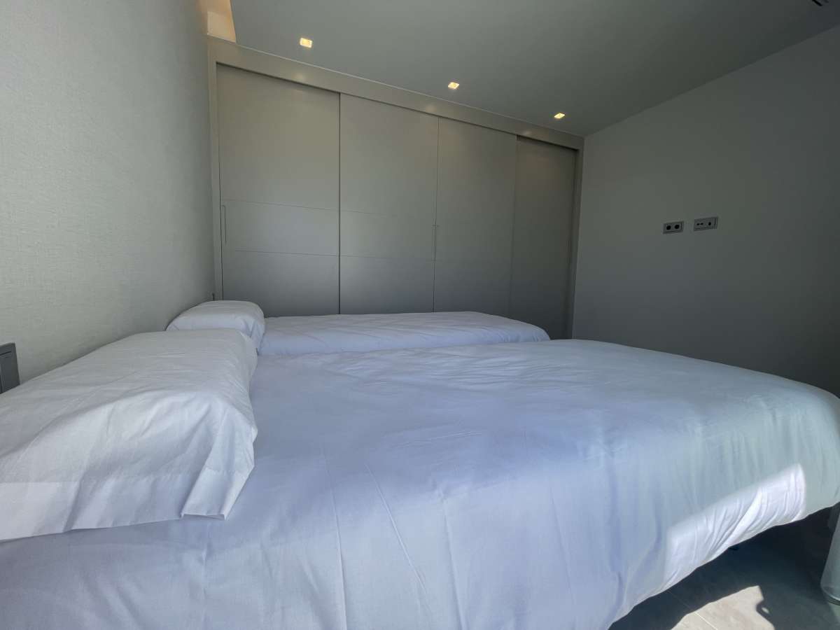 Recently built beautiful villa located in Las Colinas that is fully furnished and move-in ready. Has a rental licence. Upon entering the property you immediately enter the living area and spacious open plan kitchen once you have passed the stairs to the first floor and a guest bathroom. On the ground floor, there is one bedroom with a spacious bathroom. From the living room and lounge, you have direct access through the large sliding windows to the terrace and the beautiful swimming pool. The terrace is also fitted with a large pergola equipped with an electrically operated slat system which you can set at any angle to block out the sun, if needed. The large infinity pool is built in an L-shape with an extra shallow platform to properly enjoy the sunny days.On the first floor we find 2 bedrooms and a bathroom. Both bedrooms have access on the terraces.