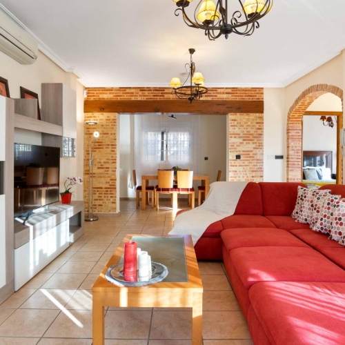 Discover your dream home in this exquisite villa that offers the perfect blend of year-round living and idyllic extended holidays. Boasting breathtaking views of the Pink Lakes of Torrevieja and the sea, this property is nestled in the heart of nature with convenient access to essential services. The community features a generously sized communal pool, while the villa itself comes complete with a private swimming pool, providing the ideal setting for relaxation and entertainment. The living space is bathed in natural light, thanks to large windows that offer a captivating view of the pool. The open-plan kitchen, styled in a modern Scandinavian fashion, seamlessly connects to the lounge, creating a welcoming and contemporary atmosphere. On the ground floor, a spacious bedroom with an ensuite bathroom awaits, along with an additional bathroom for the convenience of guests. The property also provides direct access to the forth bedroom/living room from the inside, currently utilized as living room and cinema area. Venture to the first floor to discover two more generously sized bedrooms and another bathroom. Large terraces and a solarium contribute to the allure of this property, ensuring you can fully savor the vibrant Spanish lifestyle. Inside garage and utility room will come with the property. Situated in the charming area of Orihuela Costa, this home offers proximity to the renowned Pink Lakes of Torrevieja, providing a scenic backdrop for daily living. Torrevieja, a coastal town nearby, further enhances the appeal with its vibrant atmosphere, offering a myriad of amenities, cultural experiences, and pristine beaches. Secure your opportunity to experience the epitome of Mediterranean living - book your viewing now and step into a world of luxury and comfort. The house has a tourist license.