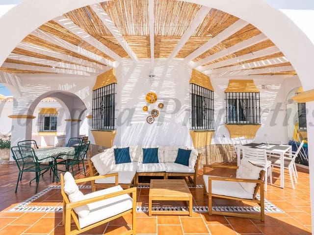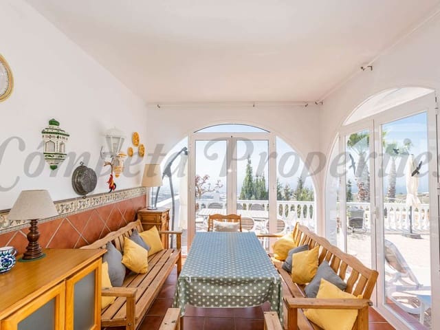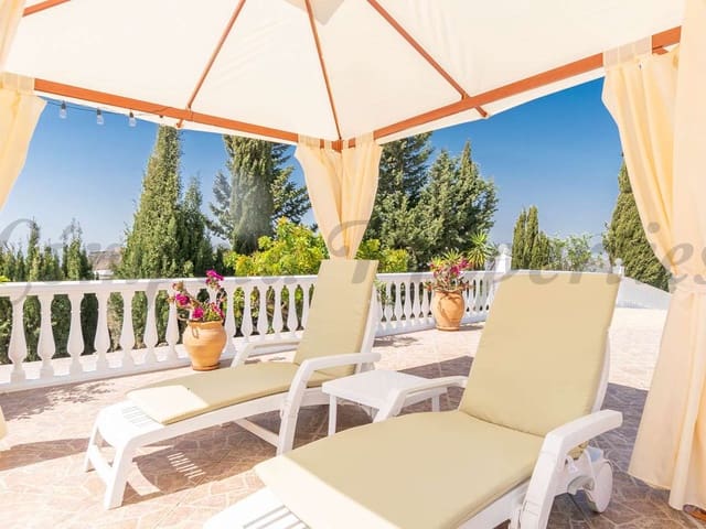 Stunning holiday villa with private swimming pool and apartment offering superb views over the surrounding countryside, up to the impressive Sierras and down to the Mediterranean and across to the coast of Africa. The property is less than fifteen minutes drive from the coast. This lovely south facing country property has a gated entrance opening onto the pressed concrete driveway leading to the parking area. There is a covered terrace at the main entrance which continues round to pergola covered terrace with retractable awning at the front of the house overlooking the swimming pool. Interior accommodation comprises a spacious living room, an archway opening onto the fully fitted kitchen and a short corridor gives access to two bedrooms, both with fitted wardrobes and a newly renovated bathroom with bath facilities. From one of the bedrooms a door opens into another spacious bedroom which offers one large double bed and a day bed which can sleep two children, it also offers newly renovated ensuite bathroom facilities. From this room one gains access to the exterior sun room with a fabulous summer kitchen and barbecue area with double glazed patio doors overlooking the pool. The property also offers a spacious, newly renovated separate apartment with a double and single bed and a large ensuite with shower facilities. A/C is available throughout the house and apartment. Smart TV is available in the lounge and one of the double bedrooms. The exterior is as enticing as inside with established gardens, attractive terraces, and tiled swimming pool with outside shower and lots of space around on which to sunbathe. The perfect home for family holidays in the Spanish sunshine! Different prices are provided depending on the number of guests; please contact us for more information. Pool heating is available with a cost of 100€ per week.