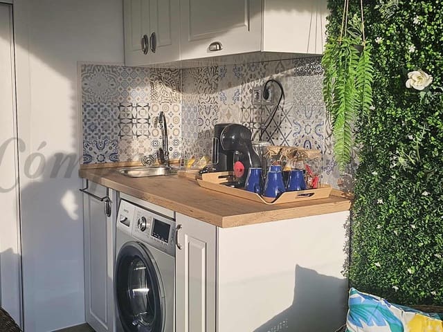 The entrance leads to a staircase that provides access to the first floor, where an open-plan living area integrates the living room, dining room, and kitchen. This floor also includes a double bedroom and a full bathroom. The kitchen opens onto a welcoming terrace, perfect for breakfast. The living room features two Juliet balconies that flood the space with natural light.
