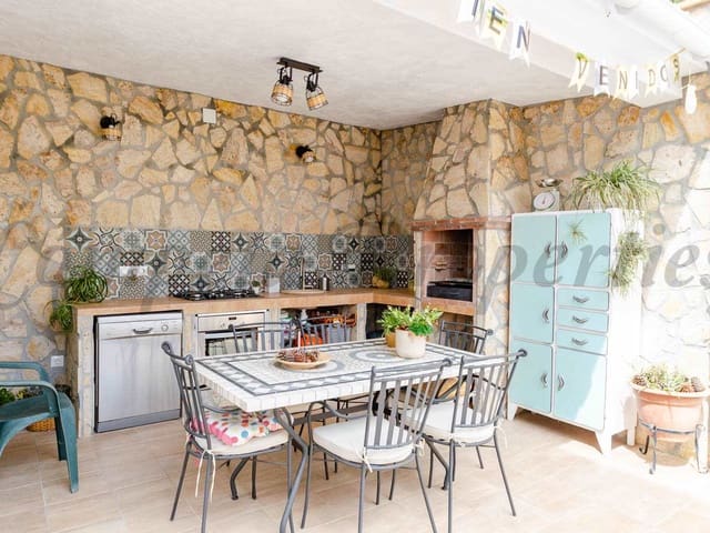 A spacious family home nestled in a quiet location in Competa, offering easy access. Situated in a cul-de-sac's end, this property comprises two houses (currently interconnected). The first house features all living spaces spread across a single floor, boasting a bright living area with a cozy wood-burning fireplace and AC facility. Accessible from here is a glass-enclosed balcony. Additionally, there's a equipped kitchen, two double bedrooms (one with AC), a single bedroom, and a shared family bathroom. External stairs lead to the upper level, where you'll find a laundry room with an electric hot water boiler, along with a second bathroom and a terrace with captivating sea views. At the back of the property there is another terrace hosting a summer kitchen, with a BBQ, dishwasher, gas stove, and oven—an idyllic spot for al fresco summer nights! The secon house remains as an ongoing project, with two floors with dual terraces (one at the front with sea views and the other at the back of the property), providing access to the marvelous garden that offers the opportunity for a swimming pool installation—a rare advantage found in townhouses! Lastly, the ground level of the property offers two garages currently serving as a commercial workshop. This presents an exceptional chance to have a spacious family home, embark on a business venture, or establish a holiday retreat for two families. Don't hesitate to explore this fantastic opportunity!