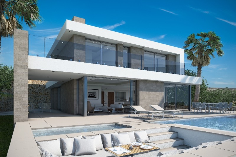 This modern and minimalist design villa is to be built in the town of Alcalali in the heart of the Jalon valley. This project is located on a south facing plot of 1,000 m2, with incredible views over the valley and mountains. The Villa is distributed over two floors with a total of 225 m2. The main living level consists of a large open plan living/dining room with fireplace, and open fully fitted kitchen with a pantry/store room, guest toilet and a double bedroom with built-in wardrobes and an en-suite bathroom. This floor has direct access to the pool terrace. In total the house has 4 bedrooms, each with en-suite bathroom. Up the internal staircase you will reach the first floor which consists of a hall, two double bedrooms, each with en-suite bathroom and built-in wardrobes. The master bedroom has a dressing room and an en-suite bathroom. From two of these bedrooms there is access to a 30 m2 terrace with amazing views, finished with glass balustrades. The 60 m2 pool terrace includes an 8 x 4m infinity pool with interior light and steps, beside the pool, there is an area with for relaxing and dining. The price includes the excavation necessary to adapt the villa to the slope of the plot. There is a concrete parking area at street level, a natural stone wall with fencing including gates for both car and pedestrian access and a staircase from the street level to the entrance of the villa. Water and electricity connections are included as is all the necessary documentation, a ten year warranty insurance and licenses. The client can still modify the plans, building materials and qualities prior to construction. The plot has wonderful views over the Jalon Valley. Alcalalí is a pretty village in the heart of the Valley of Jalon, well connected and with all services such as health centre, pharmacy, school and restaurants. It is only 20 minutes from beaches and coves in the coastal area of Calpe and Benissa. It is situated just 15 minutes from the AP7 motorway and more or less 1 hour from Alicante Airport. This is just one of the many Spanish properties that we have to offer on the Costa Blanca in the Alicante province. If you are looking for an apartment, townhouse, villa, new build villa, country house or a plot to build your own property, we have them all, and we also offer a property finder service to help you find the property that is perfect for you. If you cannot find what you are looking for on our website please contact us with your criteria and your budget and we will do our very best to assist you.