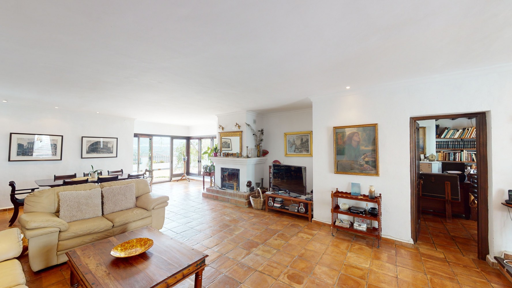Er du på udkig efter en oase i harmoni med naturen? Et sted med fred og afslapning, hvor tiden går lidt langsommere? Ja?! Så vil vi gerne vise dig denne fantastiske villa i bjergene i Torrox. Den byder på et imponerende, storslået hovedhus, et separat, lille gæstehus og en pool, samt 5.569 m2 jord, som overvejende er flad og dermed giver utallige muligheder. Ejendommens indretning gør det muligt at bruge hovedhuset som to uafhængige boligenheder med separate indgange. Denne fantastiske ejendom er perfekt som et flerfamiliehus, B&B eller som en investeringsmulighed for et yogacenter, et eventsted, en danseskole eller et meditationstempel.... En næsten fuldstændig asfalteret indkørsel fører dig til en grusparkeringsplads, som er delvist overdækket. På dette niveau ligger den charmerende gæstebolig med sin egen overdækkede terrasse. Den er udstyret med en hyggelig, åben stue/spisestue med en seng, et køkken og et badeværelse. Pejsen sørger for behagelig varme i de køligere måneder. En indkørsel samt en trappe fører til det nederste niveau. En anden tung trædør med en hestedørsknager i jern giver adgang til den rummelige, imponerende stue med pejs i den første del af huset. Til højre er der et gæstetoilet. Ved siden af dette er der et rum, som i øjeblikket bruges som kontor/bibliotek. Det kan også opvarmes til en behagelig temperatur i de køligere årstider med pejsen. Vi har ved siden af et lille, glaseret rum, hvorfra man kan nyde udsigten over det omkringliggende landskab. Fra den store terrasse foran huset er der en betagende udsigt over den berømte hvide landsby Frigiliana og Sierra de Tejada i baggrunden. Takket være beliggenheden på bjergskråningen kan hulrummet under denne terrasse stadig lukkes og skabe mere opholdsrum, hvis der er behov for det. Fra stuen, som også har adgang til terrassen, kommer man ind i det rummelige åbne køkken med spiseplads. Her er samspillet mellem traditionelt og moderne perfekt lykkedes. En terrassedør i glas fører ud til den smukke u-formede og typisk andalusiske gårdhave med springvand. På husets anden etage er der tre soveværelser og to badeværelser. Det største soveværelse har et stort, moderne badeværelse med egen sauna samt badekar og bruser. Fra to af soveværelserne er der adgang til en fortryllet u-formet balkon med udsigt ned i den andalusiske gårdsplads. Dens træbjælker og beplantning får det til at føles som om man er trådt ind i en anden tid. En korridor fører fra denne balkon til den anden del af huset. På anden etage er der et soveværelse med endnu en pejs, kaldet Sunroom på grund af vægfarven. En trappe fører ned til et stort åbent rum med et stort fladt ovenlysvindue, der lukker naturligt lys ind. Rummet kan bruges til en lang række muligheder. Som et dansestudie, atelier eller et konferencerum. Her kan der også skabes en feel-good temperatur med en stor pejs. På dette niveau har vi også en stor tung trædør, den separate indgang til denne del af huset. Lige ved siden af indgangspartiet er der et fuldt udstyret badeværelse. Gennem en åben bue kommer man ind i et opholdsområde med et lille, charmerende køkken. Gennem vinduer næsten fra gulv til loft ser man ud på en idyllisk dam og ud i landskabet. Der er endnu et badeværelse og to soveværelser, begge med adgang til det udendørs område. Det udendørs område omfatter en pool, mange terrasser med siddepladser, en lille grøntsagshave og nogle oliventræer. Bodegaen, eller vinkælderen, giver palæet den sidste finish og garanterer den rette temperatur for din vin. Vi er glade for at kunne præsentere denne drømmeejendom for dig snart, enten personligt eller via virtuel visning. Fordi denne verden, den er unik - ligesom vores Axarquía. I Andalusien. På Costa del Sol. Her, på livets solside...
