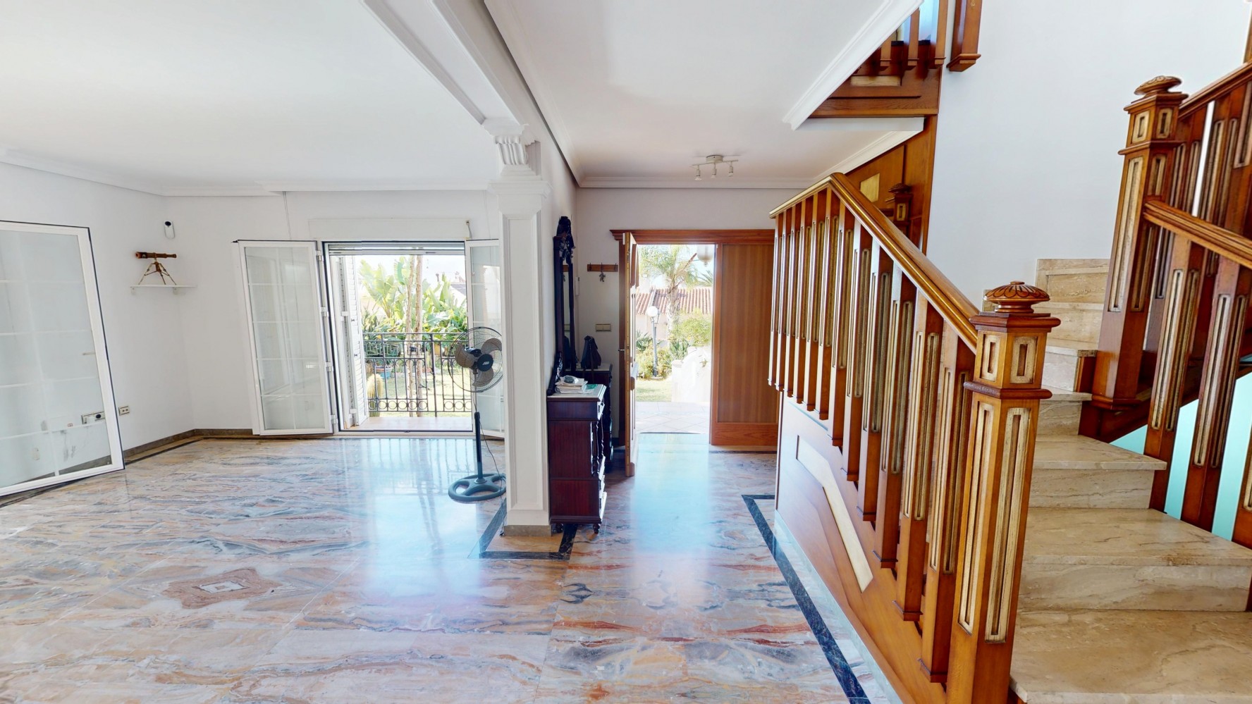 Denne imponerende villa i Caleta de Vélez kombinerer luksus, komfort og spektakulær udsigt over havet og haven. Ejendommen ligger tæt på butikker, havnen og stranden og har aircondition, gulvvarme, elevator og indbyggede skabe samt opbevaringsrum, vaskerum og personaleboliger. På første sal inviterer en rummelig og lys stue med en overdækket terrasse dig til at nyde øjeblikke af hvile med udsigt over omgivelserne. Det fuldt udstyrede køkken med spisekammer åbner ud til en rummelig udendørs terrasse, der omfatter et udendørs køkken, toilet og direkte adgang til en jacuzzi, perfekt til møder og underholdning. Der er også et toilet på denne etage for ekstra bekvemmelighed. En mellemetage byder på to soveværelser og et komplet badeværelse, ideelt til et gæsteområde eller yderligere soveværelser. På anden sal er to soveværelser, der er forbundet med en stor balkon, og der er naturligt lys og udsigt ledsaget af et komplet badeværelse. Kælderen rummer elevatorvedligeholdelsesrummet, et rum med små vinduer, et meget rummeligt opbevaringsrum og en stor carport, der tilbyder ekstra plads og funktionel opbevaring. En ideel ejendom for dem, der leder efter store rum, komfort og privilegeret udsigt i en uovertruffen beliggenhed på Costa del Sol.   Vi er glade for at kunne præsentere denne ejendom for dig snart, enten personligt eller via virtuel visning. Fordi denne verden er unik - ligesom vores Axarquía. I Andalusien. På Costa del Sol. Her, på livets solside...