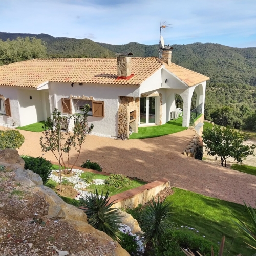 Detached house with sea views, large terraces, with Mediterranean charm and character and surrounded by a natural environment with a large plot and possibility of extension, just 2 minutes drive from the center and 10 minutes from the best beaches of the Costa Brava and all necessary services and shops. It has 217m2 built on a plot of 2188 m2 (there are 3 plots) which is divided into: Entrance stairs Large stone wall demarcating the property. Custom made by the current owners 2 independent garages for 2 cars with electric door with remote control Large terrace with barbecue area overlooking the sea The barbecue area is spacious and built next to the terrace. Beautiful decorative stone well Living room with a large fireplace that gives warmth and character to the house, with beautiful stone arches. Dining room with access to the terrace Large kitchen with cast iron fireplace and space for a daily dining room, equipped with quality appliances with access to the barbecue area Indoor patio with sea views In the night area: 2 double rooms 1 complete bathroom with shower tray 1 master bedroom en SUITE with private bathroom with shower tray Fitted wardrobes, propane gas heating, air conditioning in the living room and master bedroom, large plot of land, privacy and tranquility. Ideal location on the Costa Brava. Taxes, notary fees and registration fees are not included in the sales price.[IW]