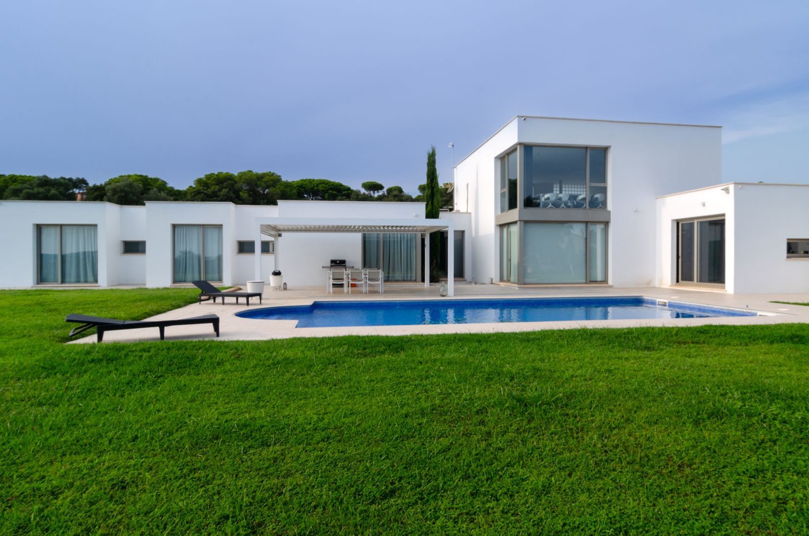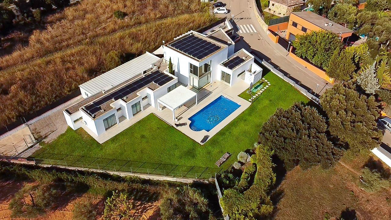 Discover this spectacular modern home located in one of the most prestigious residential areas of Calonge, on the charming Costa Brava. With a 1,328 m² plot and 449 m² built area, this property offers a luxurious lifestyle with top-quality finishes. The house is spread over two floors, providing a spacious and functional space for the entire family. On the main floor, you'll find a bright living room, a fully equipped kitchen, a storage room, a fitness area, and a garage with capacity for three cars. It also features three bedrooms, each with its own bathroom, and a master suite with a dressing room and luxurious bathroom. The upper floor houses a 60 m² room currently used as an office, perfect for working from home in total comfort. The stunning garden is the ideal place to relax and enjoy the Mediterranean climate. With a private pool and panoramic views, this outdoor space is perfect for entertaining and family enjoyment. The house is equipped with solar panels, natural gas heating, and central air conditioning, ensuring maximum comfort year-round. It is being sold fully furnished and ready to move into. The location is unbeatable: close to Sant Antoni de Calonge, Palamós, and Platja d'Aro, with direct access to the C-65 motorway connecting to Girona, Barcelona, ​​and France. Girona Airport is just 35 km away, and Barcelona Airport is 115 km south. Don't miss the opportunity to live in this architectural gem on the Costa Brava. Contact us now for more information and to arrange a viewing![IW]