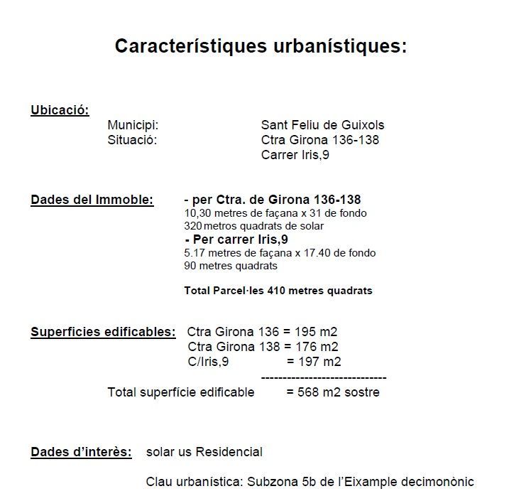 Two plots in Sant Feliu de Guíxols, Ctra de Girona 136 and 138 and entrance via carrer iris, 9 with a total buildability of 568 meters of roof[IW]