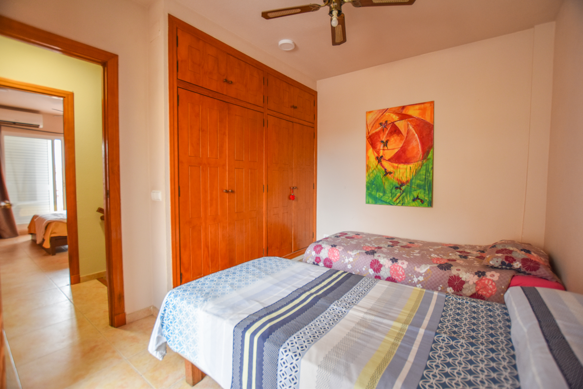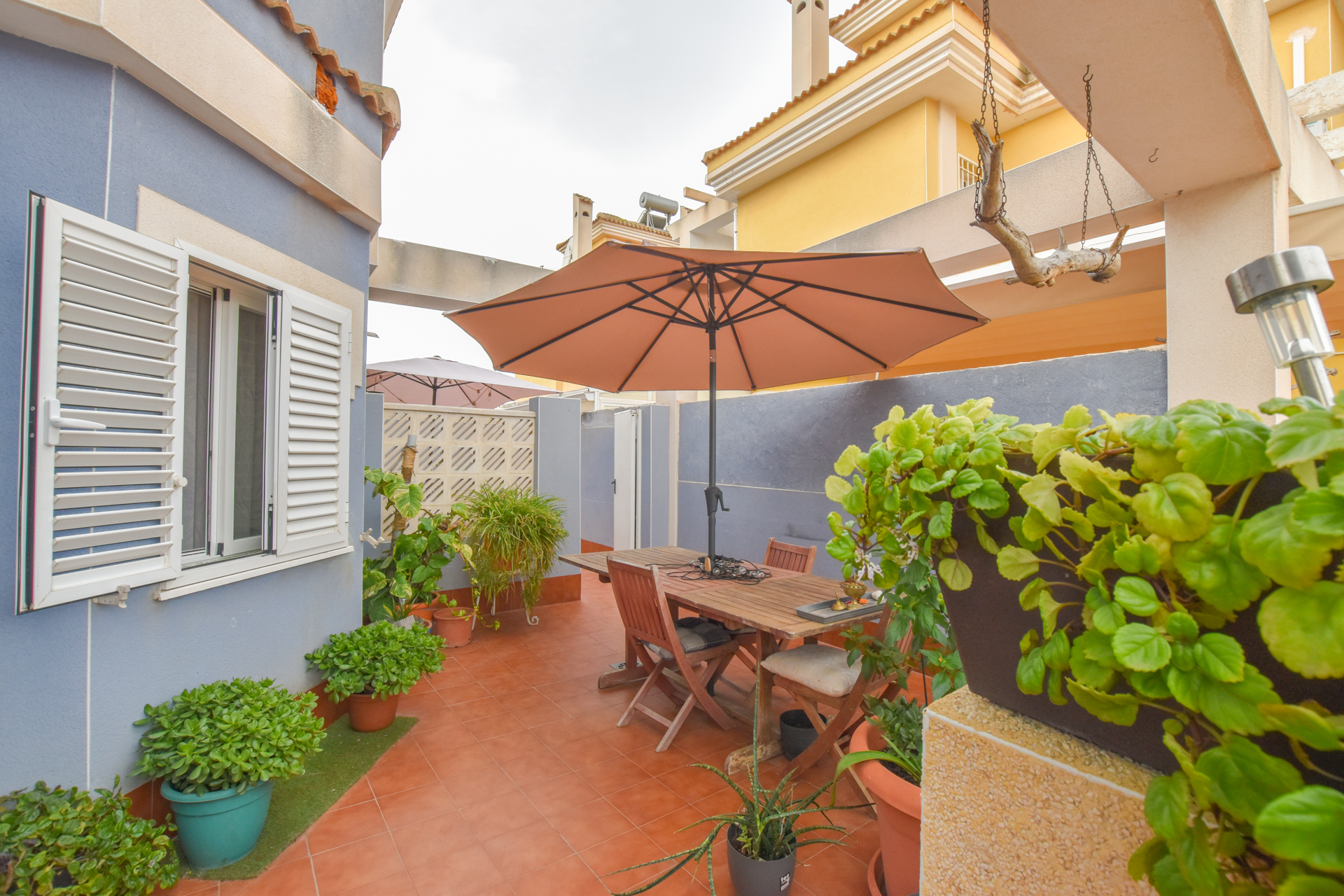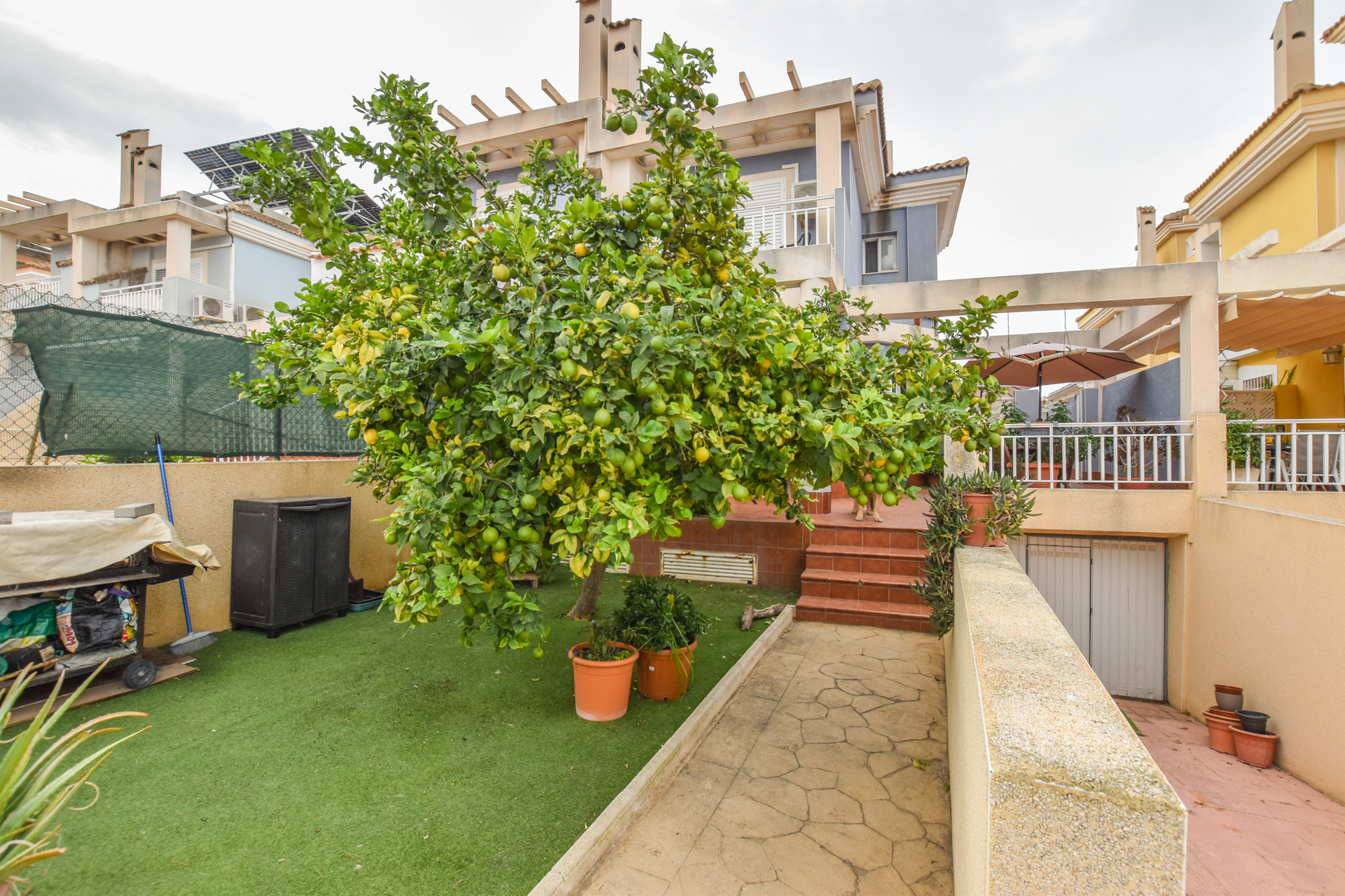 Semi-detached villa with 3 bedrooms and 2 bathrooms, Without furniture and with kitchen appliances, 3 good size family bedrooms, good size independent kitchen, fireplace, electric heaters, Northeast facing. Built-in wardrobes in every bedroom, Lined wardrobes, shutters on all the windows, Balcony, Nice size basement of 107m2 with an extra bedroom, Near the communal swimming pool and a basketball court and the 2 tennis courts, located in a very nice quiet well maintained and gated urbanization situated in the upper part of Gran Alacant near all amenities, shops restaurants, health centre, spa centre, and local bus and train stop. Gran Alacant is a lovely and quiet place and has lots to offer; there is the beautiful Carabassi beach with all it´s amenities, the nature reserve park the Clot the Galvany with its wetlands and all kinds of birds to watch, you can have lovely walks for hours and enjoy its tranquility, there is a dog park with equipment for your furry companions, plenty of children's play areas, bars and restaurants, supermarkets, and the local Thursday Street market, there is a bowls club and plenty of other businesses with activities such as paragliding and diving available, this is the perfect place for outdoor enthusiasts. Don't miss this opportunity to own a piece of paradise on the Costa Blanca. Santa Pola is about a 7- minute drive from Gran Alacant with its lovely harbour area and ferries to the island of Tabarca, nice fish restaurants, every Saturday and Monday there is a big local street market and the salt flats and the birds that are known for being there, the flamingos. Alicante City which is just 15 minutes away from Gran Alacant has lots to offer with two castles (Santa Barbara and San Fernando), museums, theaters, shops and restaurants and lest not forget the impressive harbour where you can spend a lot of time looking at dream yachts. The Ocean Volvo race has it start in the harbour of Alicante which is always a big event, and there are usually activities in that area. Alicante is a vibrant city during the day and night where many festivals are celebrated. And not to forget Elche which is about 25 minutes away from Gran Alacant. Famous for its palm park and palm trees throughout the city and of course the Dama de Elche. It has an old town with a wide selection of shops and restaurants, several shopping centres, two universities and their football team; Elche FC which are in the second division of La Liga. Alicante/Elche International Airport is only 10 minutes by car from Gran Alacant.