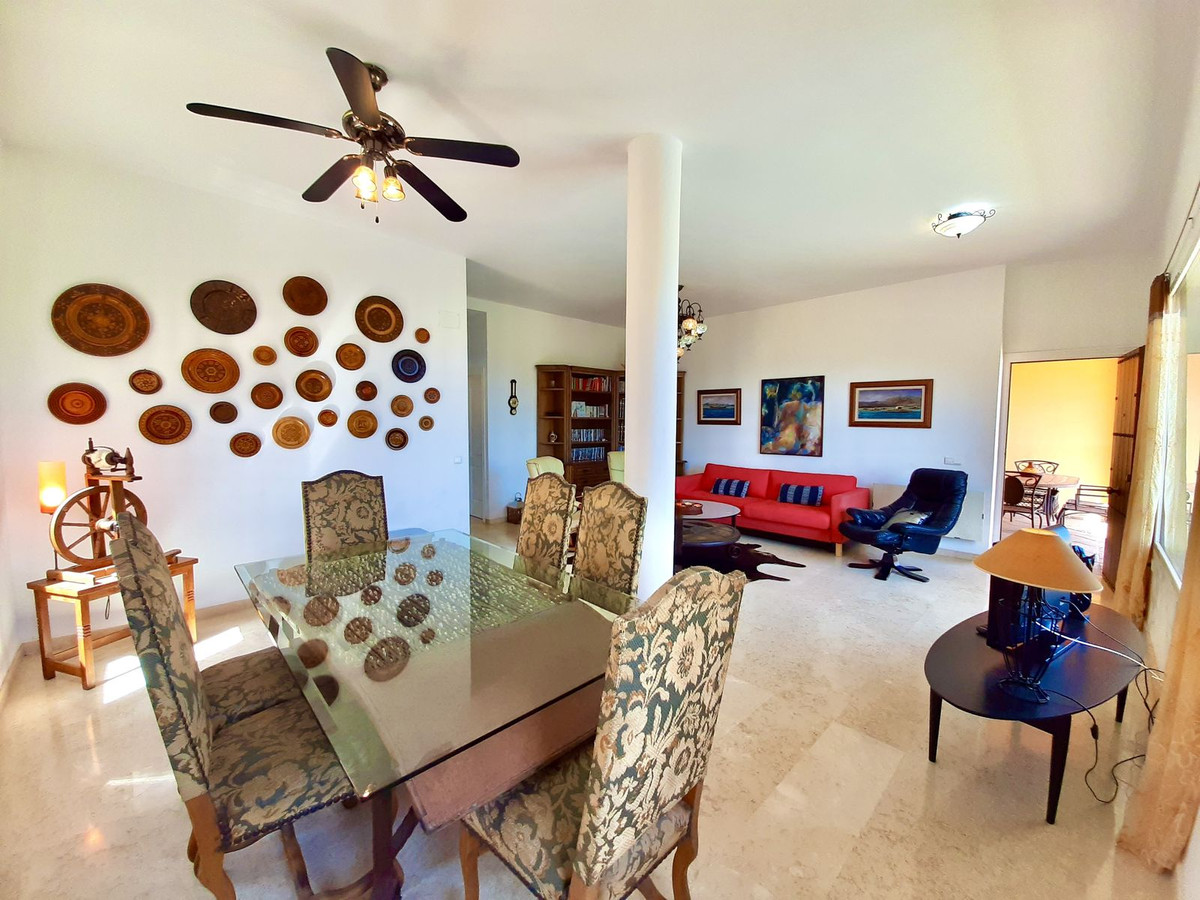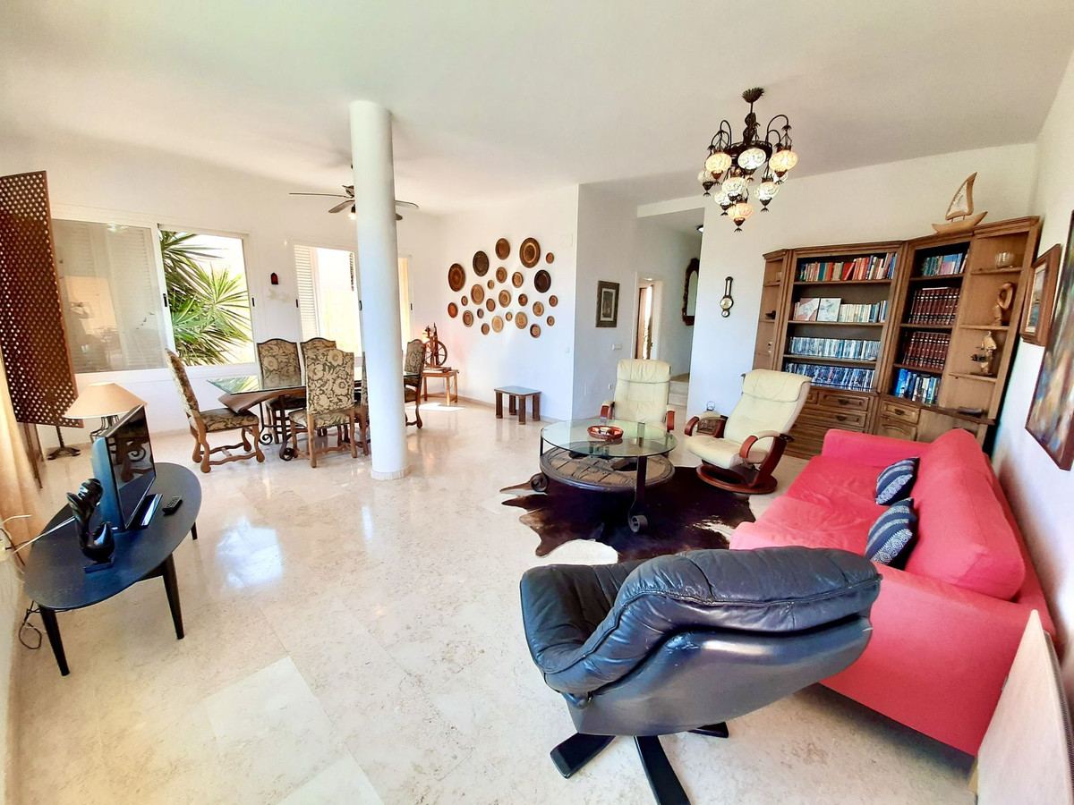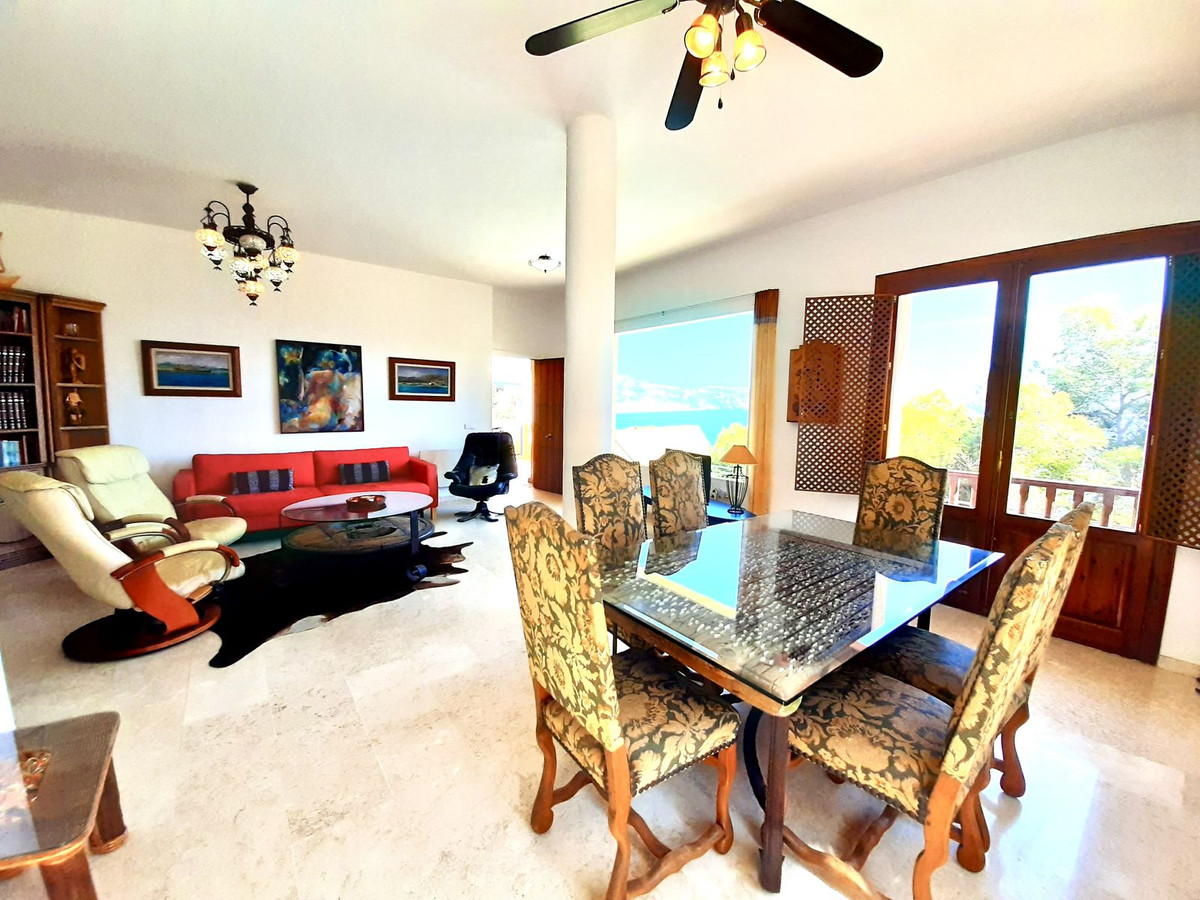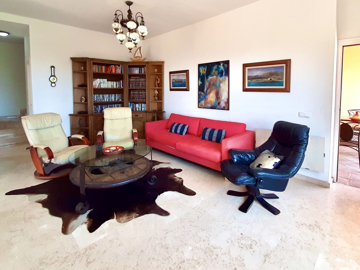 Stuen, der er opdelt i to områder, har en uovertruffen udsigt og direkte adgang til en overdækket veranda ved siden af swimmingpoolen. Marmorgulve i hele huset tilføjer et strejf af særpræg og elegance.