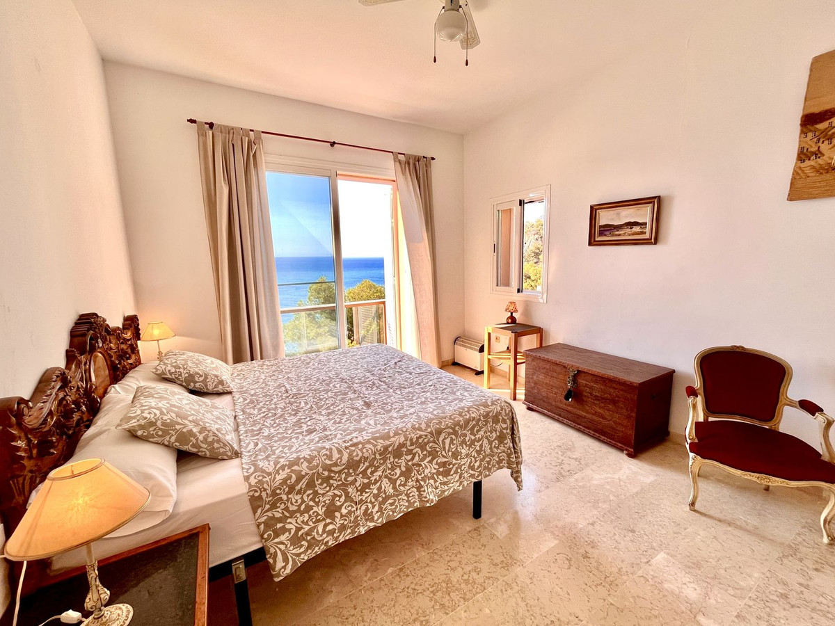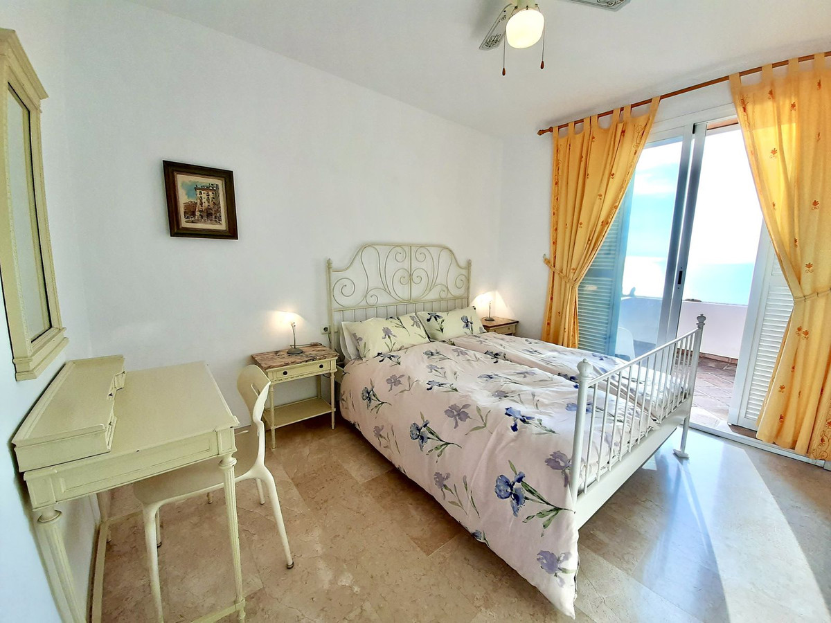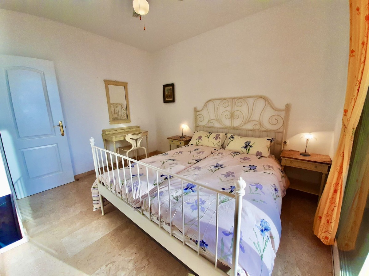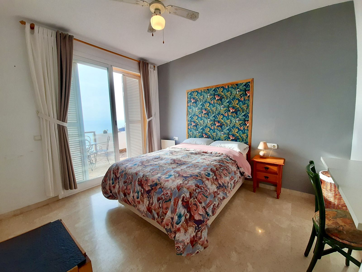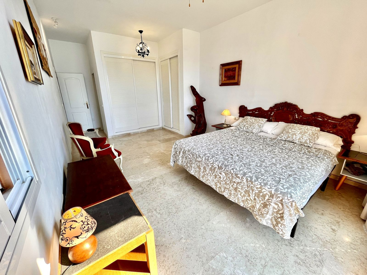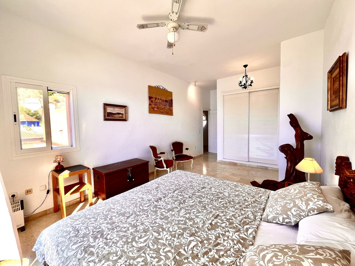 Ejendommen har tre rummelige soveværelser med dobbeltsenge, alle med indbyggede skabe og adgang til en stor terrasse med panoramaudsigt over La Herradura-bugten. Det store soveværelse har et elegant en-suite marmorbadeværelse.