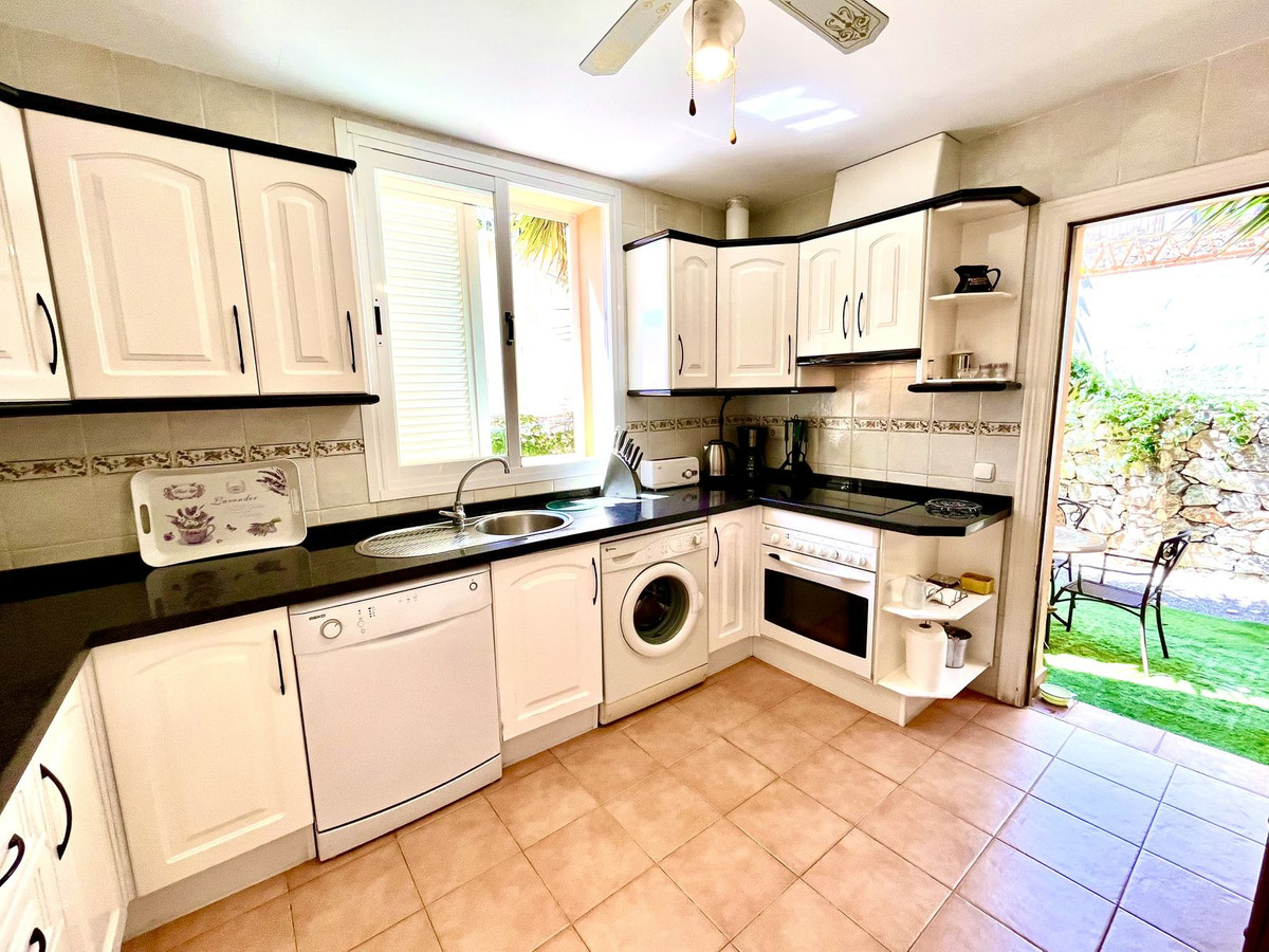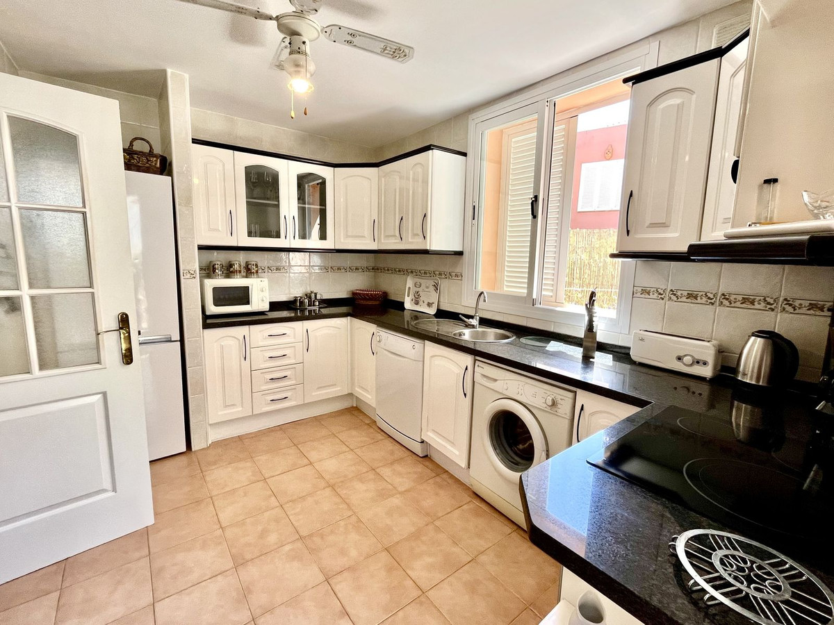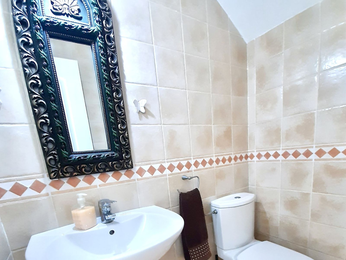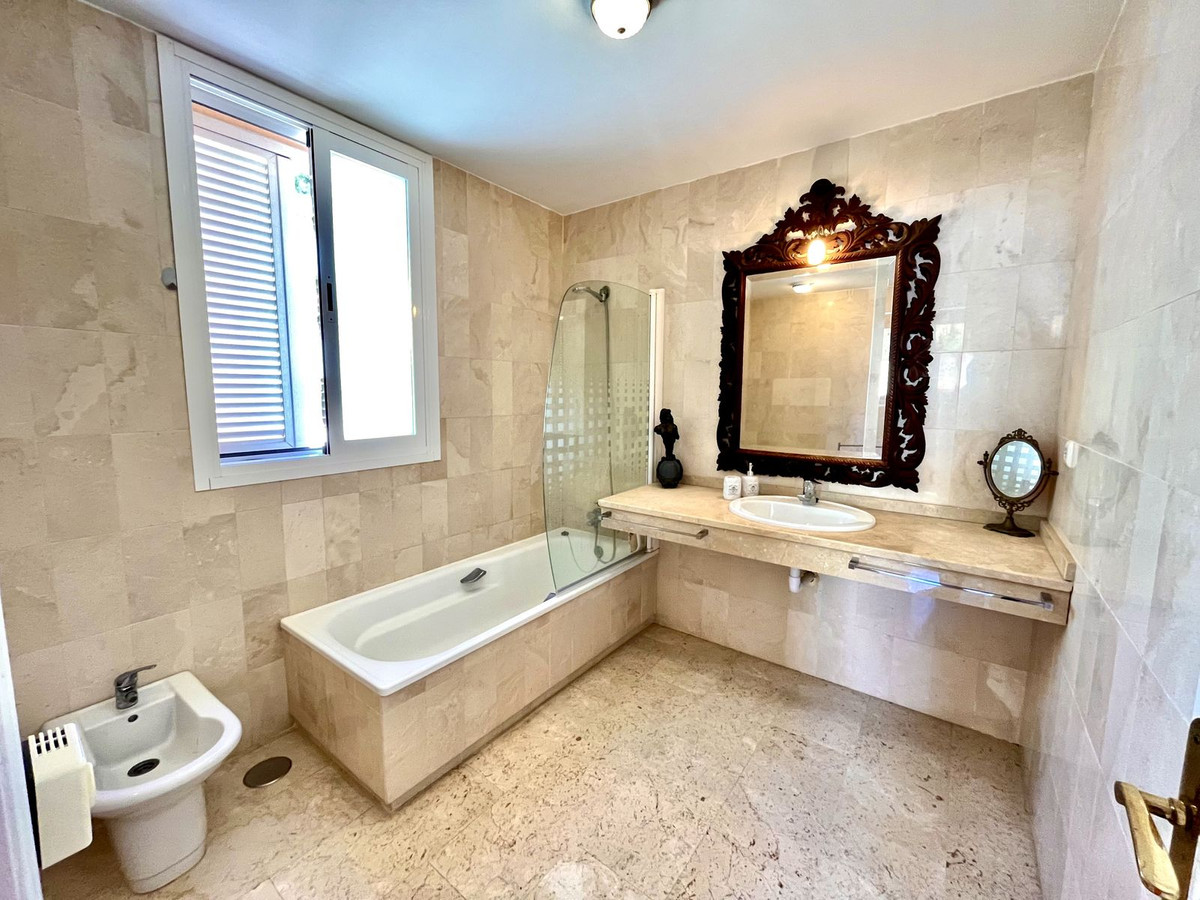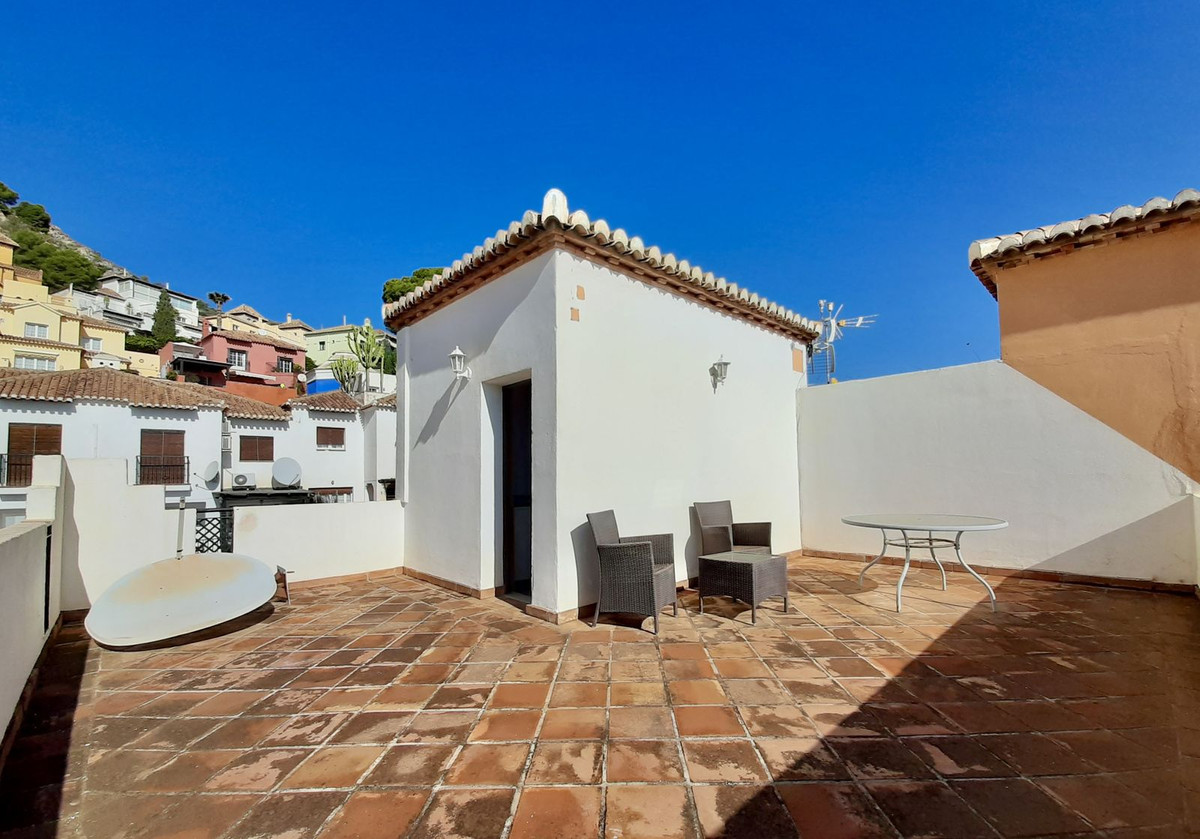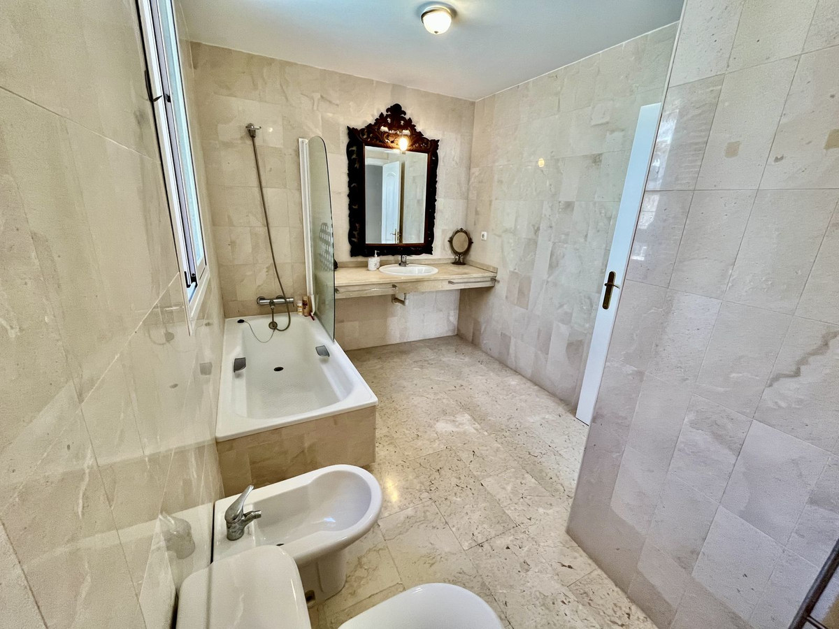 Ejendommen har tre rummelige soveværelser med dobbeltsenge, alle med indbyggede skabe og adgang til en stor terrasse med panoramaudsigt over La Herradura-bugten. Det store soveværelse har et elegant en-suite marmorbadeværelse.