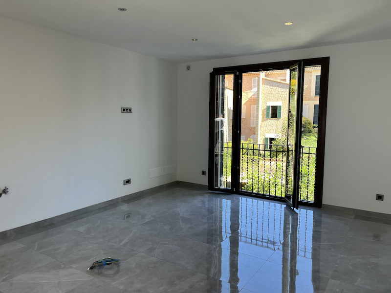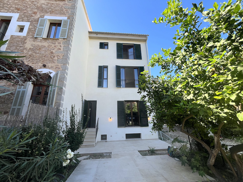Fantastic newly built house in Sóller. It is located in one of the most emblematic streets of the village. The house has 166 m² constructed area and is distributed over three floors plus a semi-basement. On the ground floor is the garage, equipped with electric car charger, which gives direct access to the back garden. The semi-basement houses a large multifunctional room, as well as a complete bathroom. On the first floor we find a living-dining room and the area destined for the kitchen. There is also a toilet. On the first floor there are two bright bedrooms, both with en-suite bathrooms, offering maximum comfort and privacy. This house is equipped with solar panels, electric car charger, air conditioning, hot/cold and an advanced home automation system to control all aspects of the house efficiently. Located in a quiet and sunny area, this beautiful property has many possibilities.