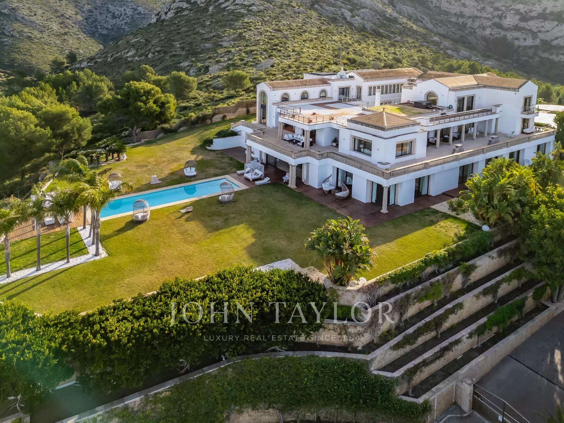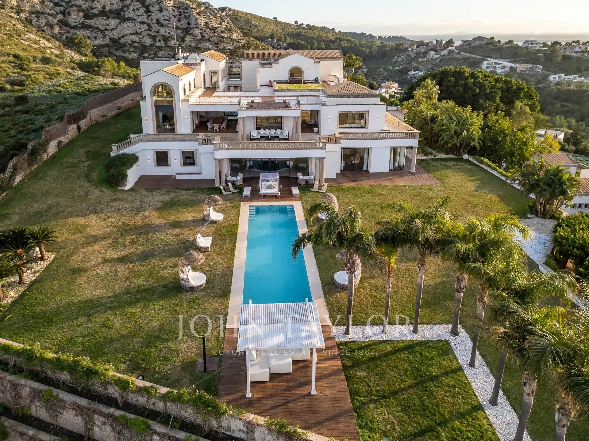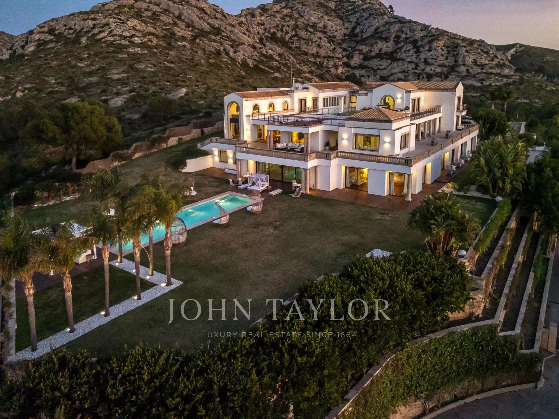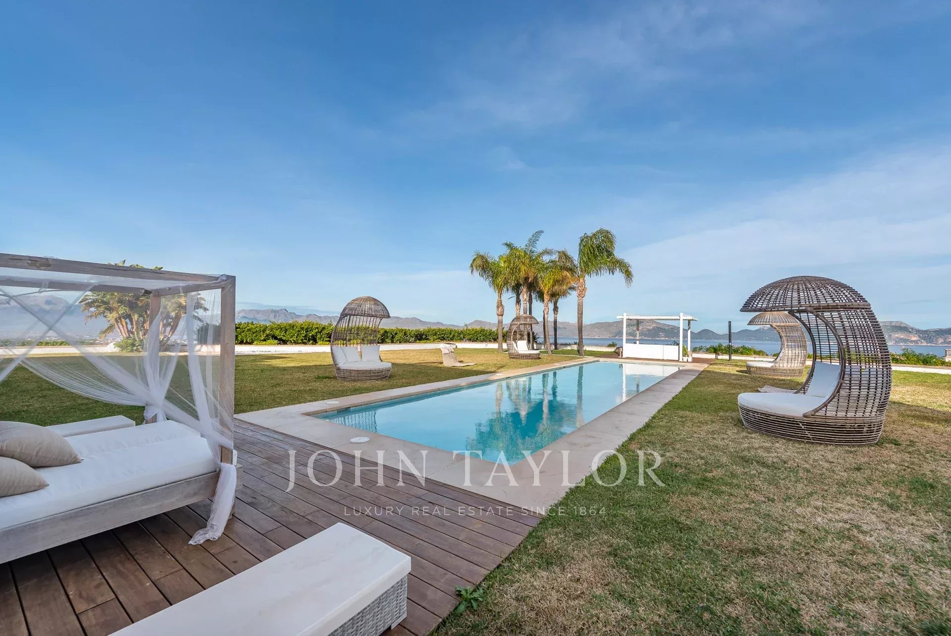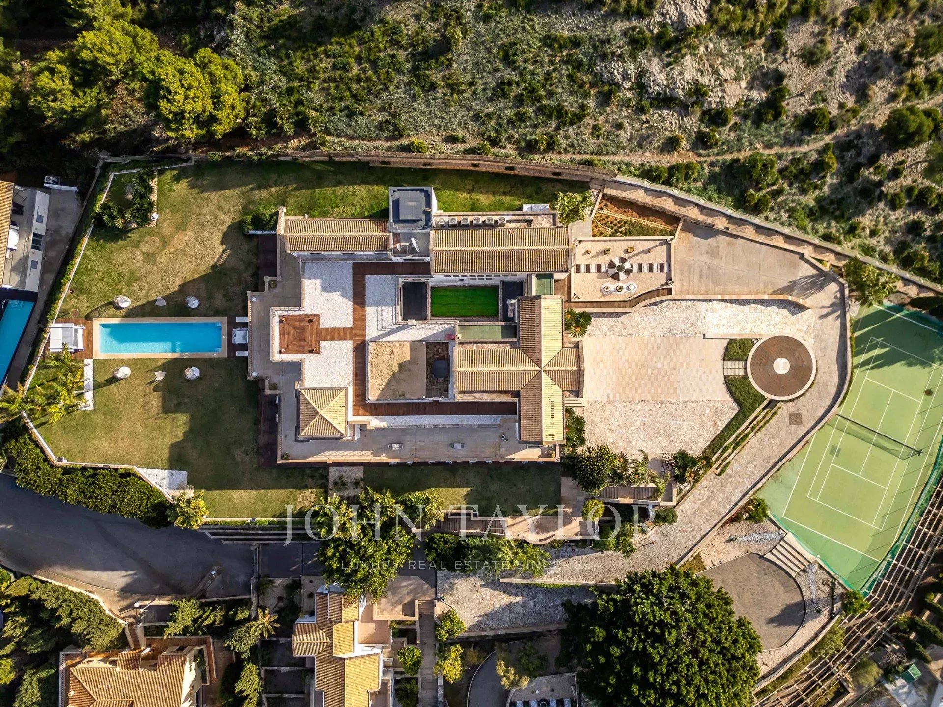 Magnificent Sea View Estate. Perched on the highest point of Mal Pas-Bonaire, Alcudia assuring the most spectacular seaviews over the bay of Pollensa this estate is truly unique and incomparable to anything in the North of Mallorca. Built to the highest specifications assuring the maximum of comfort and designed to impress, "Cielo de Bonaire" is an experience in itself. Built on three levels all connected via lift, the entry level offers an imposing entrance, games rooms, living room with cost fireplace, dining room, principal and secondary kitchens, guest bedroom with en suite bathroom and guest lavatory. The first floor includes the master suite including private living room and ensuite bathroom, two further bedrooms with ensuite bathrooms complete this area. The lower ground floor includes five bedrooms all with ensuite bathrooms, superb indoor heated pool, gym area, spa with turkish steam bath, sauna, jacuzzi and hydrotherapy shower. The exterior of the property offers an array of different areas for al fresco dining and entertaining to cater for both large or small scale groups, swimming pool, manicured mature gardens, tennis court, the "glasshouse" and heliport for direct air access to the property. The property is pefect not only for personal enjoyment but also for conventions, retreats or corporate presentations. Additional consierge services are available (subject to additional cost) such as helicopter hire, chauffeur, private chef, boat rental and babysitting to ensure a flawless experience for its guests. Local restaurants, beaches, yacht club and village are within 2kms. For golf lovers the closed course is 6km and the airport 60kms. For availability and further information please contact us directly to assist you with any information you may require.