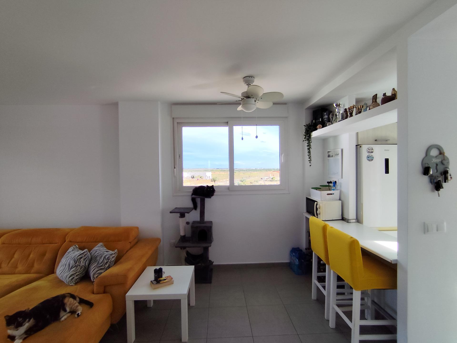 Top floor, 2 Bed Corner apartment in Phase 2 of the Golf Resort of Las Terrazas De La Torre. This property has stunning over the golf course ! The kitchen is fully fitted with all white goods, and comes furnished throughout. There is also Full AC throughout the apartment. In between the 2 bedrooms there is a nice family bathroom. The bathroom has been updated and has a walk in shower. The terras is spacious and offers stunning views. The apartment is sold partly furnished. The apartment is located only a few minutes walk to the Resorts Clubhouse, Restaurant and Supermarket. There are 16 communual pools More businesses will be opening in the commercial center, which makes it the perfect time to buy on this resort. This complex has a single entrance and its facilities are fully fenced, with 24 hour security for the safety of its residents. If you are a golf fan you will be able to play on a 18 hole golf course created by Jack Nicklaus, whose semi-desert design blends in with the natural landscape, thus demonstrating a high degree of efficiency of natural resources. Offering fantastic value for money, phenomenal security and a superb location, Las Terrazas de la Torre is a wonderful resort that offers buyers the opportunity to find a beautiful home at an excellent price. It is just a short drive, 15 minutes, from the Mar Menor and Mediterranean coastlines, plus Murcia international airport and 20 minutes to Cartagena and Murcia.
