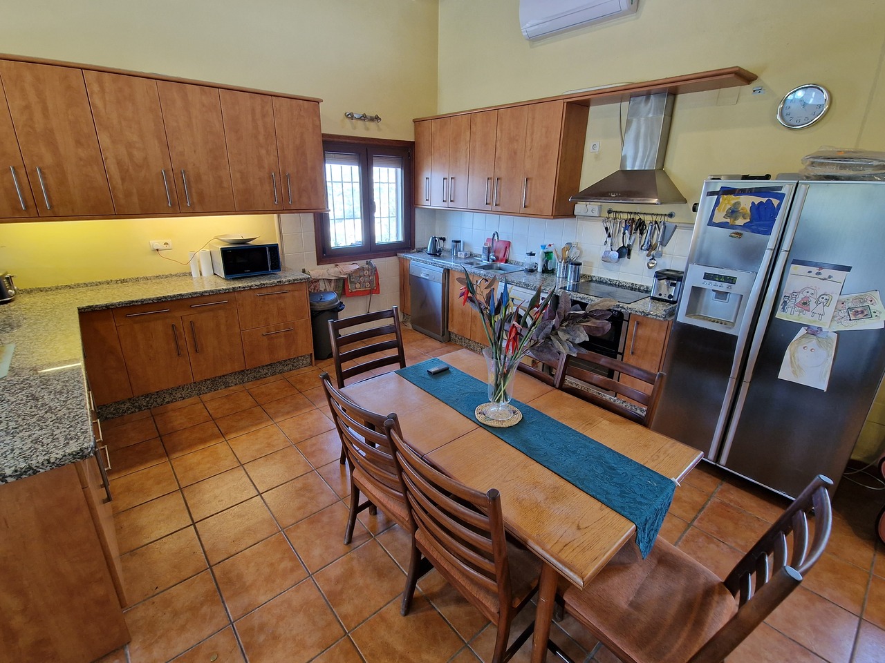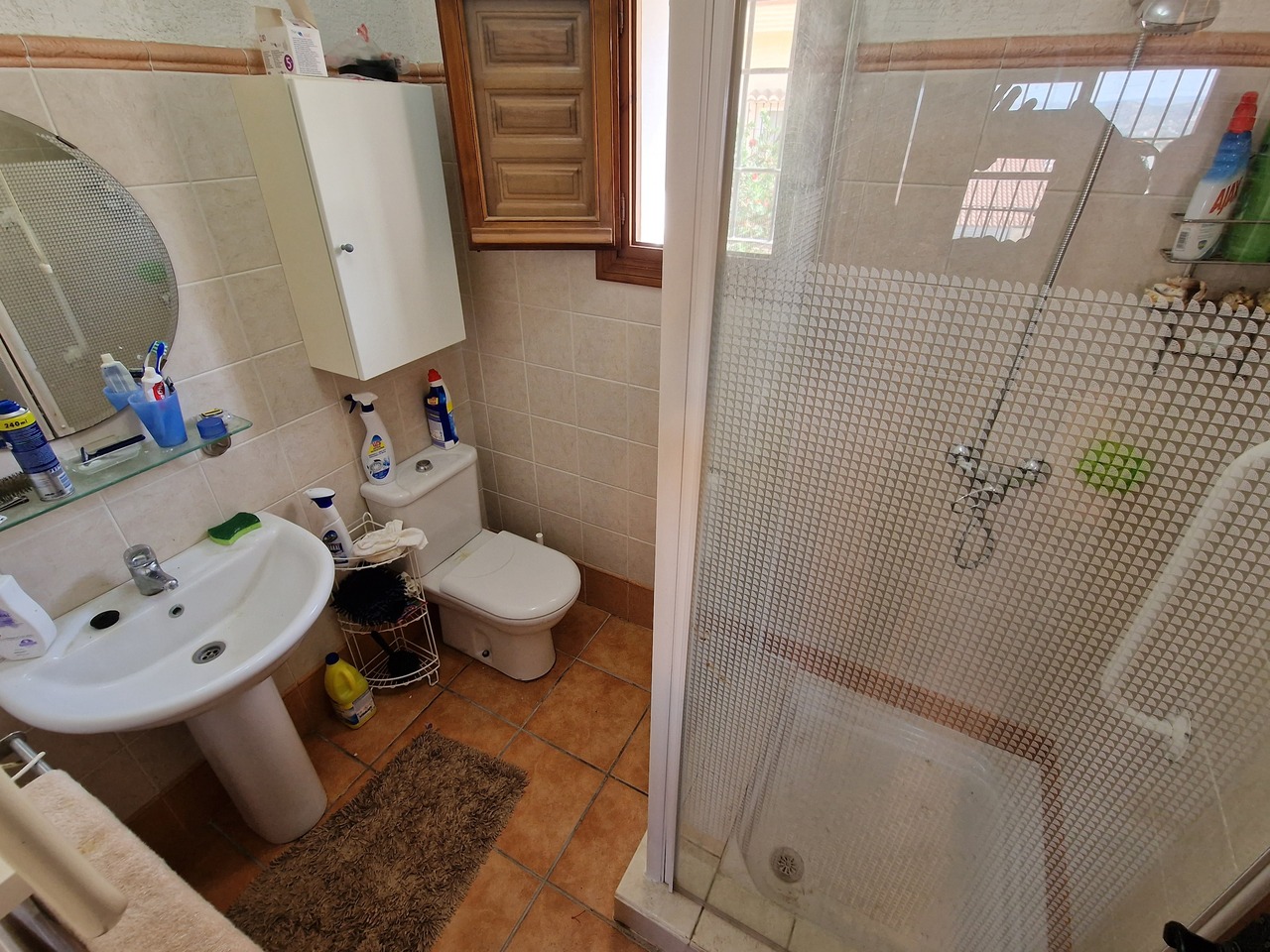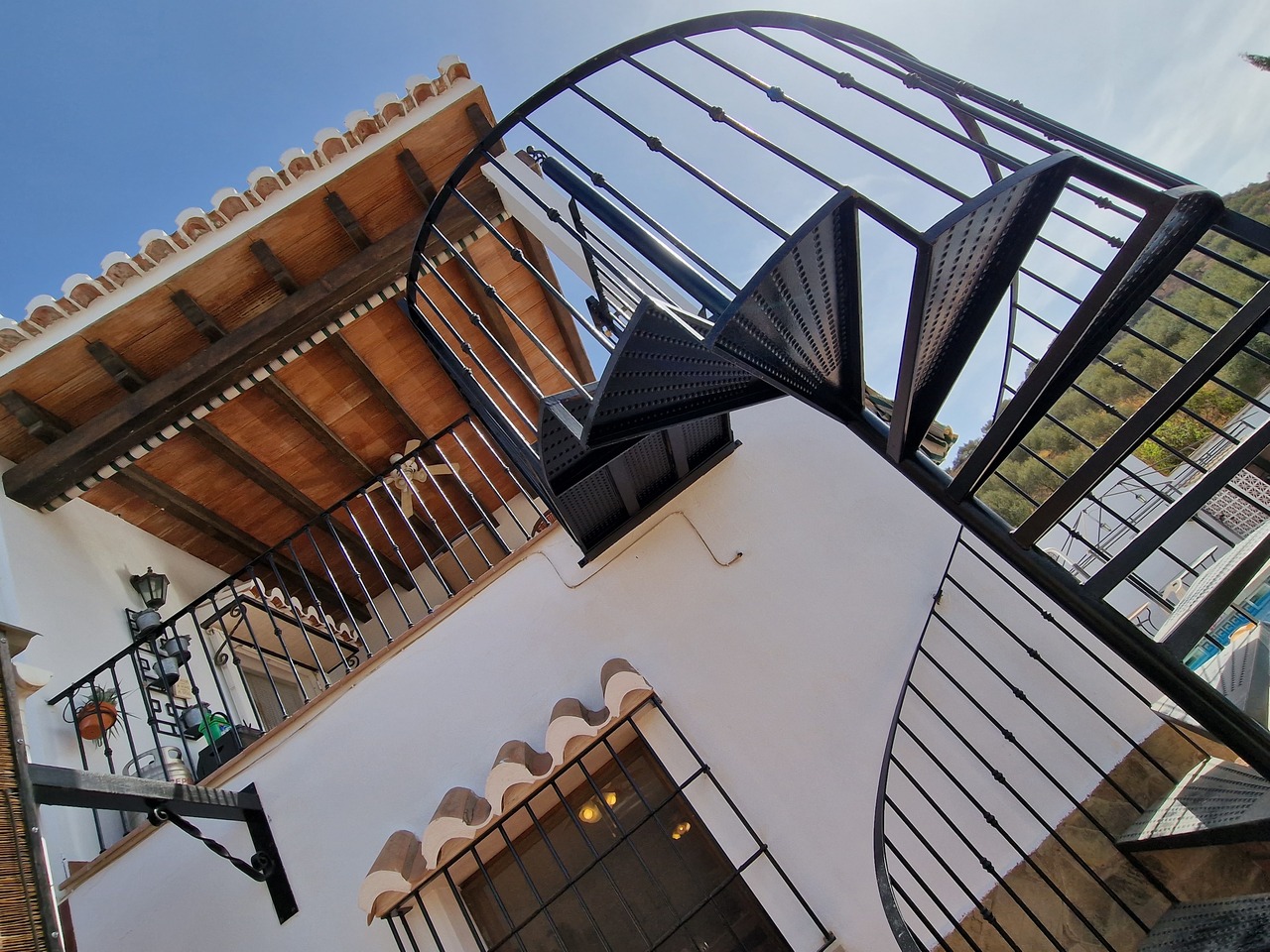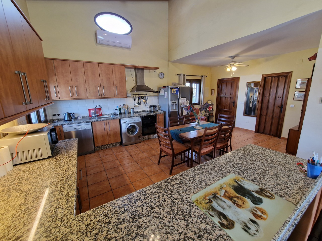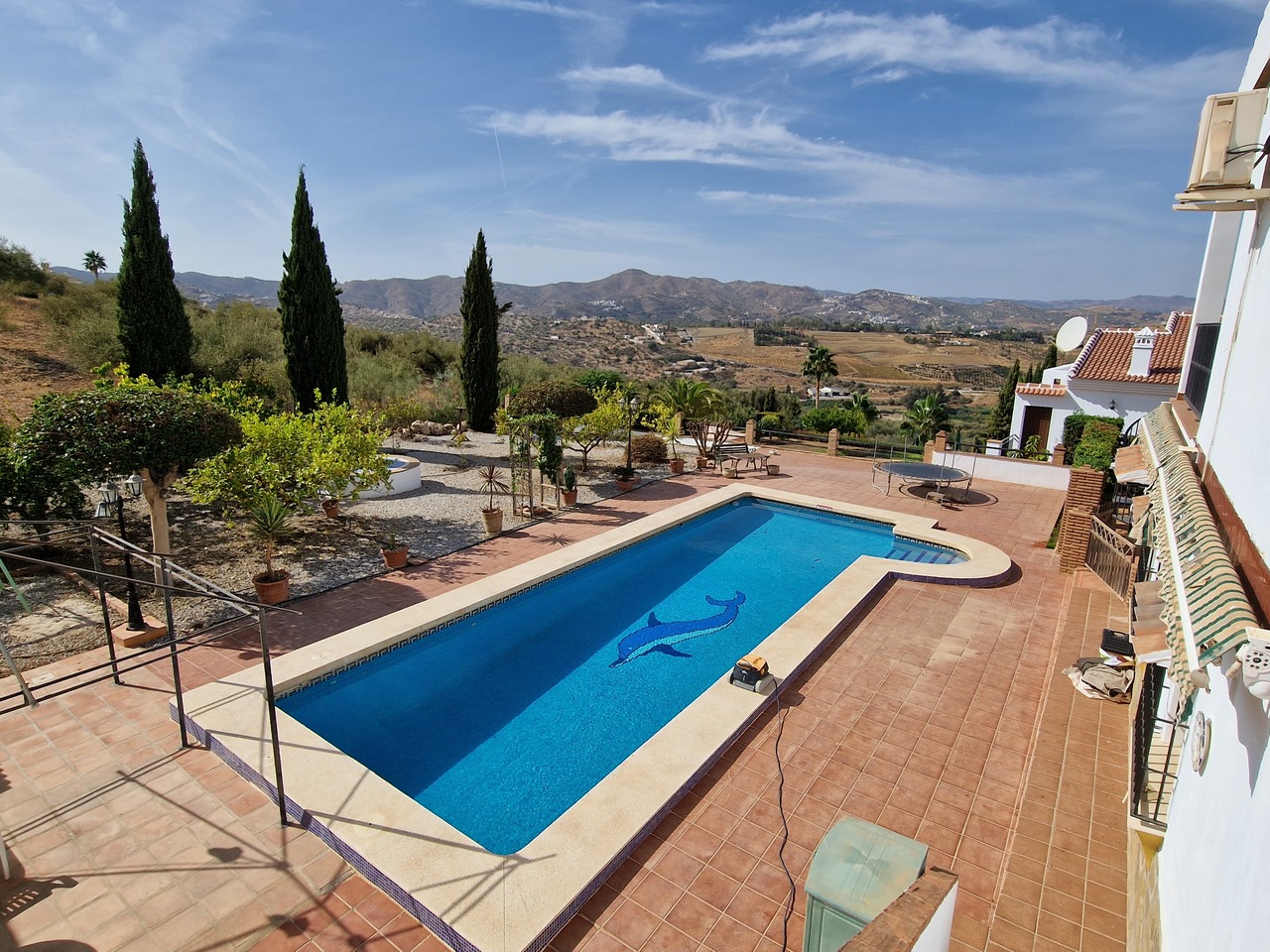 Cortijo Linea sits at the top of a small urbanisation, within walking distance to the local village of Vinuela with all of its shops, bars and amenities. The plot is walled and gated at the front and there is off road parking for several cars, a double car port and a garage. The plot is made up of terraces, seating areas, a fully irrigated garden area and a large 15m pool with roman steps and a pool side shower. The house comprises of a small entrance porch that leads into a large open plan kitchen/lounge area with a vaulted and beamed ceiling. The kitchen has plenty of units and a granite worktop and the lounge has AC, ceiling fans and a double wooden door out onto a terrace. There are 3 double size bedrooms on this upper level with fans and AC units. The master bedroom has an en suite shower room and also a walk in wardrobe. On the lower level there is a separate living area with a kitchen, lounge, 2 double size bedrooms and 1 bathroom and 1 shower room. Cortijo Linea would be perfect for somebody looking for a large property with separate living area and close to amenities.