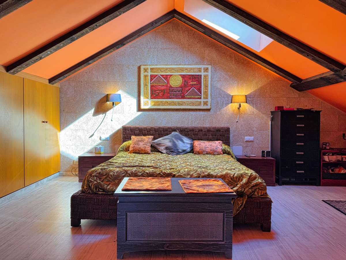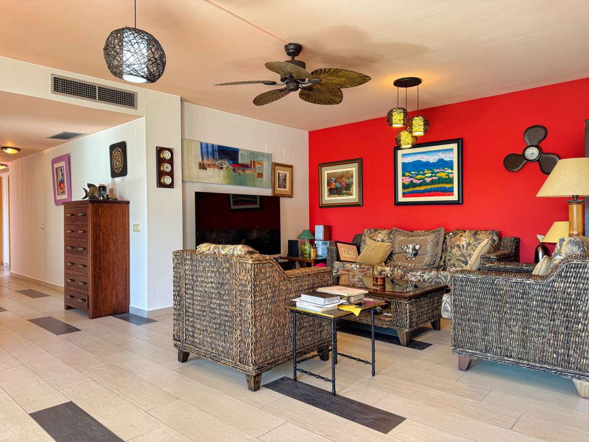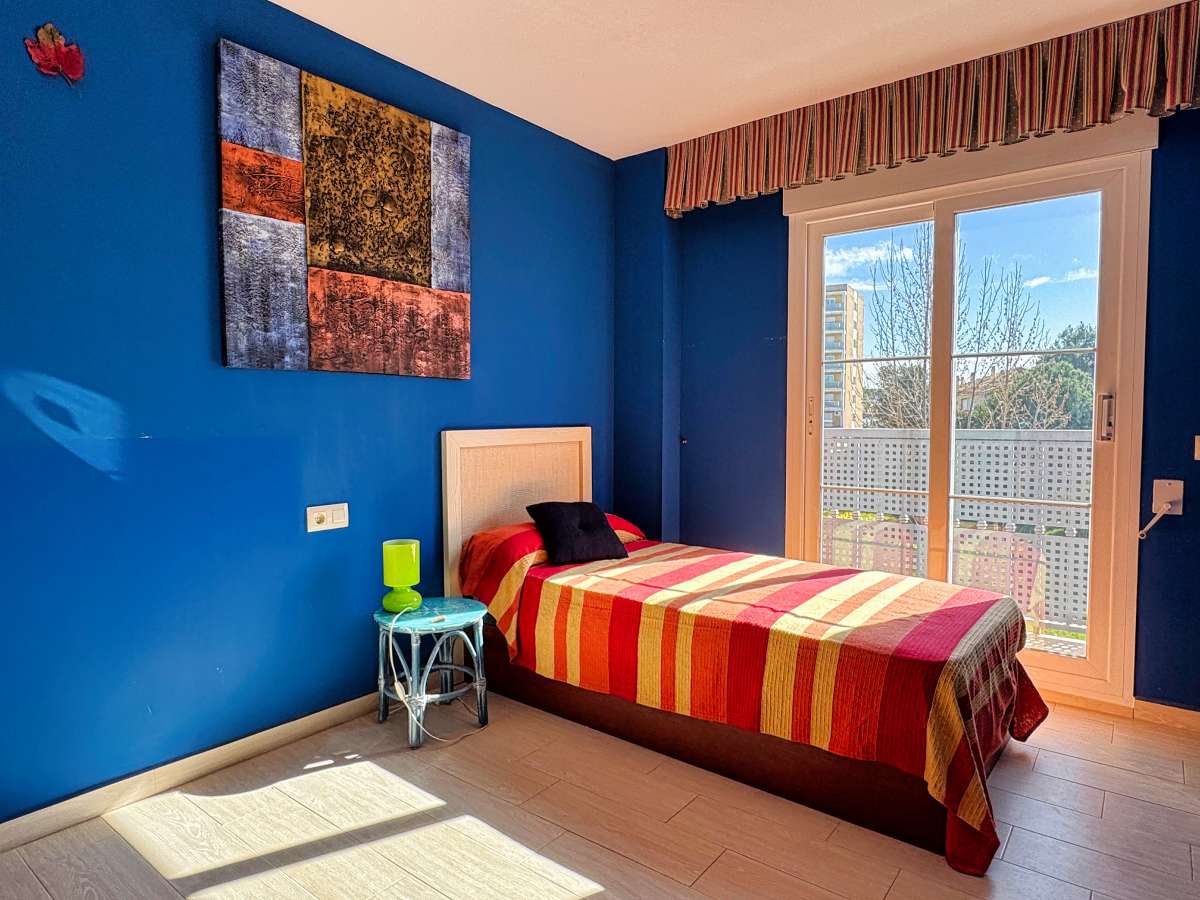Incredible duplex penthouse located in a well-maintained residential complex in Montañar I, just a short walk from Arenal beach in Jávea. The development offers excellent amenities, including a swimming pool, landscaped gardens, and a children's play area.The property is distributed over two levels. The main floor features an inviting entrance hall that leads to a spacious, bright living/dining area, which opens onto a south-facing glazed terrace with beautiful views of the Canal. The independent kitchen is fully equipped, and there are two bedrooms, each with built-in wardrobes, and two bathrooms—one of which is en-suite.Upstairs, an internal staircase leads to a large, private space with a master bedroom, a full bathroom, a cozy fireplace, and a spectacular terrace/solarium of around 30 m², offering panoramic views to the north and south.Additional features include hot/cold air conditioning throughout the bedrooms, a double parking space, a storage room in the basement, and an elevator for easy access.