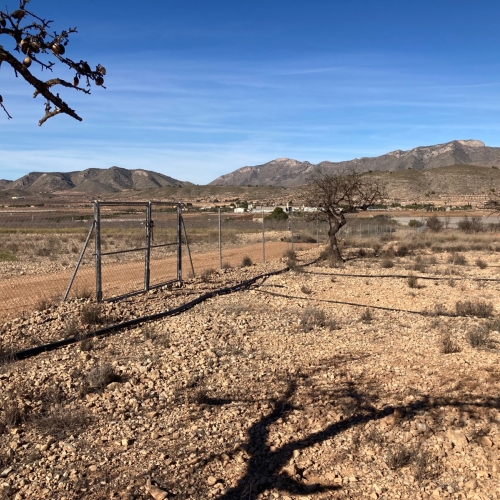 Magnificent plot in Hondon de las Nieves. The plot is largely fenced and offers panoramic views of the mountains and surrounding area. It is connected to the riego.
