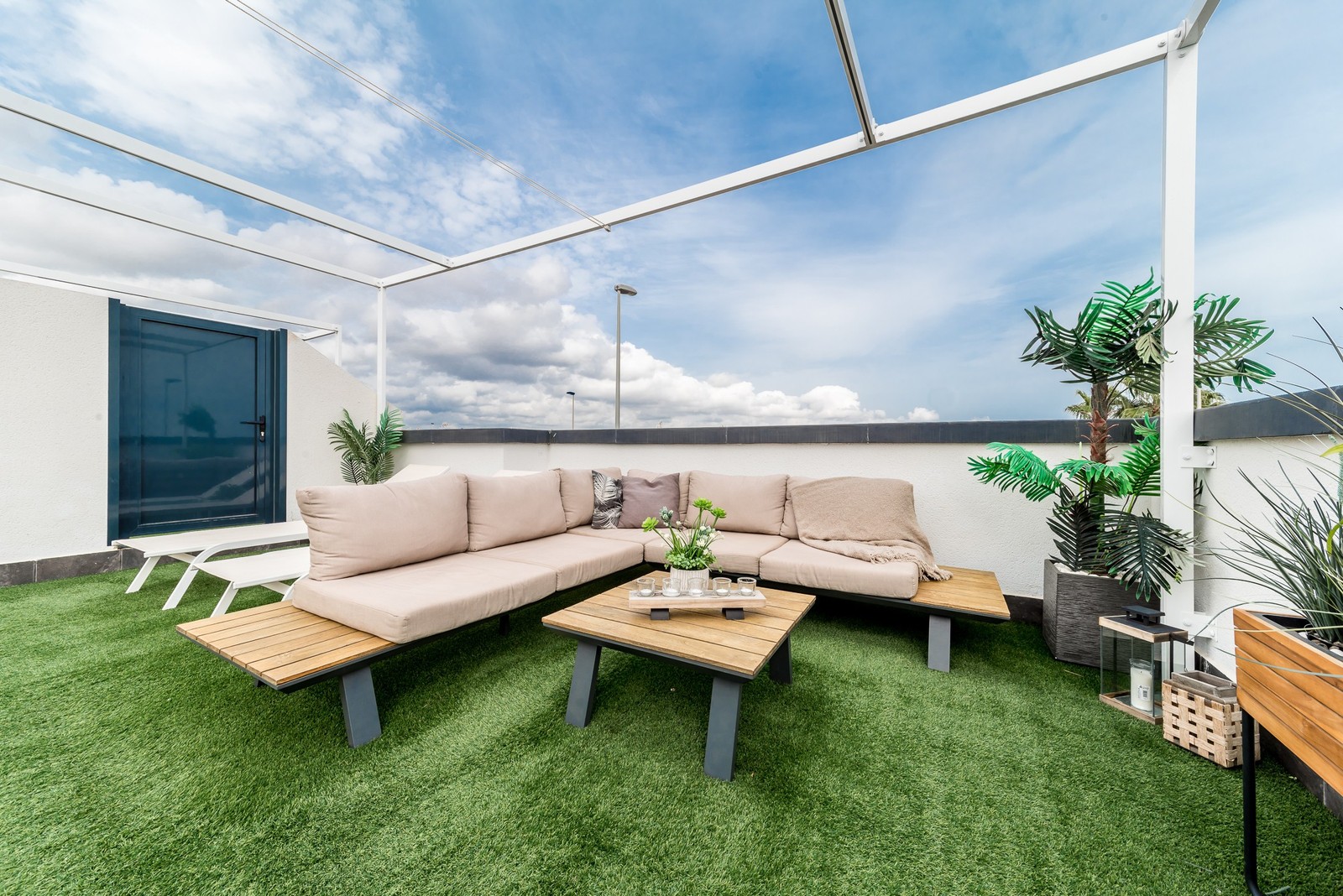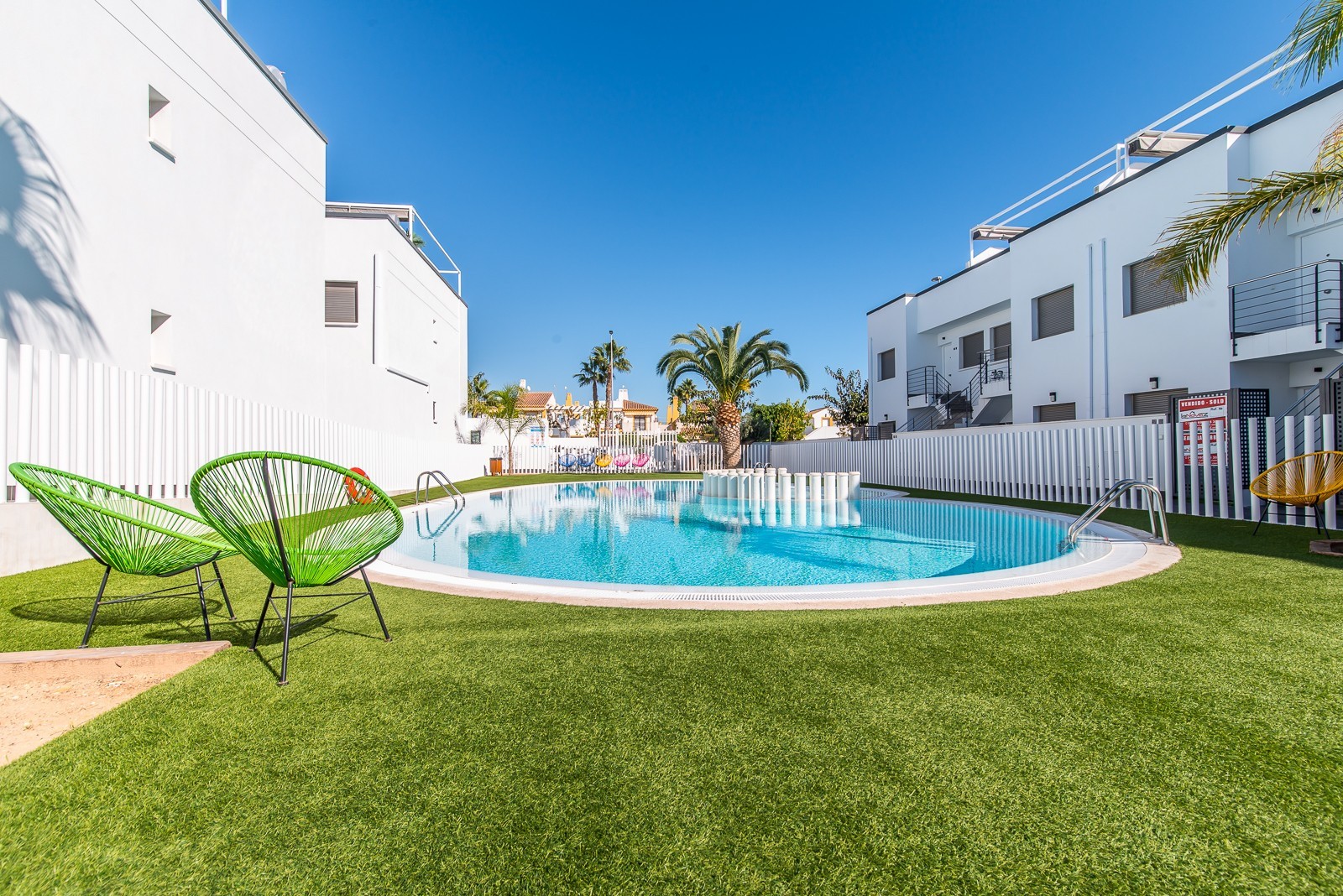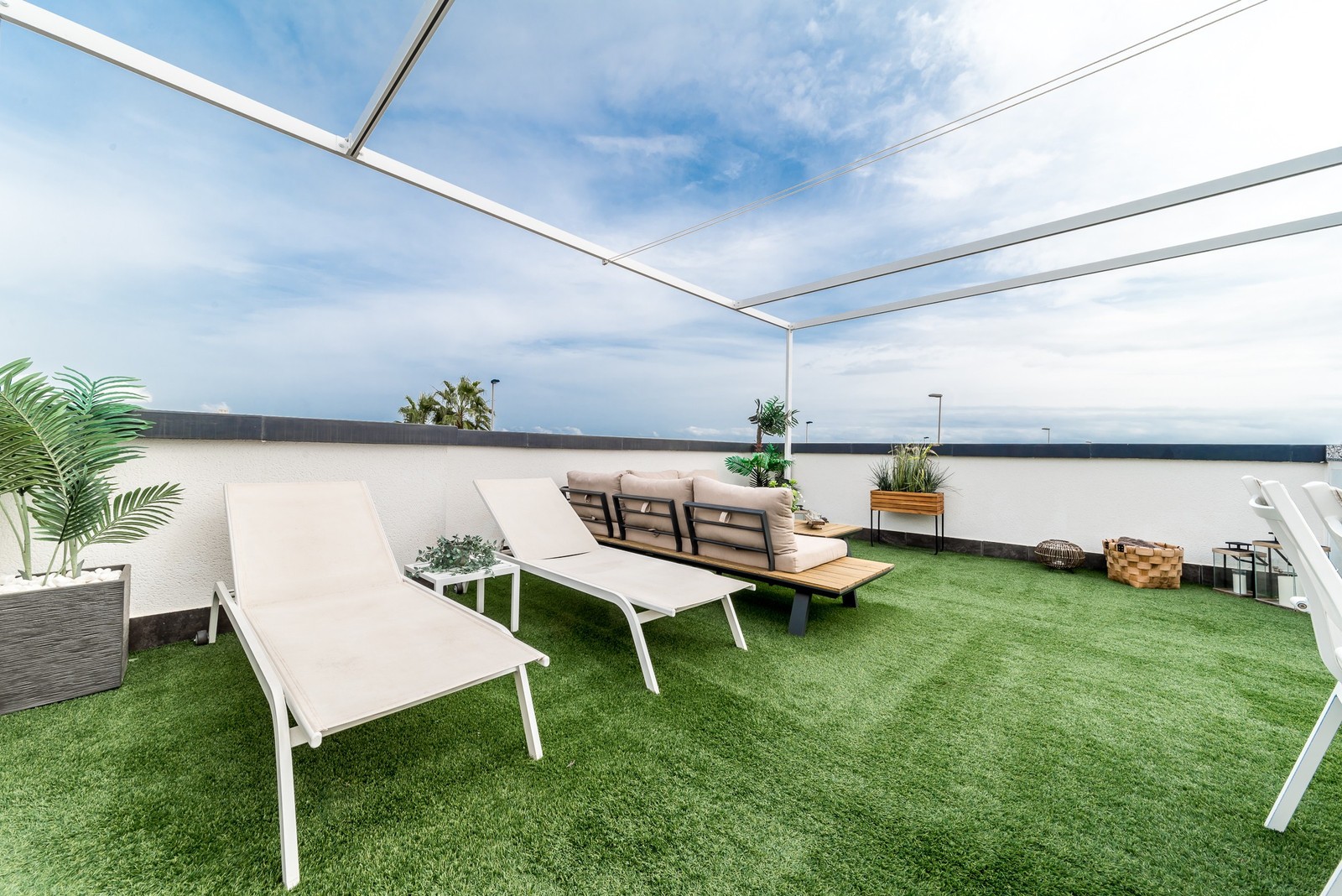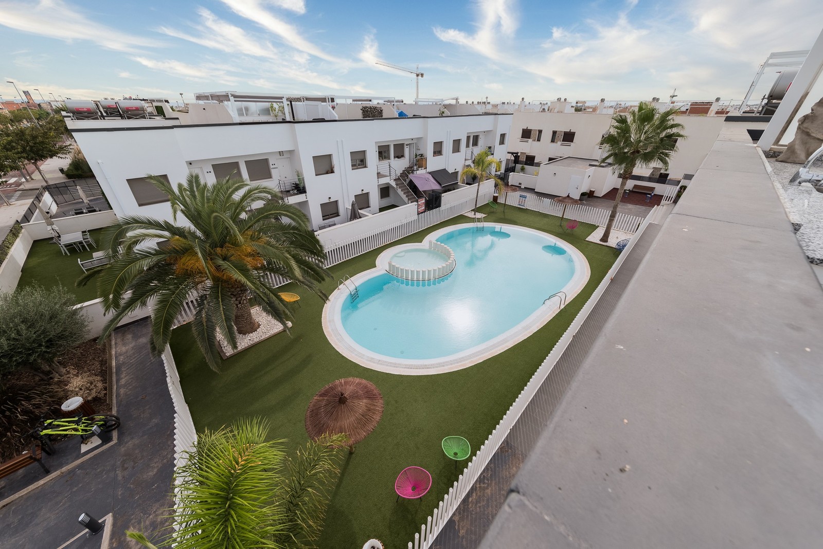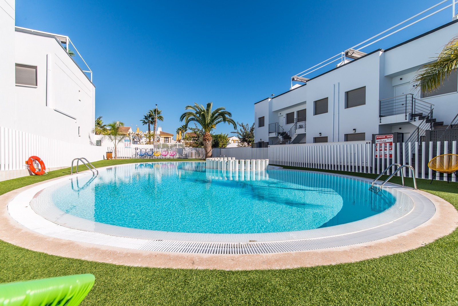 This beautiful corner apartment of 51 m² on the second floor (nr. 16) offers an impressive rooftop terrace with sea views and a clear sight down to the pool area. The apartment has two bedrooms, one bathroom, and is fully furnished with new, modern furniture. There is space for a total of seven sleeping places – two double beds, one single bed, and a sofa bed in the living room. The rooftop terrace is equipped with a complete outdoor kitchen, grill, pergola, and sun shading, perfect for lazy summer days or festive gatherings. Most of the furniture can be included by agreement with the seller. The complex also features a family-friendly pool and a paddle court, providing great opportunities for both activity and relaxation. Location: The apartment is located 500 meters from the beach in the charming fishing village of Pilar de La Horadada, south of Torrevieja. Here, you can explore small, cozy restaurants along the beach, and the grocery store is only 200 meters away. For golf enthusiasts, there are several exclusive golf courses nearby, including Villamartin Golf (10 minutes by car) and an additional seven courses within a short drive, such as Las Ramblas, Campoamor, Las Colinas, and Lo Romero. The distance to airports is convenient – only 25 minutes to San Javier Airport and 40 minutes to Alicante Airport (El Altet). Climate: The area has more than 300 sunny days per year, with a pleasant microclimate that provides mild winters and warm summers. The World Health Organization has classified Costa Blanca as one of the healthiest places in the world to live. Additionally, there is proximity to some of the best marinas in Torrevieja, Cabo Roig, and Campoamor, perfect for those who love sailing and diving. Extra opportunity: The neighboring apartment (nr. 14) is also for sale, which opens up the possibility to ensure that friends or family can be your neighbors. Another option is to buy both apartments as an investment opportunity with potential for value appreciation. Additional information: It is possible to purchase a garage separately for 20,000 euros. The garage is 28.23 m² and has an electric garage door opener as well as a loft providing good storage space. This is an ideal investment whether you are looking for a vacation home or a permanent residence on the Costa Blanca. Contact us today to schedule a viewing!