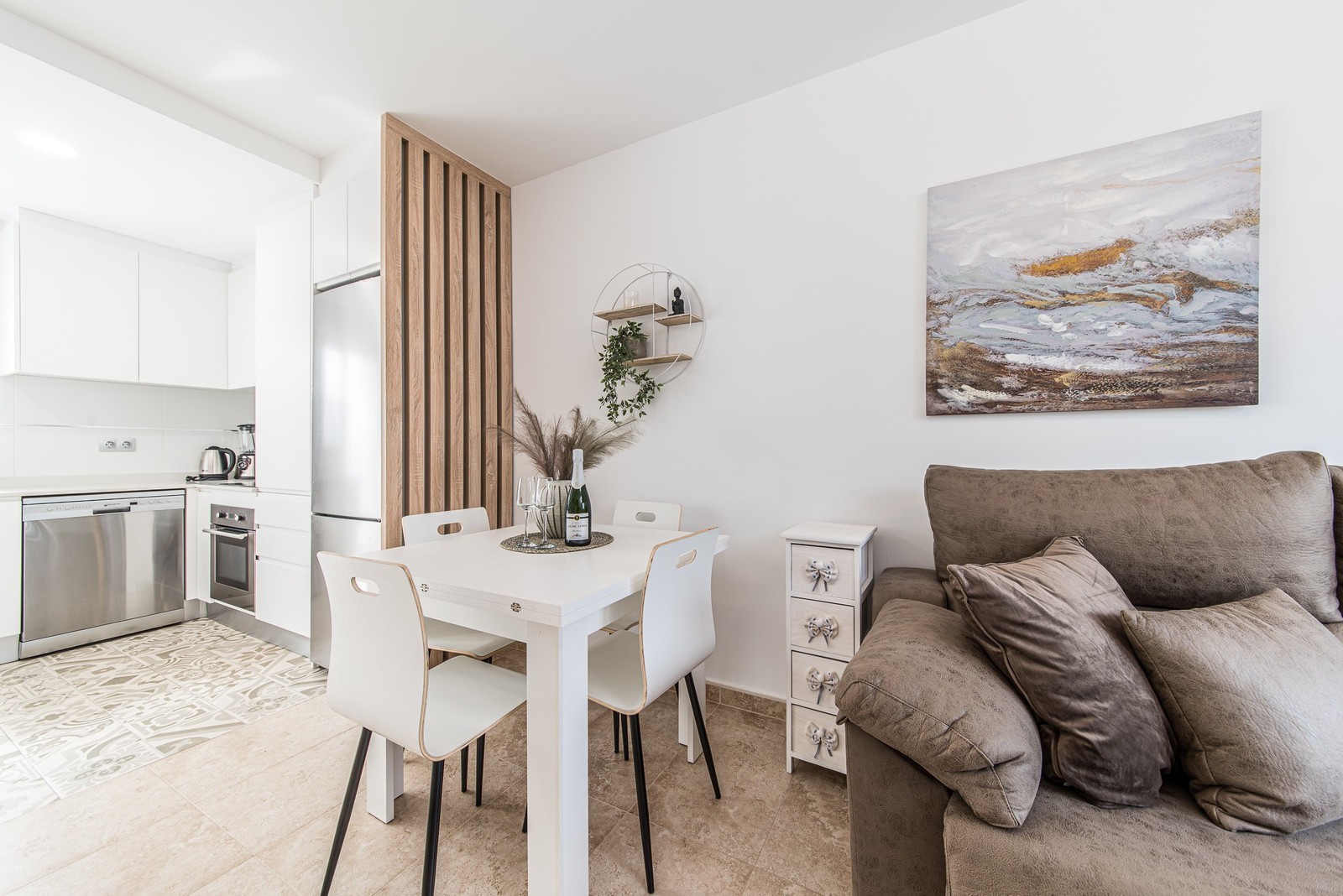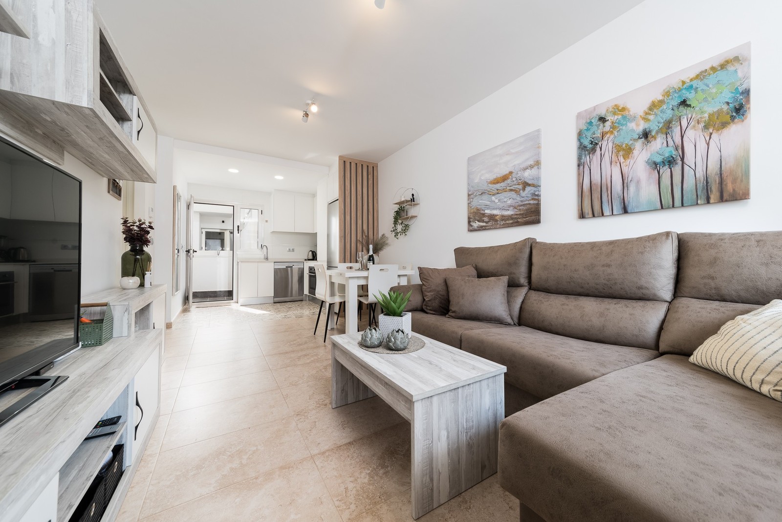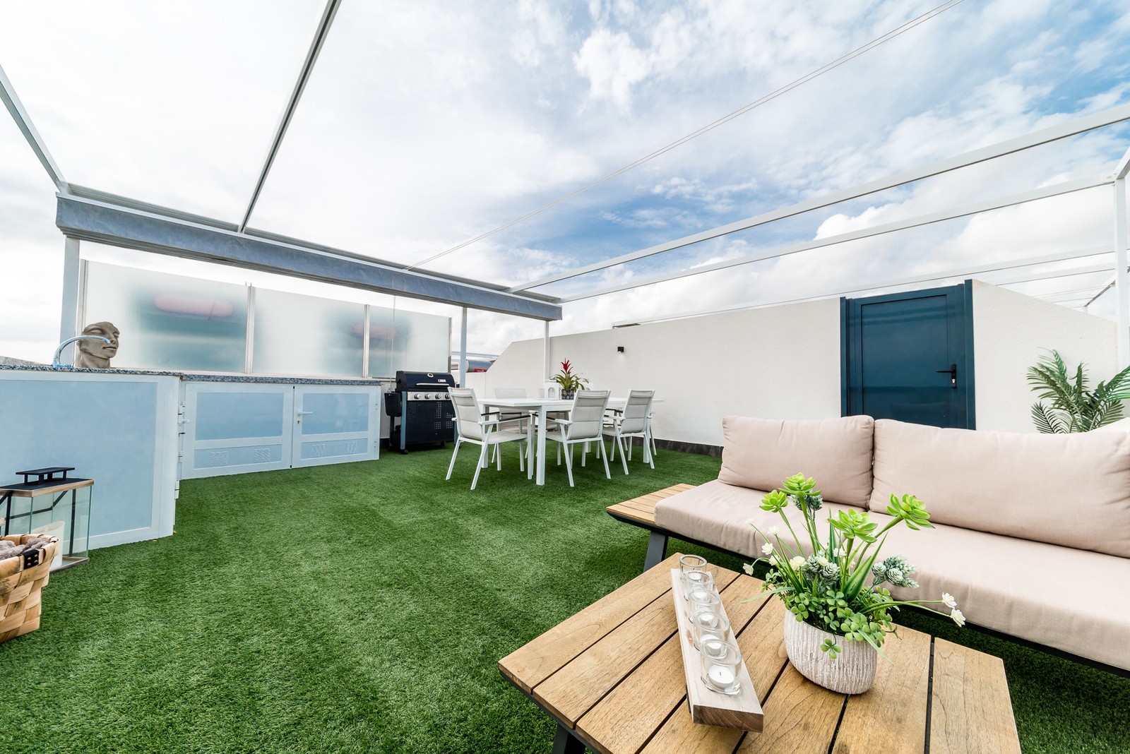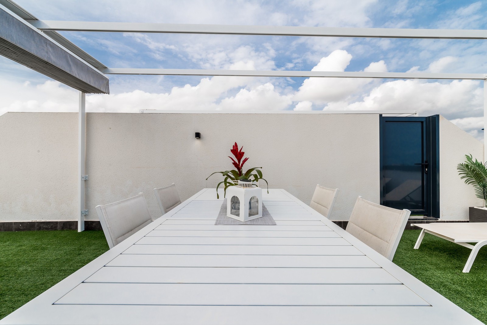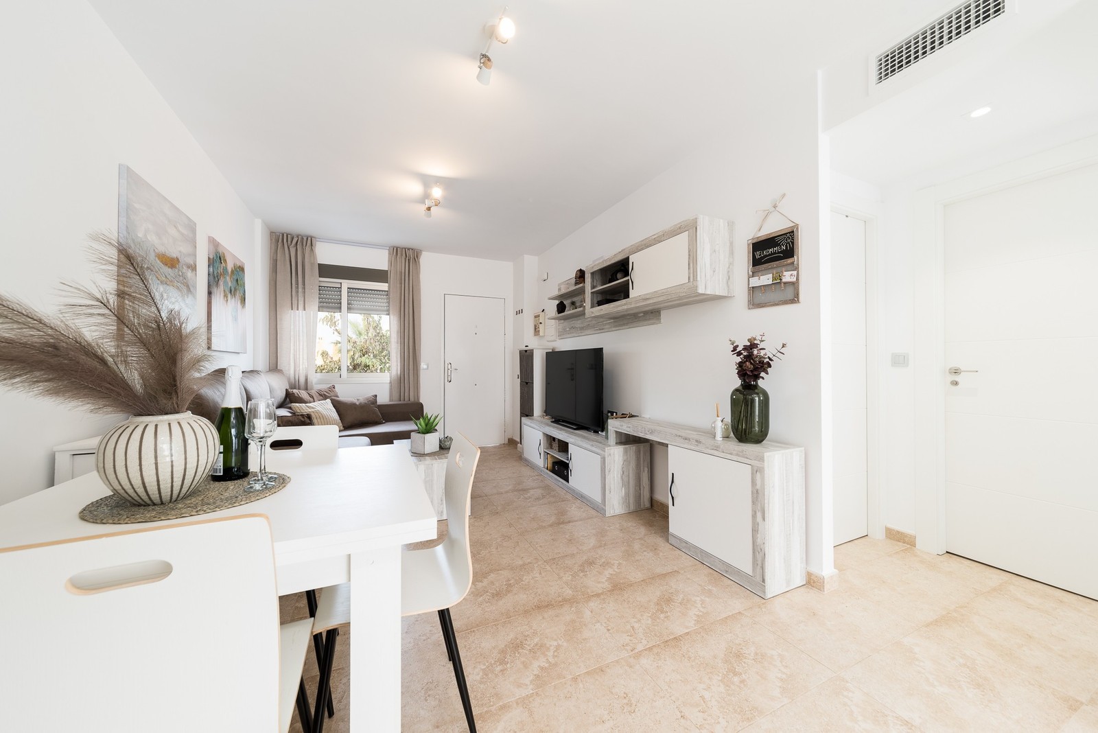 This beautiful corner apartment of 51 m² on the second floor (nr. 16) offers an impressive rooftop terrace with sea views and a clear sight down to the pool area. The apartment has two bedrooms, one bathroom, and is fully furnished with new, modern furniture. There is space for a total of seven sleeping places – two double beds, one single bed, and a sofa bed in the living room. The rooftop terrace is equipped with a complete outdoor kitchen, grill, pergola, and sun shading, perfect for lazy summer days or festive gatherings. Most of the furniture can be included by agreement with the seller. The complex also features a family-friendly pool and a paddle court, providing great opportunities for both activity and relaxation. Location: The apartment is located 500 meters from the beach in the charming fishing village of Pilar de La Horadada, south of Torrevieja. Here, you can explore small, cozy restaurants along the beach, and the grocery store is only 200 meters away. For golf enthusiasts, there are several exclusive golf courses nearby, including Villamartin Golf (10 minutes by car) and an additional seven courses within a short drive, such as Las Ramblas, Campoamor, Las Colinas, and Lo Romero. The distance to airports is convenient – only 25 minutes to San Javier Airport and 40 minutes to Alicante Airport (El Altet). Climate: The area has more than 300 sunny days per year, with a pleasant microclimate that provides mild winters and warm summers. The World Health Organization has classified Costa Blanca as one of the healthiest places in the world to live. Additionally, there is proximity to some of the best marinas in Torrevieja, Cabo Roig, and Campoamor, perfect for those who love sailing and diving. Extra opportunity: The neighboring apartment (nr. 14) is also for sale, which opens up the possibility to ensure that friends or family can be your neighbors. Another option is to buy both apartments as an investment opportunity with potential for value appreciation. Additional information: It is possible to purchase a garage separately for 20,000 euros. The garage is 28.23 m² and has an electric garage door opener as well as a loft providing good storage space. This is an ideal investment whether you are looking for a vacation home or a permanent residence on the Costa Blanca. Contact us today to schedule a viewing!