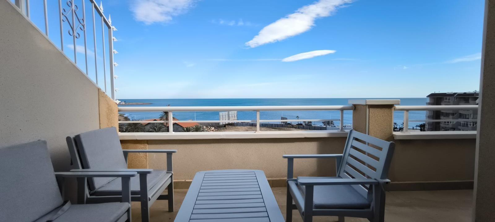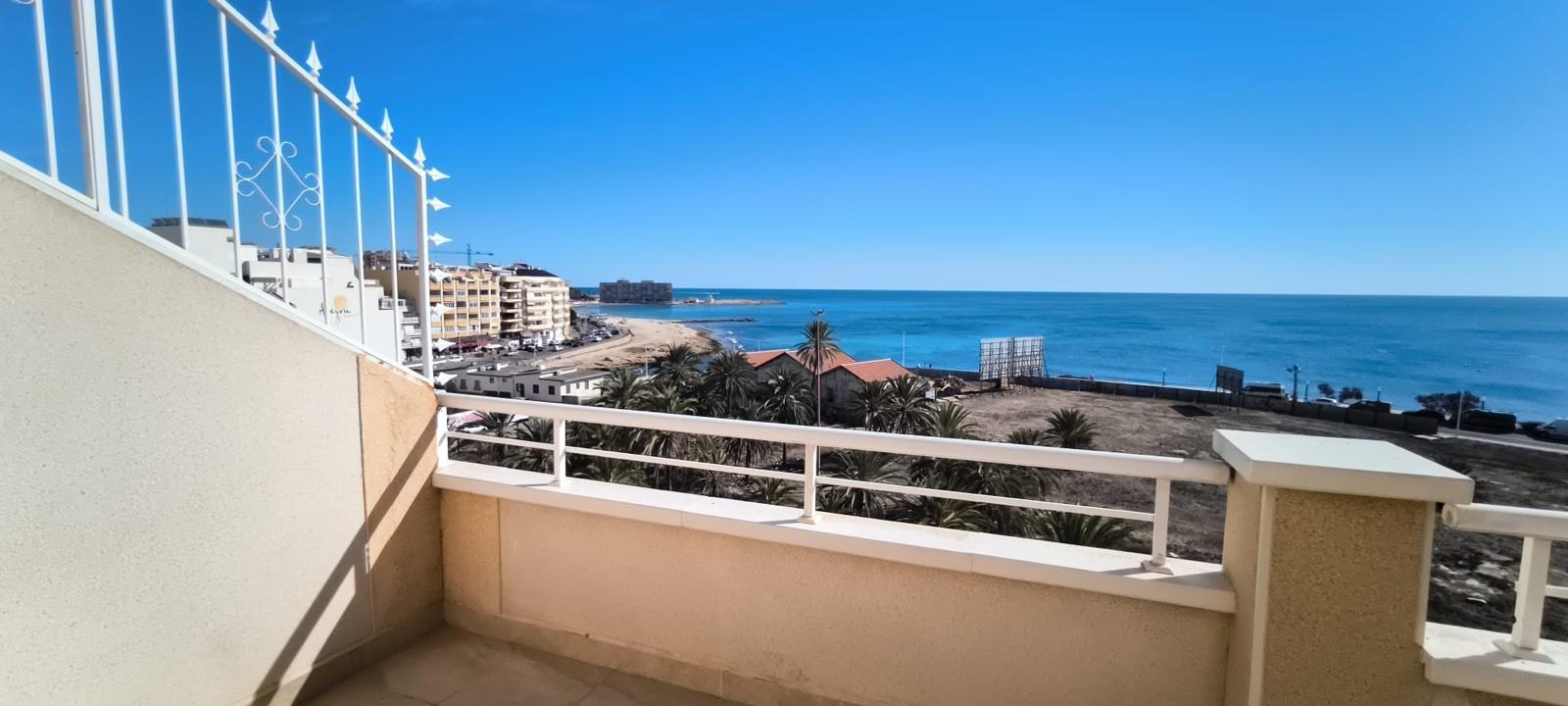 For sale this spectacular penthouse located on the very first line of Playa del Cura in Torrevieja. The property consists of 2 double bedrooms, 2 bathrooms, fully fitted and equipped semi-independent kitchen, spacious living-dining room with access to a spacious terrace with sea views and a large private solarium of 42 m2. The property is sold fully furnished and equipped, ready to move into. Without a doubt, this property will not leave anyone indifferent. Shall we schedule your visit?