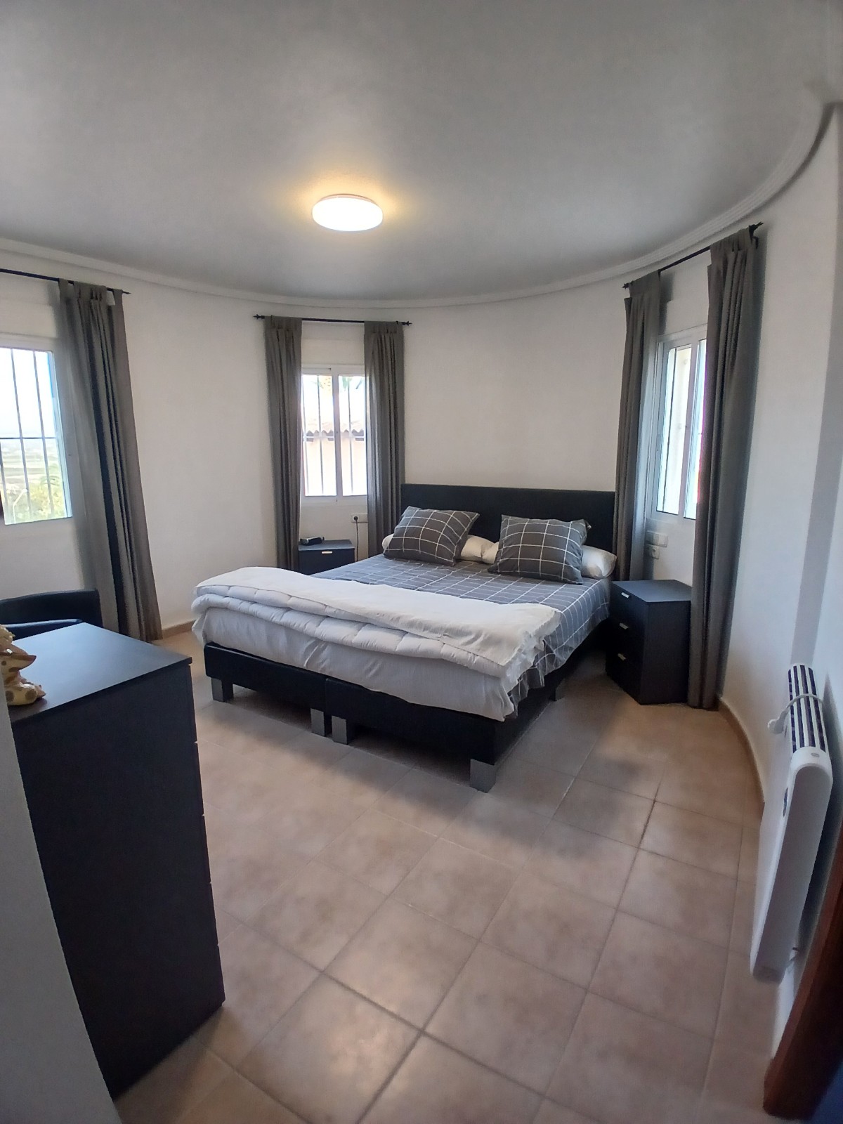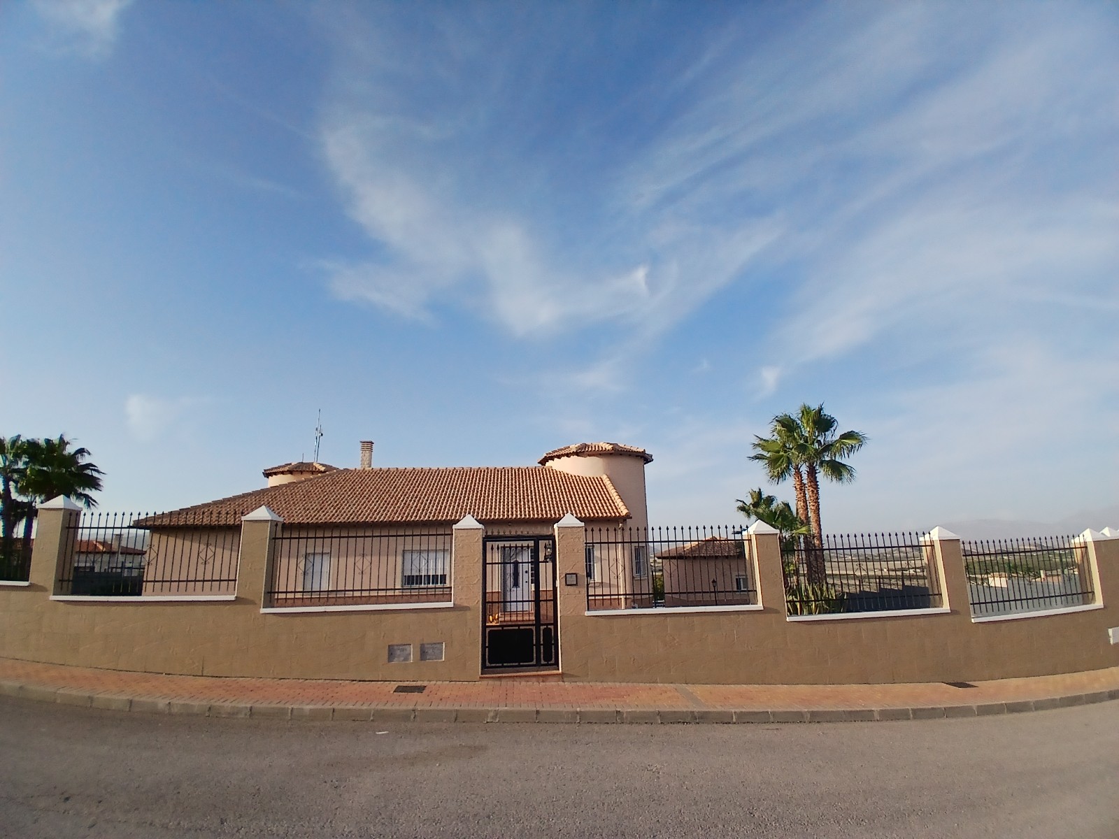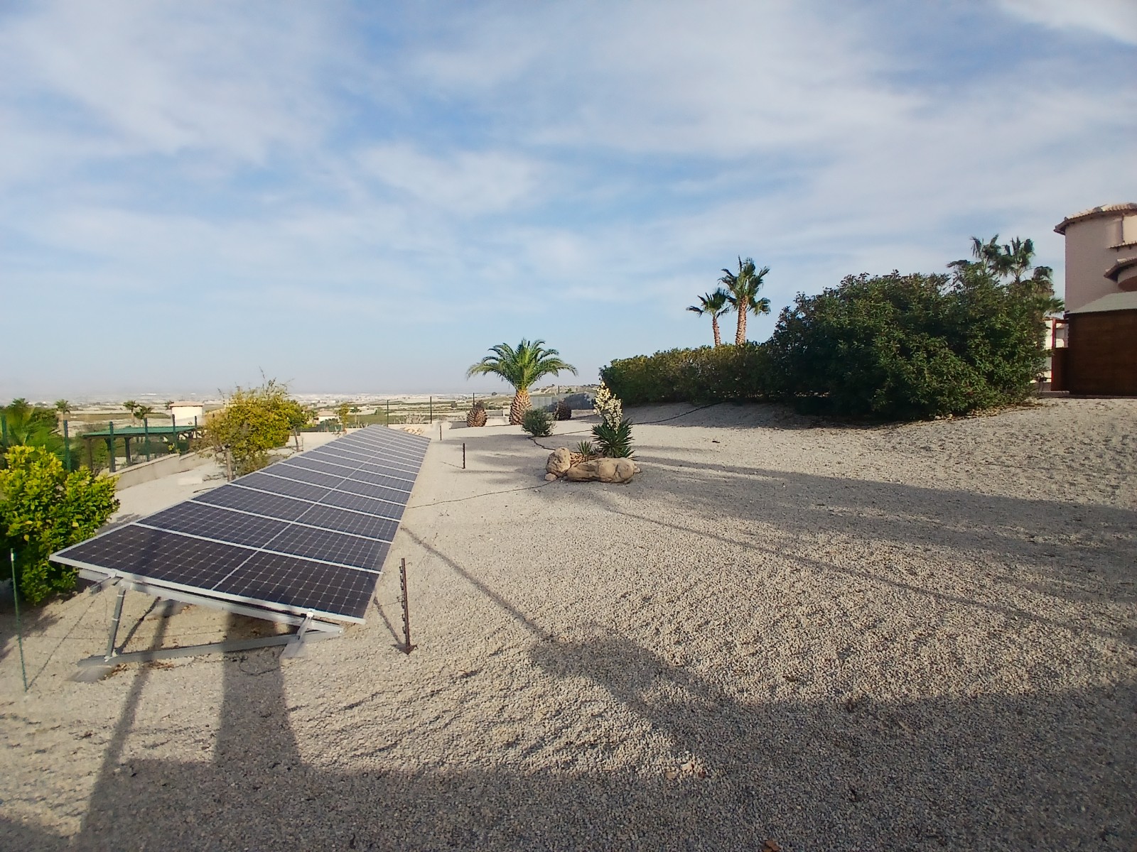 Beautiful detached villa in urbanization in Campos del Rio. In the urbanization of +/- 50 houses live English, Dutch, Belgian, Spanish and French people. The plot of 2000m2 is fully fenced and you have beautiful views of the mountains. You can enter the house through the front door or back door. At the back you enter the house by stairs to a large porch from where you can see the pool and enjoy the view. You then enter the house into the spacious living-dining room of 52.8m2, heated via an 8kw pallet stove installed in December 2023. There is also a gas fireplace, however the gas connection is currently disconnected, this can of course be reconnected. The Formas Cocinas open kitchen of 7.85m2 was installed in February 2023 and is equipped with an oven, microwave, eye-level Siemens dishwasher and large Siemens refrigerator. There are also 3 bedrooms (13.37m2, 13.58m2 and 15.56m2), the largest bedroom has a private bathroom of 6.8m2. The bedrooms have custom-made closets, these remain. There is also a 2nd bathroom with bath of 7.54m2. In the hall by the front door there are also 2 large custom-made wardrobes, these also remain. Next to the pool is a pool house with bar, here is another bathroom, so you don't have to walk through the house with your wet swimwear. Adjacent you will find the in June 2024 newly installed pergola with aluminum slats so you can sit in the shade by the pool. The pool itself was retiled in May 2024 and new lighting was installed. In April 2023, the current owner also had a 35m2 garage built in the same style as the house. You can thus put your car/motorbike/bikes inside.Furthermore, a wooden garden shed of 9m2 for extra storage space was installed in June 2024. The house is powered by 16x 420 watt solar panels with Huawei inverter which were installed in July 2023. The energy costs are therefore only 28 euros per month. The entire house is equipped with air conditioning, double glazing, mosquito nets (May 2023), (mostly electric) shutters, decorative grills (May 2023) and electric heaters. The house is being sold unfurnished. There are no urbanization fees.
