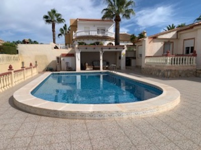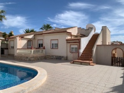 For sale: beautiful 3 bedroom villa in the sought after area of San Luis, Torrevieja. This property features a spacious kitchen, a cozy living room, and a separate dining room. Enjoy the luxery of a private 10x5 meter swimming pool, perfect for relaxing and cooling off. The 800 m2 plot offers ample outdoor space, ideal for gardening, sunbathing or outdoors activities. Situated in a quit and popular area, close to amenities such as shops, restaurants and beaches. Perfect as a permanent home or holiday home!