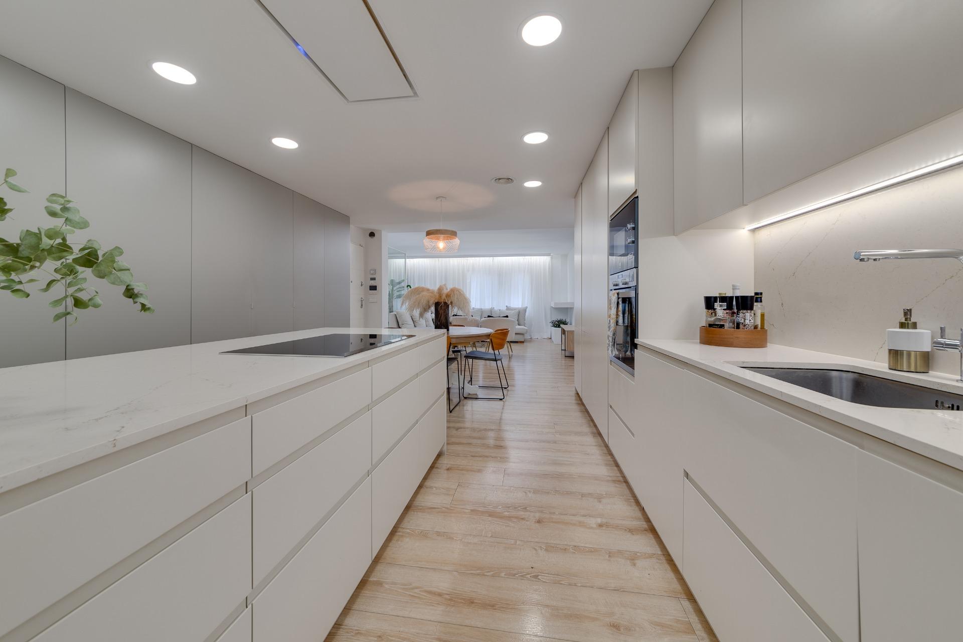 This apartment is a dream that can become a reality! It couldn't be more beautiful! This property offers you comfort and style. The property is distributed in two floors. The house is accessed through the upper floor, main floor. In it you will find a bright living-dining room with a modern open kitchen with an island fully equipped, a toilet and a large bedroom with a dressing room and an en-suite bathroom. On the ground floor, you will enjoy a large living room and three other large bedrooms, one of them with an en-suite bathroom, as well as another additional bathroom. It also has a storage/laundry area and a charming patio with artificial grass, where you can enjoy and relax. Located in the center of Torrevieja, close to all the necessary services and just 200 meters from Playa del Cura. In addition, other beaches are a few minutes walk away, the promenade and different cultural monuments of the city. Don't miss this opportunity to live in this unique and wonderful house!