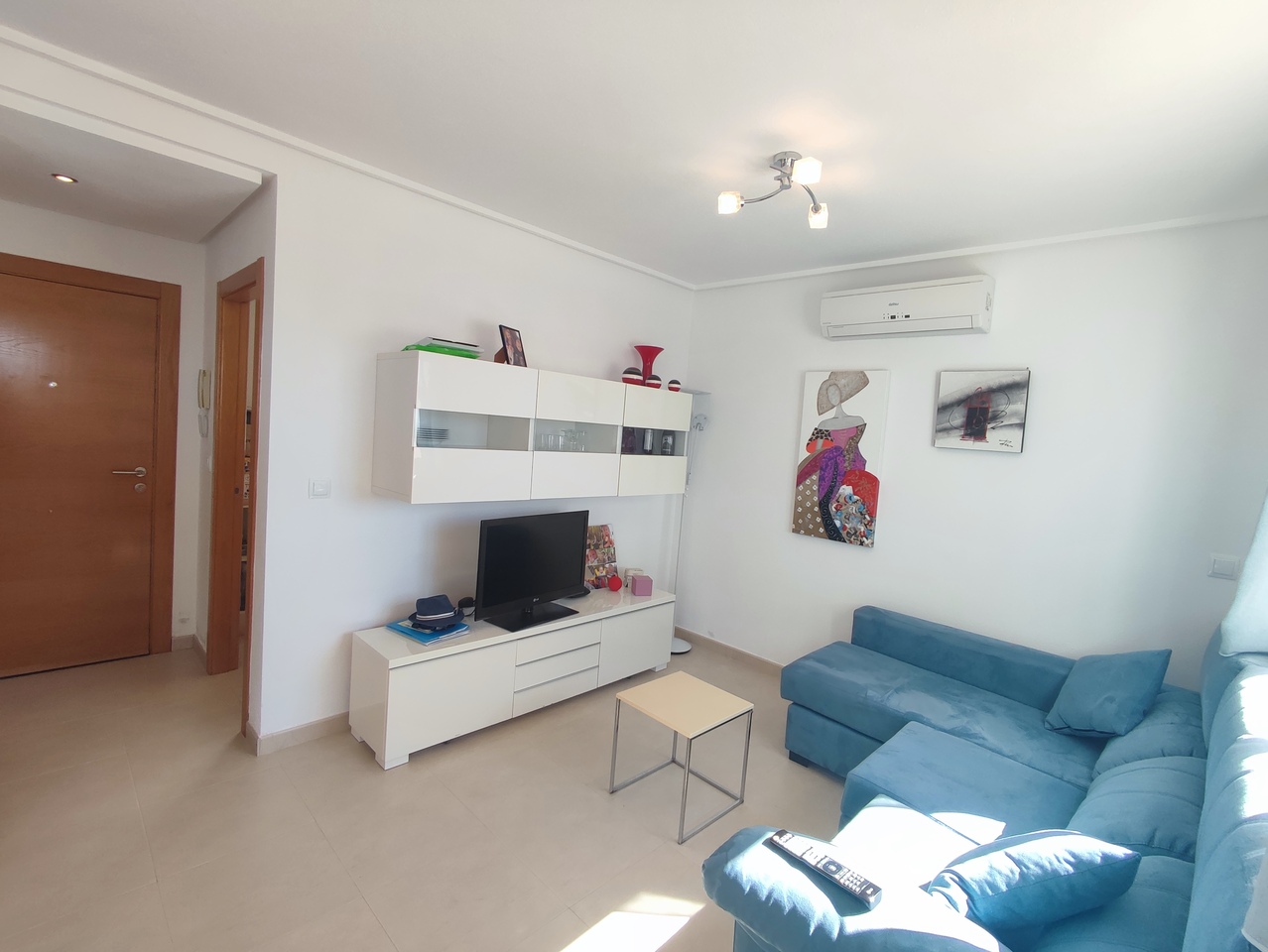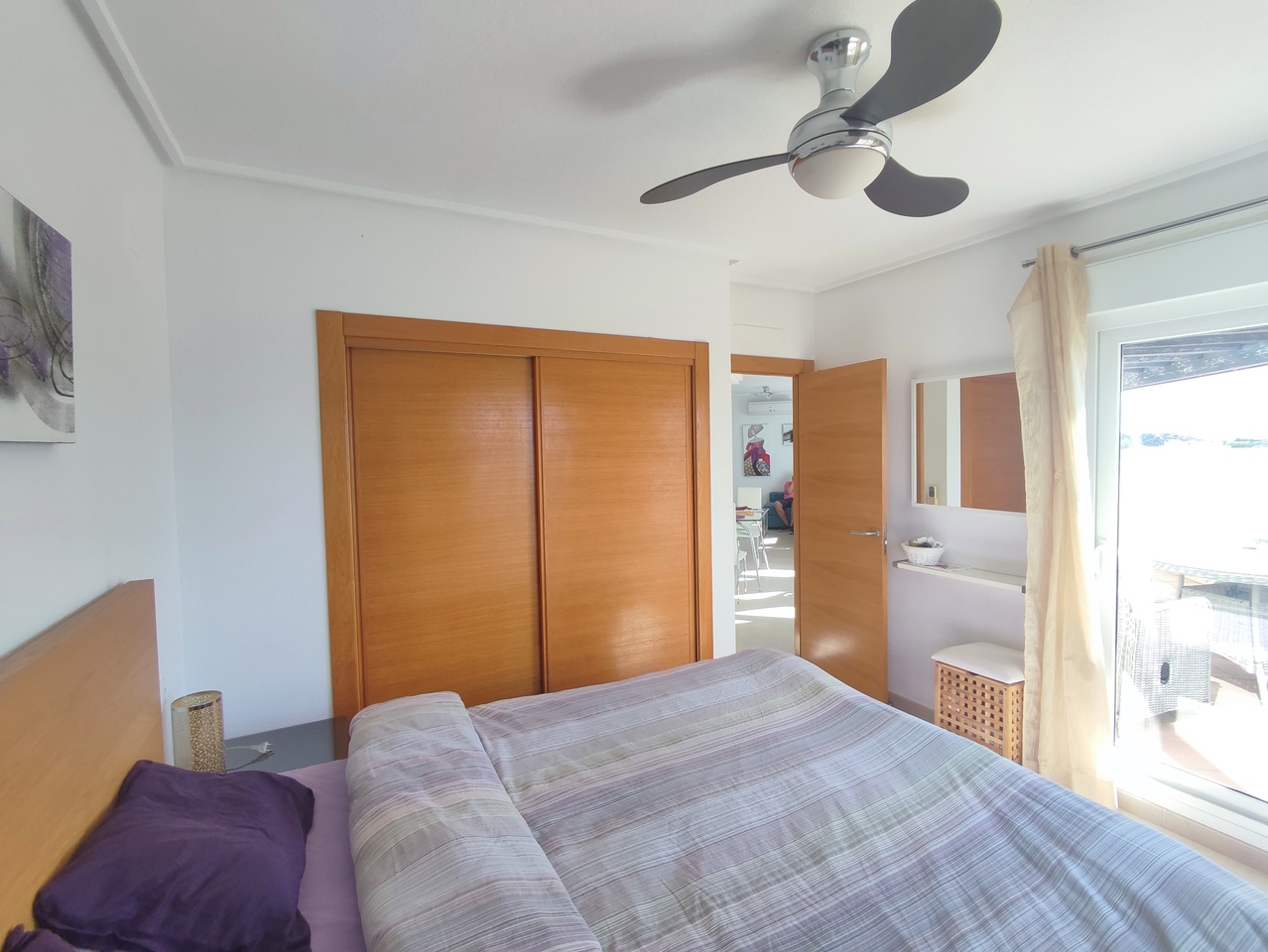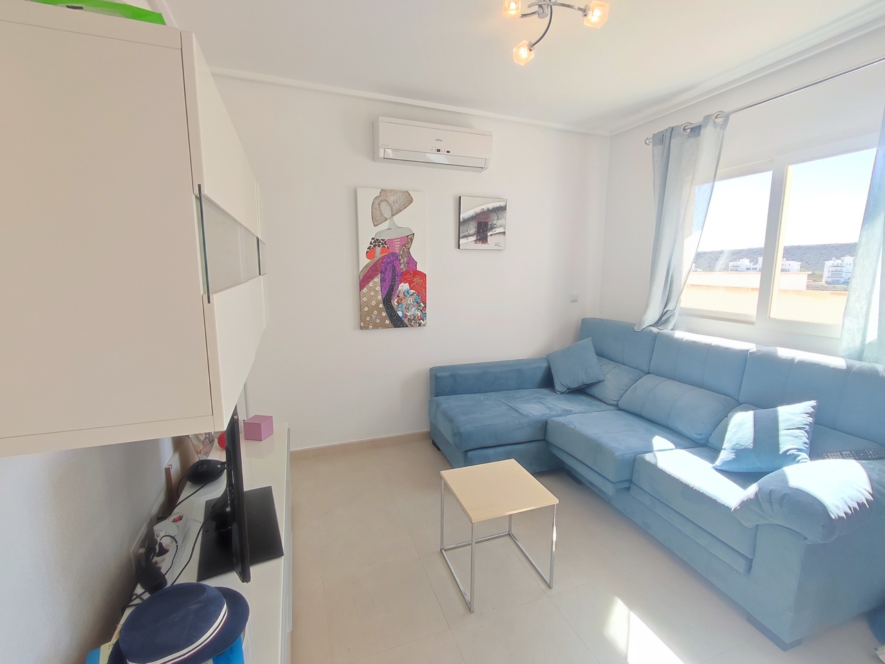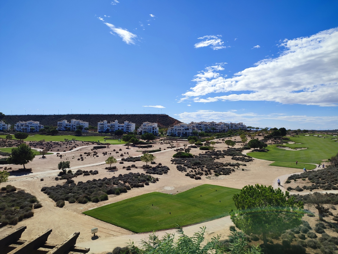 This penthouse has stunning views of the golf, lake and gardens. The long terrace is south west facing and perfect to capture the sun and sunsets. A section has been covered in to create extra storage but could also be renovated into an outside kitchen.There is air conditioning in the main lounge and ceiling fans in the 2 bedrooms.The picture windows provide plenty of light in the main living area.This penthouse can be renovated into open plan, please ask for examples.The apartment is being sold furnished minus personal possessions, complete with a private underground parking space and would make an ideal second or permanent home.The first thing that impresses you about Hacienda Riquelme Golf Resort is the wide-open spaces, the extensive gardens and the low-density construction, which create a relaxing environment to enjoy a very safe and peaceful life or holiday. The apartments are set out spaciously around the magnificent and challenging 18 hole golf course part of the Jack Nicklaus Golf Trail.All apartments have unlimited internet, air-conditioning for summer and heating for winter, private underground parking space and a communal lift.In the heart of the resort you will find the beautiful renovated Hacienda where you will find a supermarket, clubhouse, restaurant and bar. The inner court yard becomes the hive of entertainment in the Summer, whilst the large terrace set in the stunning gardens is open all year for “al fesco” dining and drinking.Facilities:Gated Community.24 hour security."El Cason" Bar, Restaurant, Clubhouse.Supermarket.Summer Entertainment.19 large community swimming pools.Communal gardens.Trees, 5 lakes.Wild flowers & local wildlife.Driving range.Tennis courts.Paddle tennis courts.Football / Basketball court.Outside gym area.Children's play areas.Hacienda Riquelme is very well connected by the main motorways. Murcia Airport (20 mins)Mar Menor beaches (15 mins)Mediterranean beaches (20 mins)For those who like historical buildings, architecture or a desire to shop, the lovely cities of Murcia and Cartagena provide plenty of entertainment. Murcia (30 mins)Cartagena (45 mins) Murcia Airport (20 mins)Near to the bustling popular village of Sucina with shops, restaurants, bars, chemist, supermarket and lots more (5 minutes)For more information on the apartments available please contact us.