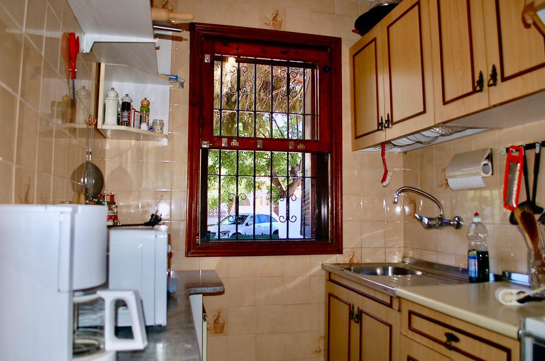 Only 50m from the sea you will find this Townhouse in Mil Palmeras, with 2 bedrooms and 2 bathrooms and separate studio/apartment. The ground floor contains a living room, a kitchen, a WC and a covered terrace. On the first floor two bedrooms, spacious bathroom and storage room. Apartment on the 2nd floor with separate kitchen, bathroom, bedroom and connecting terrace. With some refurbishment work, it could be updated into a modern home. Within walking distance of the charming pedestrian walkway 'la peseta' with its shops, bars and restaurants…. Playa Mil Palmeras, playa Jesuítas and playa del Conde with its marina, the new commercial center 'Plaza Nueva' with various shops, restaurants and various services. Both the commercial center Dos Mares and Zenia boulevard are only 10 km away. Easy access from the N332 and the AP7 motorway. Murcia-Corvera airport just 50km…, Alicante airport just 70km.