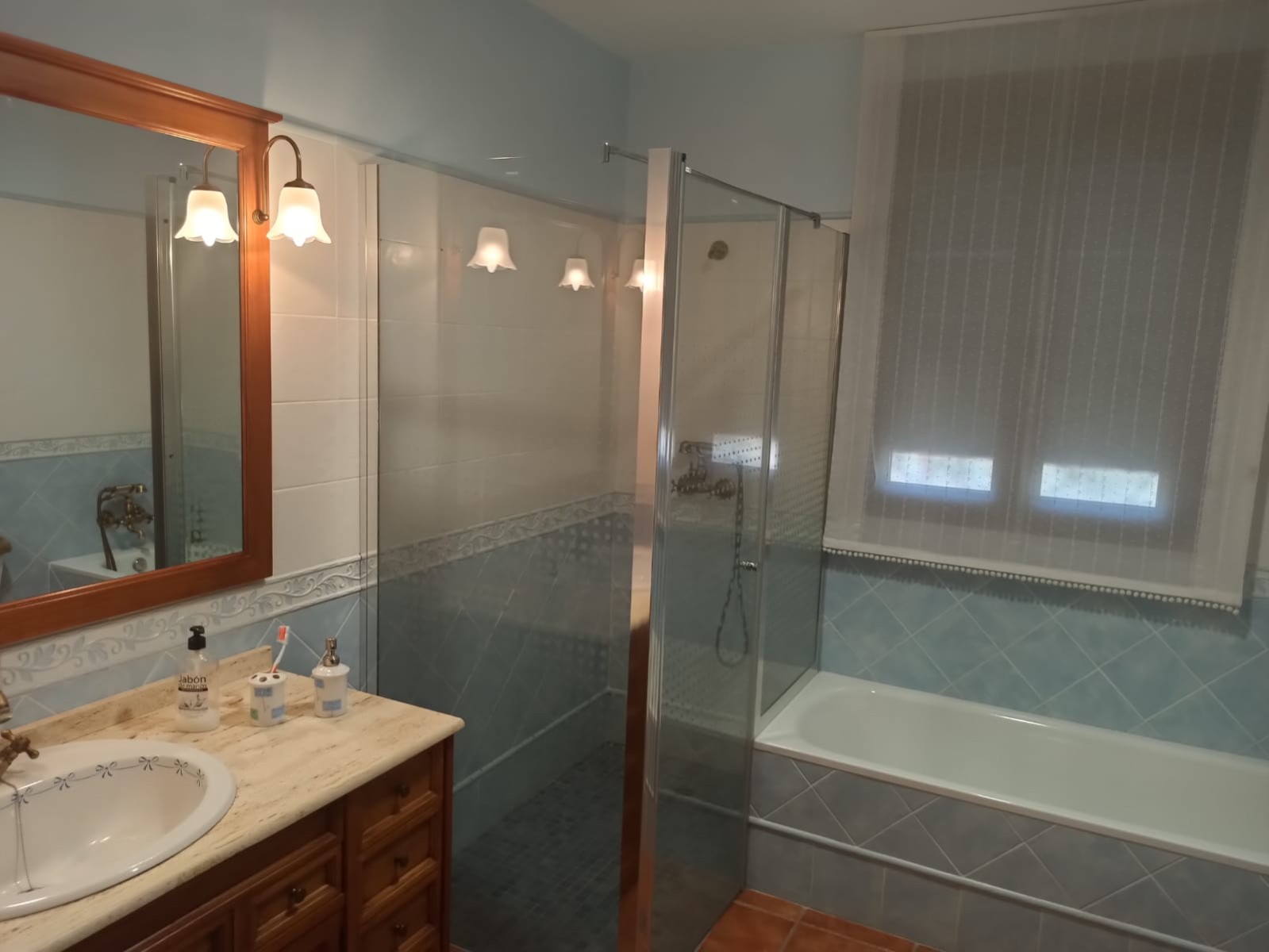This very spacious and beautiful villa is located in a quiet area and offers an abundance of privacy. The rustic and warm typical Spanish decor provides the right atmosphere and cosiness. Lots of living space, a beautiful oak kitchen with all appliances, comfortable laundry room, 3 large bedrooms, walk-in dressing, beautiful fully fitted bathrooms, large hobby room, fantastic outdoor spaces and a very large low maintenance garden. in short, this house is simply superb, both in terms of location and in terms of space and design. In a few minutes you are in Murcia and Alicante can be reached after half an hour's drive. The historic city of Orihuela is also nearby. A trip to the sea, for example to Guardamar or Torrevieja, also takes no more than half an hour. If you would like more information or would like to view the villa, do not hesitate to contact us.