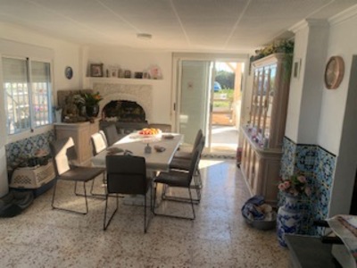 Finca on a large plot of 4000m2. Ideal to run a business. Next to the house is a large storage/nave that can be changed into all kind of businesses. The whole plot is fenced. This plot is directly located on the main road from La Marina Pueblo to El Pinet/Santa Pola.