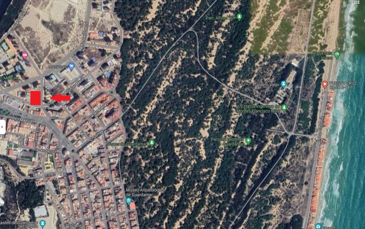 Big residential plot for sale in SUP7 area of Guardamar del Segura, near Masymas supermarket. Total plot size is 1.325 m2. Possible to construct multiple storey building with 20 apartment, swimming pool and parking. Walkable distance to the beach, all amenities situated within walking distance. Architectural project not included in the price. Purchase taxes and other expenses are not included.