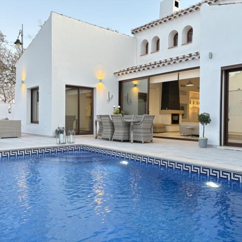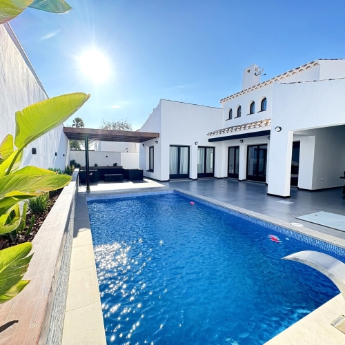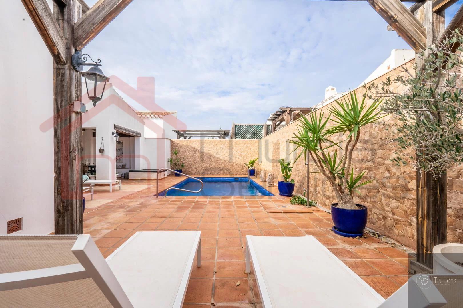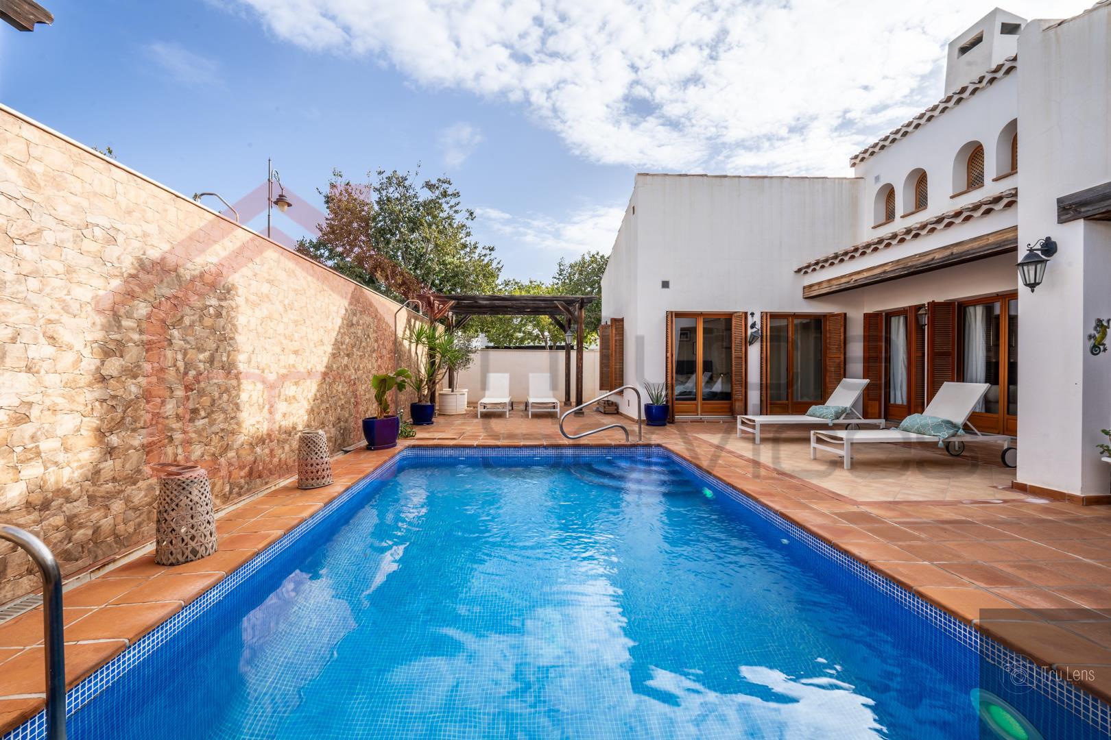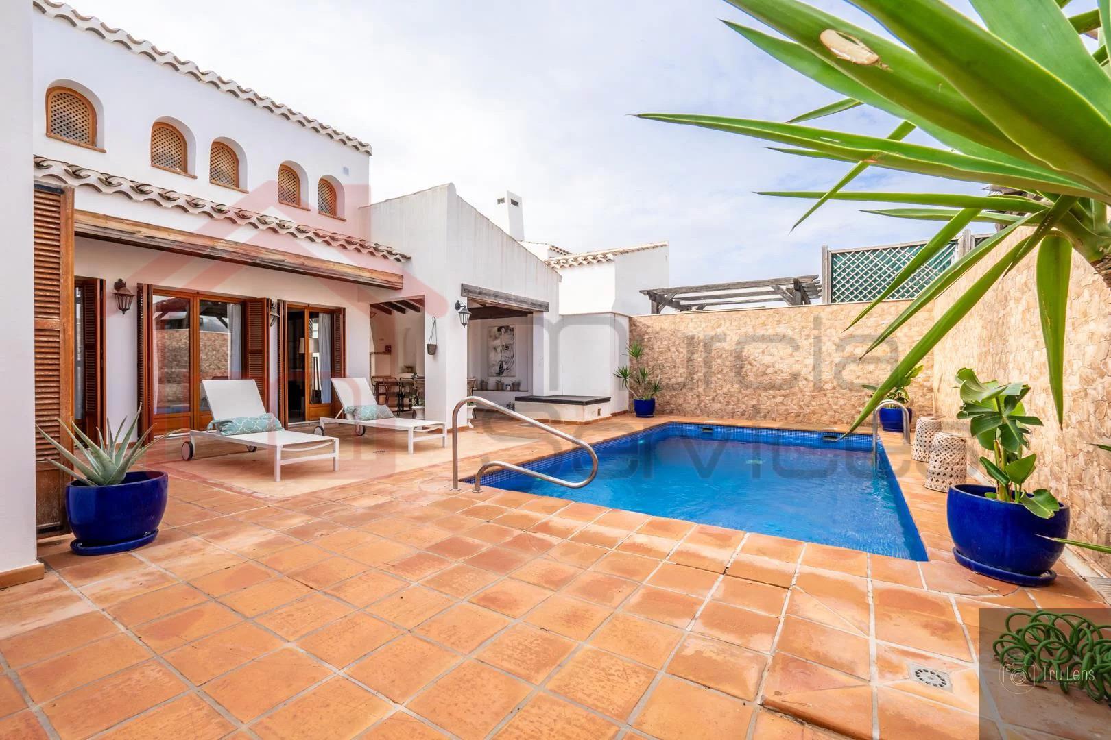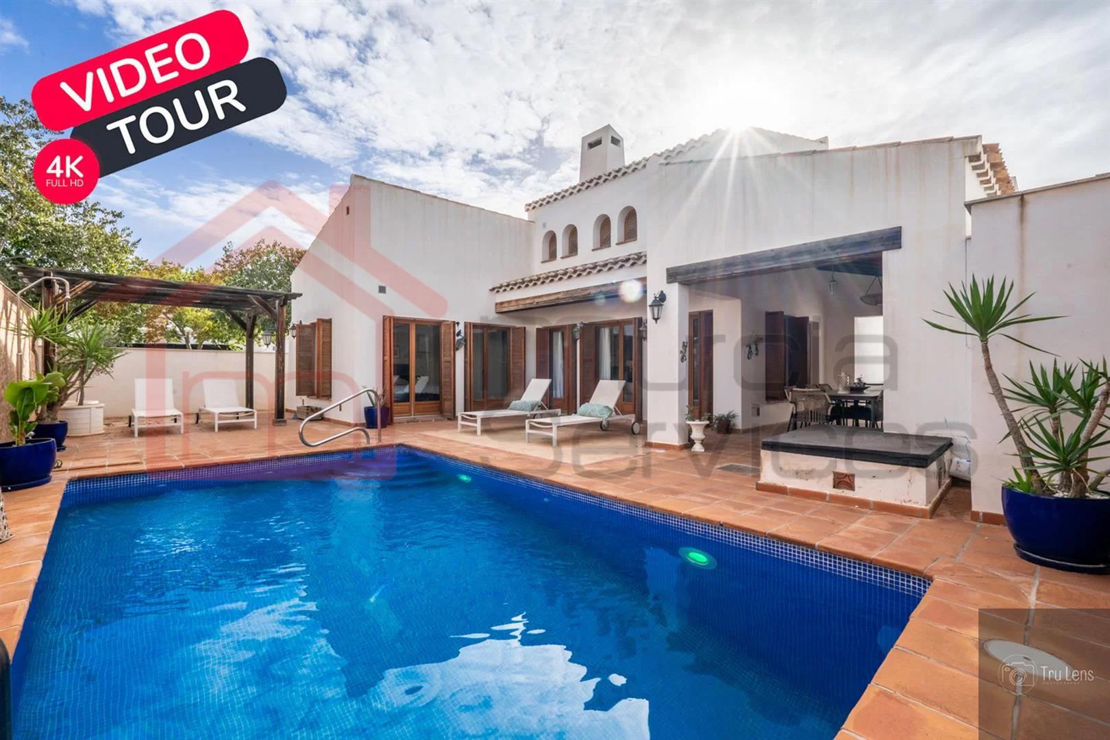 El Valle Golf VillaSpacious property featuring 4 double bedrooms.Master bedroom includes an en-suite bathroom with a walk-in showerBright and open plan extended living room ideal for entertainingOpen plan kitchen with Kitchen IslandLiving room boasts high wooden beamed ceilings and a cozy fireplaceAir conditioning and central heating throughout the propertyPrivate heated pool surrounded by multiple outdoor seating areasThe facilities on the resort include a very popular Jack Nicklaus designed Golf Course, (one of the best in the area), a busy and beautiful clubhouse/restaurant/bar serving food throughout the day and evening (the clubhouse has stunning views over the golf course and all the way to the Mar Menor/La Manga/Mediterranean), Private Gymnasium (for residents), supermarket, massage therapist/salon, children’s indoor soft play area.Contact us today for more information on this spacious El Valle Golf Villa or to arrange a viewing!