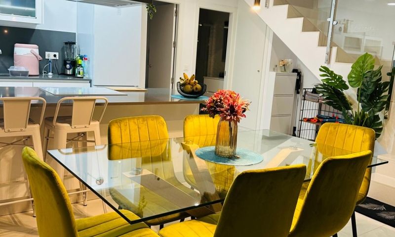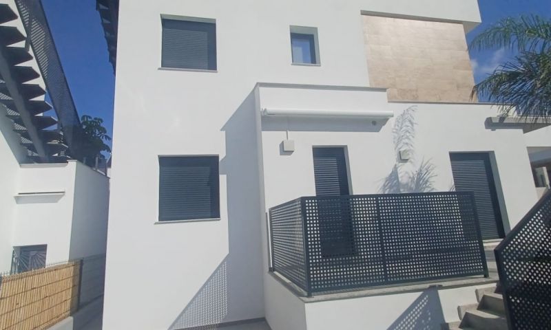 SPECTACULAR MODERN DESIGN VILLA PLOT AND POOL Located in a quiet residential area, walking to all kinds of Services such as Bus Stop, Shops, Restaurants,... 500 m from Benijofar Town Hall, 1.2 km from Benimar Shopping Center and 3 km from Ciudad Quesada, with everything type of Services.The house was built in 2023. It has 2 floors. Ground Floor with Plot, Pool and rear with driveway. Spacious living room with large facing window and direct access to the pool. Modern design kitchen and direct access to the side of the plot. Equipped with all types of modern facilities. Full bathroom and double bedroom. The First Floor has a full bathroom and 2 double bedrooms, one of them with a large sunny terrace. On the upper floor there is a large solarium with an awning and Mediterranean views of the rural areas and mountains of Crevillente and Orihuela.The house has all the modern extras, electric awnings, air conditioning, solar panels, ... fully furnished and equipped.Very Good Investment. Very good profitability.