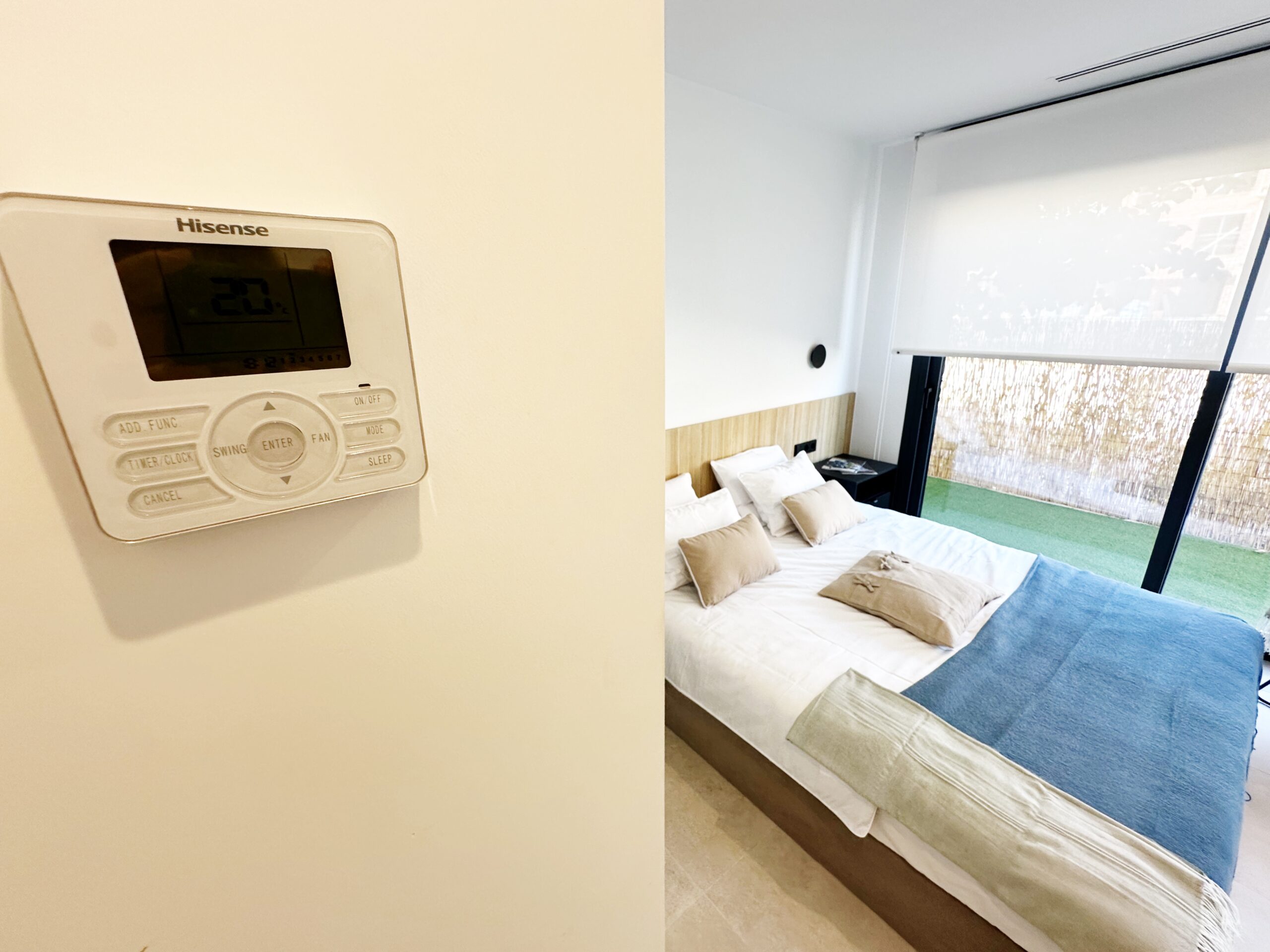 This beautifully designed villa features its own private driveway with convenient parking. There is the option to install a jacuzzi or swimming pool, allowing you to create a private outdoor relaxation area.The terrace adjoining the living room has been carefully designed to offer a peaceful, secluded space for relaxation. The villas themselves have been conceived with comfort, tranquillity and privacy in mind.Ideally located, the property is just a two-minute walk from the impressive lagoon and beach areas within Santa Rosalía Lake and Life Resort. The charming town of Los Alcázares and the beaches of the Mar Menor are only a five-minute drive away, offering a variety of popular Spanish restaurants such as Tropical and Encarnación.Inside, the home impresses with a wonderful sense of space and natural light – the dining area benefits from a double-height ceiling, while the lounge opens through large patio doors onto the terrace and garden. The modern kitchen includes a generous island with a breakfast bar and high-quality appliances. On this level there is also a practical utility room with a boiler and washing machine.The ground floor features a double bedroom with an en-suite bathroom and direct access to the garden, a second double bedroom with patio doors leading to the rear terrace, and a stylish family bathroom. The hallway also includes a useful built-in wardrobe providing additional storage space.Upstairs, the master bedroom offers a walk-in wardrobe, an en-suite bathroom and its own private terrace. From this floor there is access to a spacious south-facing terrace, shared between the master suite and the hallway.The villa is equipped with a solar installation for domestic hot water and 5 kW photovoltaic panels, significantly reducing energy costs. The Airzone system allows independent temperature control in each room – for both heating and cooling – ensuring year-round comfort.The kitchen features an elegant island finished with premium Porcelanosa – Krion worktop, made of a modern, durable and hygienic material inspired by natural stone. This worktop was added as an additional feature at the owners’ request.The interior has been carefully arranged with attention to material consistency and fine details. Wall-mounted lights in the bedrooms and the living-room pendant lamp were added at the owners’ request, reflecting a modern Spanish style with a subtly raw, stone-inspired character – resulting in a balanced and elegant atmosphere throughout.The property is sold fully furnished, has an A-class energy rating, Airzone climate control, an outdoor shower in the garden, and the option for quick completion – with no need to wait for a new construction phase.