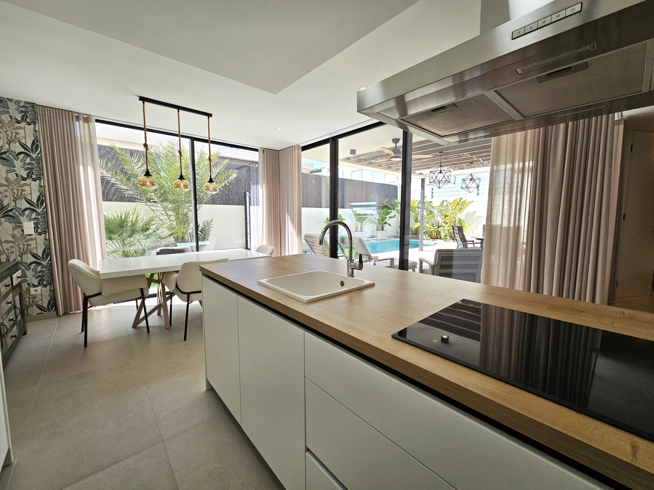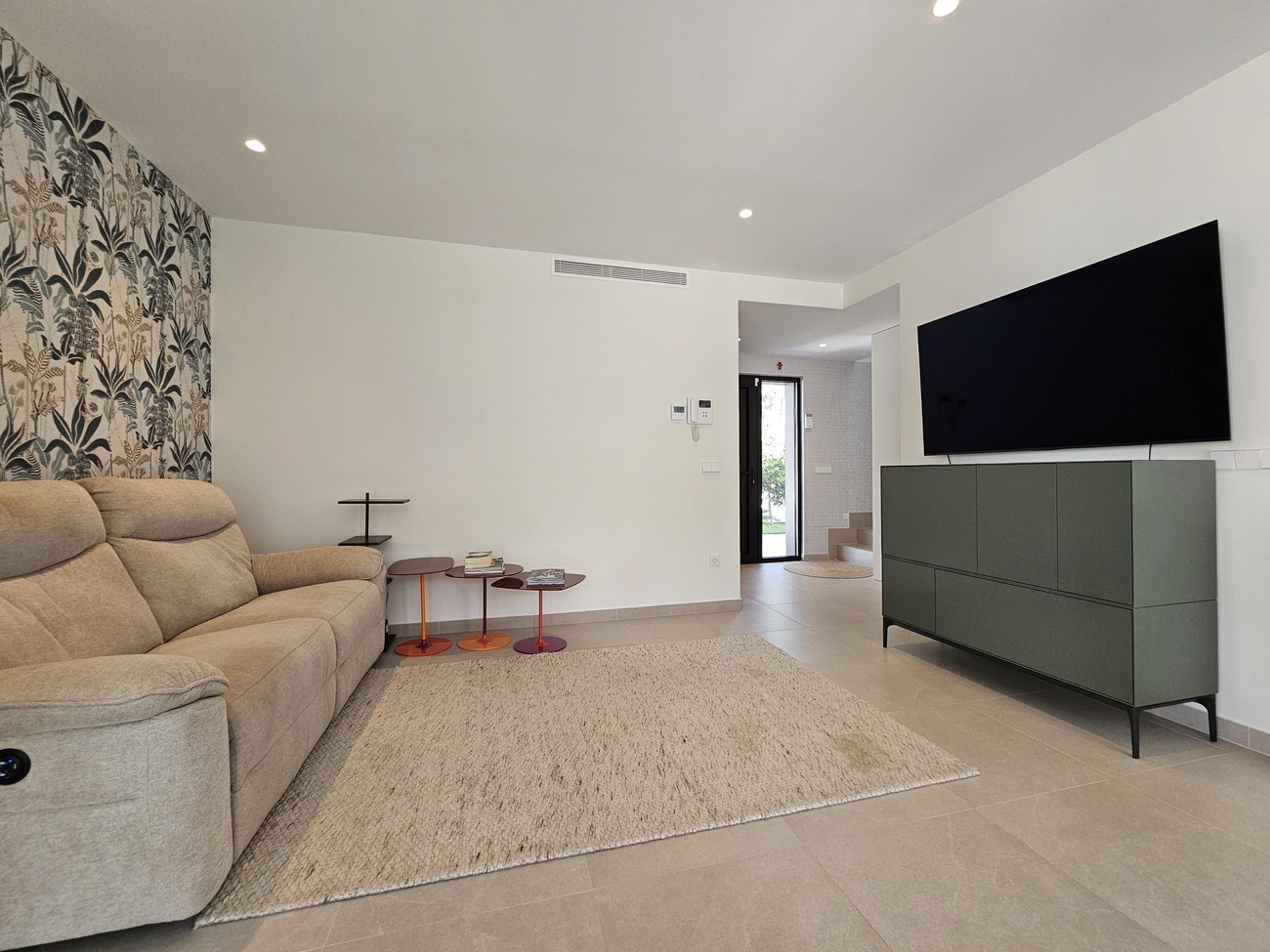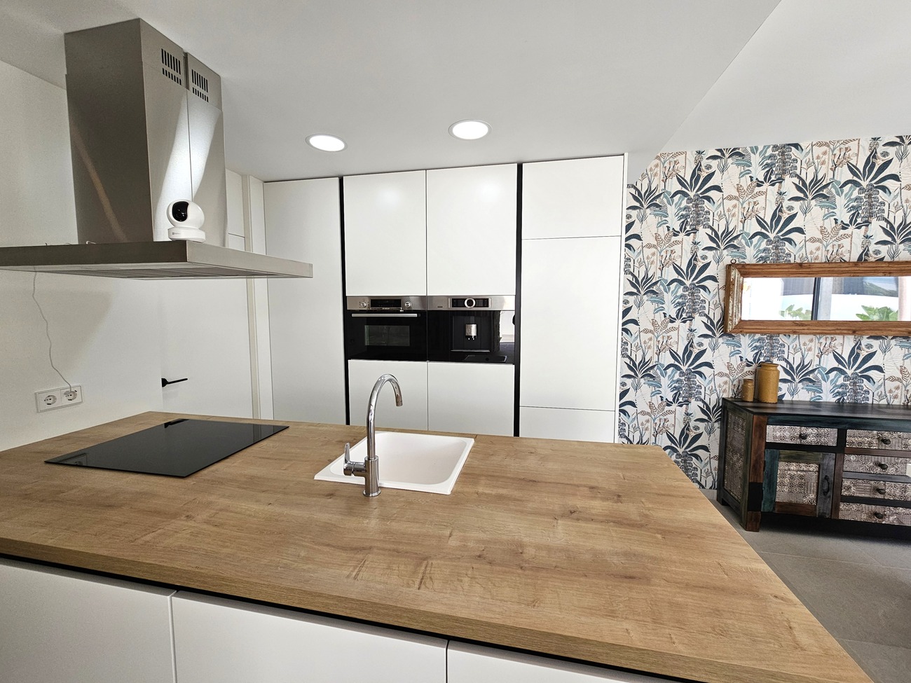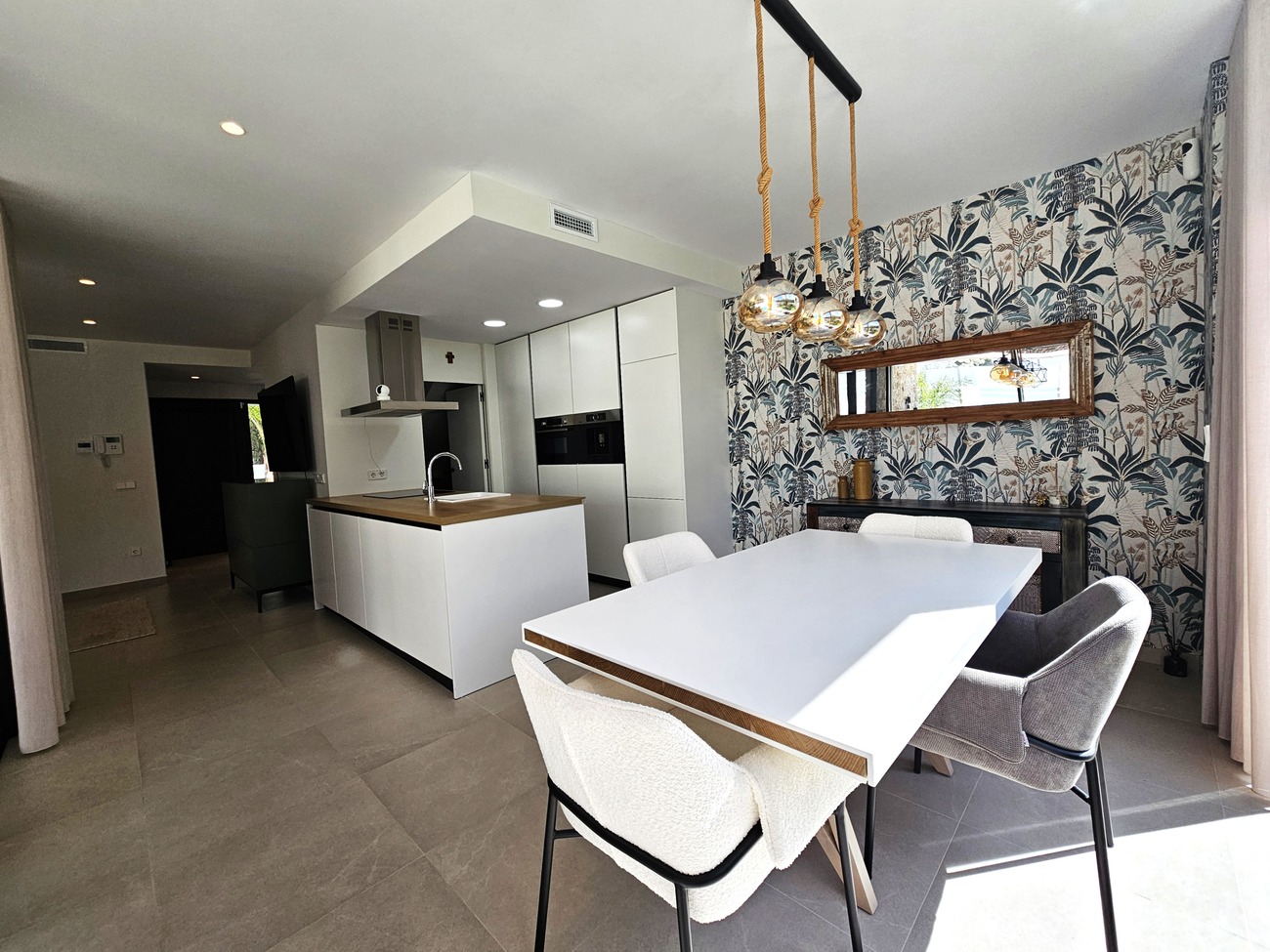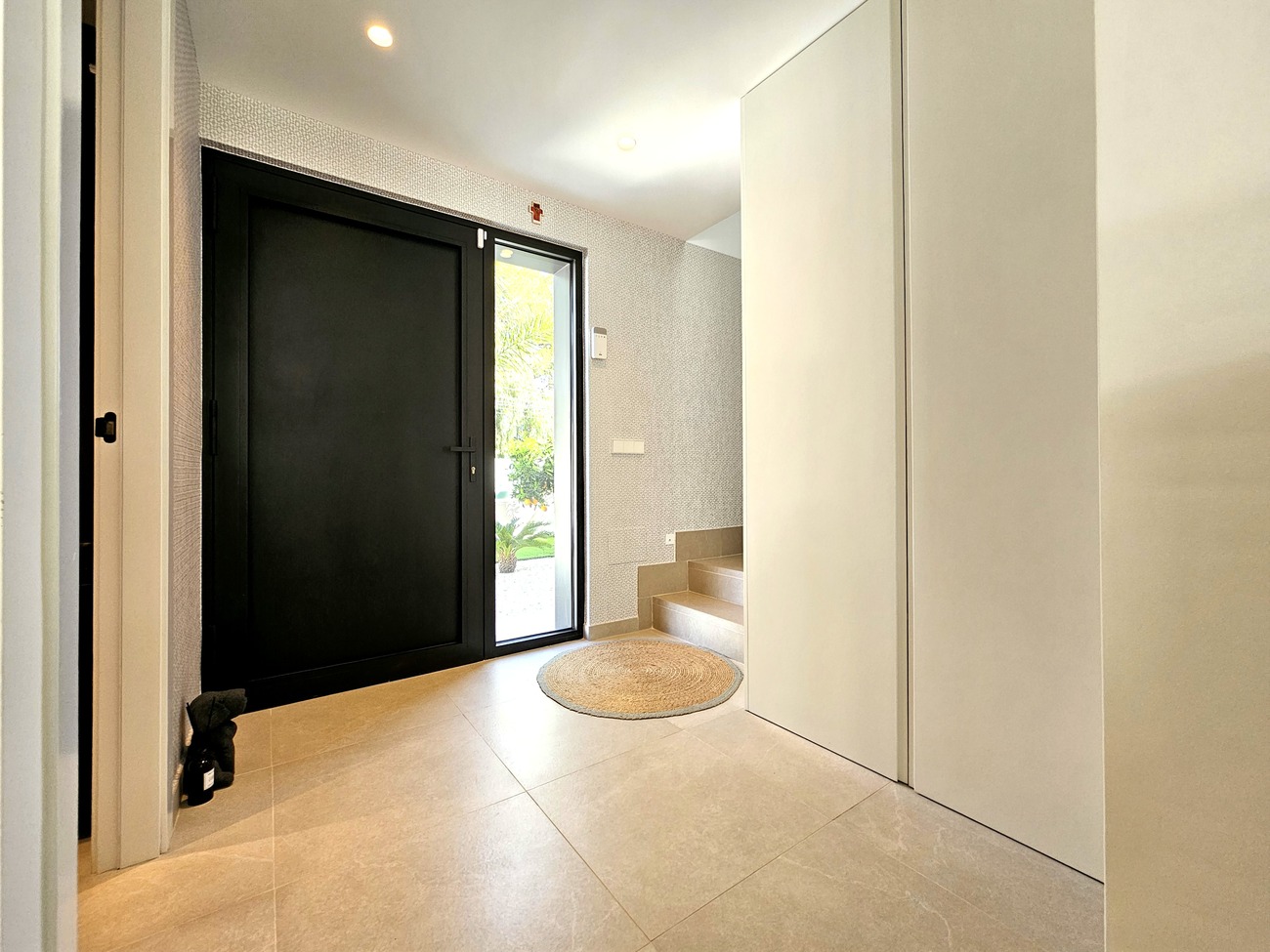 Prepare to be captivated by this stunning, almost-new property, built in 2022, and designed for modern living and effortless enjoyment! Boasting a meticulously planned layout, this partly furnished home offers 132M² of beautifully constructed space on a generous 359M² plot, complemented by a sprawling 62M² terrace perfect for soaking up the sun. Imagine lounging by your private 8x4 heated pool illuminated by LED lights, while enjoying the eco-friendly benefits of solar panels that drastically reduce your electricity bills. From the automated parking door and electric blinds to the state-of-the-art security system (interior and exterior), no detail has been overlooked. With features like ducted air conditioning, Bosch white goods, and underfloor heating in the bathrooms, comfort and luxury are paramount. Enjoy the privacy of your artificial grass lawn, framed by natural stone walls, fruit trees, and lush palm trees, all kept thriving by an automatic irrigation system. This is more than a home; it's a lifestyle waiting to be embraced!