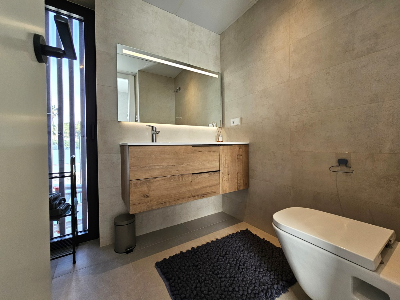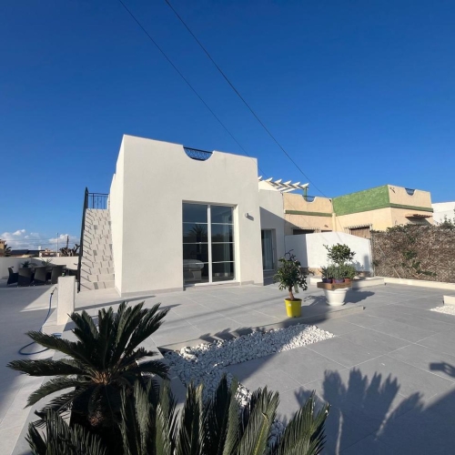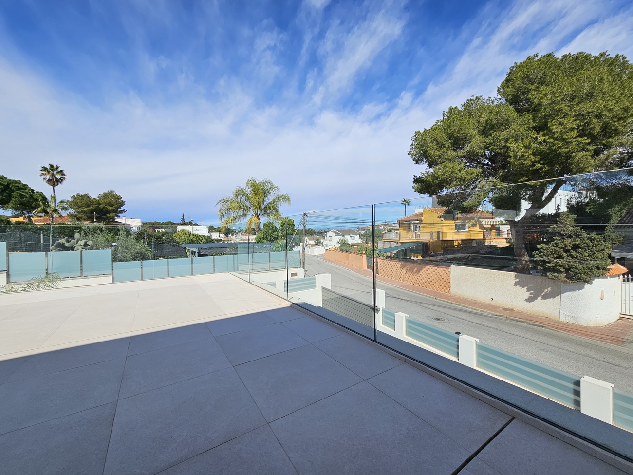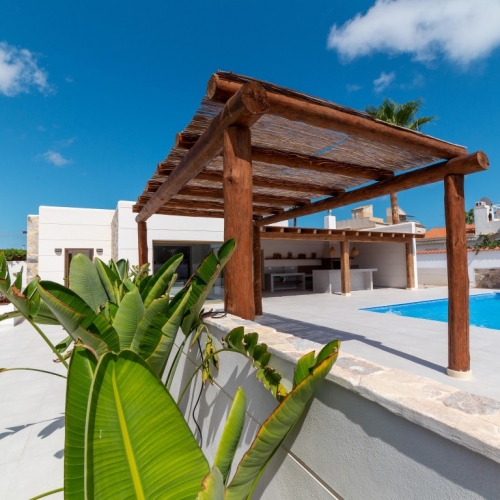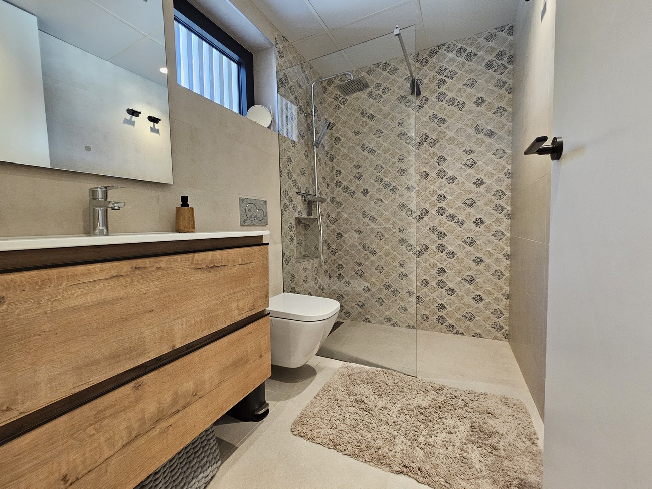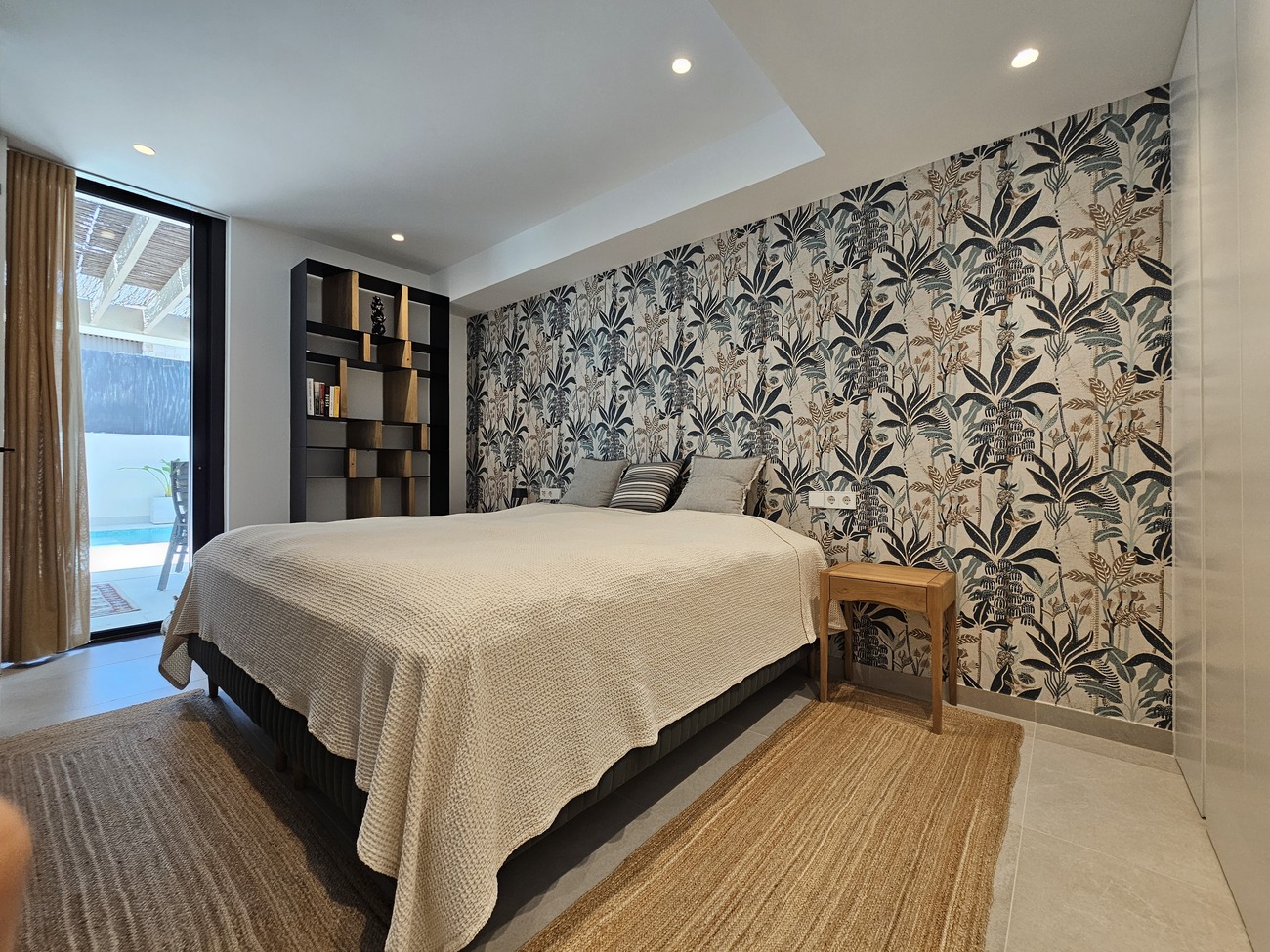 Prepare to be captivated by this stunning, almost-new property, built in 2022, and designed for modern living and effortless enjoyment! Boasting a meticulously planned layout, this partly furnished home offers 132M² of beautifully constructed space on a generous 359M² plot, complemented by a sprawling 62M² terrace perfect for soaking up the sun. Imagine lounging by your private 8x4 heated pool illuminated by LED lights, while enjoying the eco-friendly benefits of solar panels that drastically reduce your electricity bills. From the automated parking door and electric blinds to the state-of-the-art security system (interior and exterior), no detail has been overlooked. With features like ducted air conditioning, Bosch white goods, and underfloor heating in the bathrooms, comfort and luxury are paramount. Enjoy the privacy of your artificial grass lawn, framed by natural stone walls, fruit trees, and lush palm trees, all kept thriving by an automatic irrigation system. This is more than a home; it's a lifestyle waiting to be embraced!