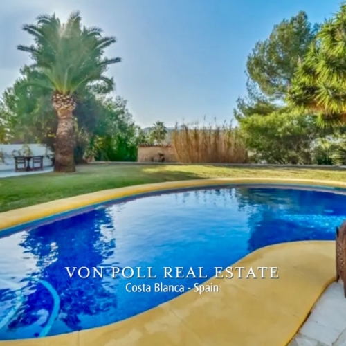 This lovely family villa, located in a quite and peaceful residential area only 20 minutes walk into the heart of Moraira.This traditional Spanish villa offers all the traditional benefits of this style of living. With a large covered naya providing an additional reception room, with excellent views out to the pool, this villa also has a spacious living room with an open fireplace, a separate galley kitchen with a laundry room, 3 double bedrooms, 2 bathrooms, one with a tub and lots of light in this south facing villa.Outside there is a large garden with plenty of off road parking and a kidney shaped pool and many terraces to enjoy al fresco dining.